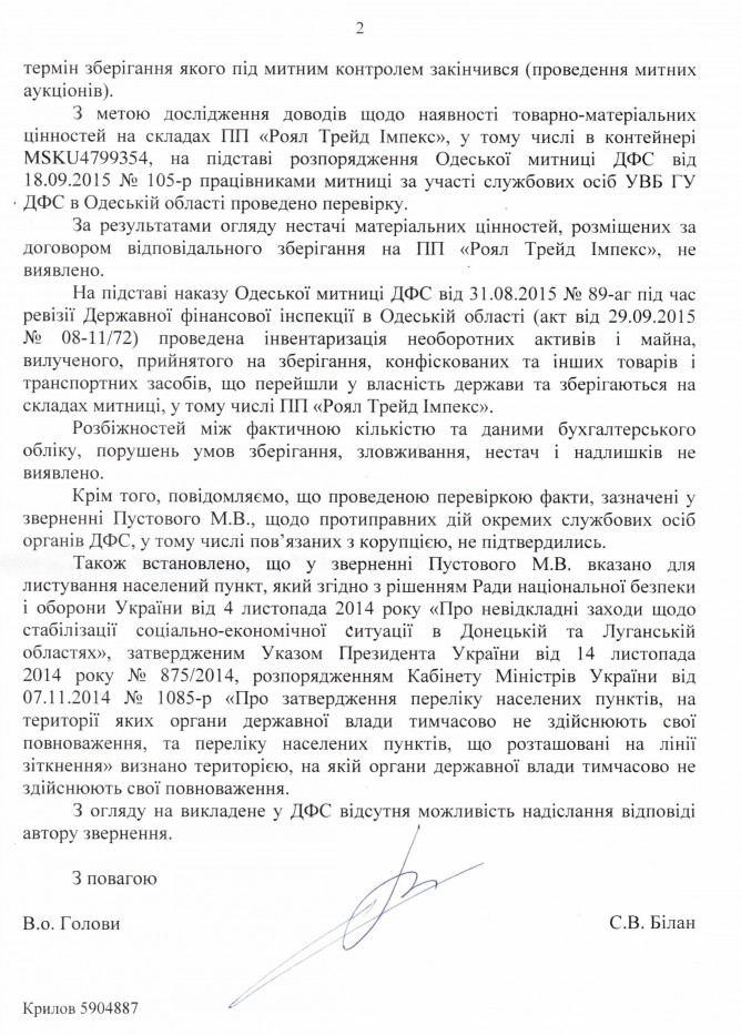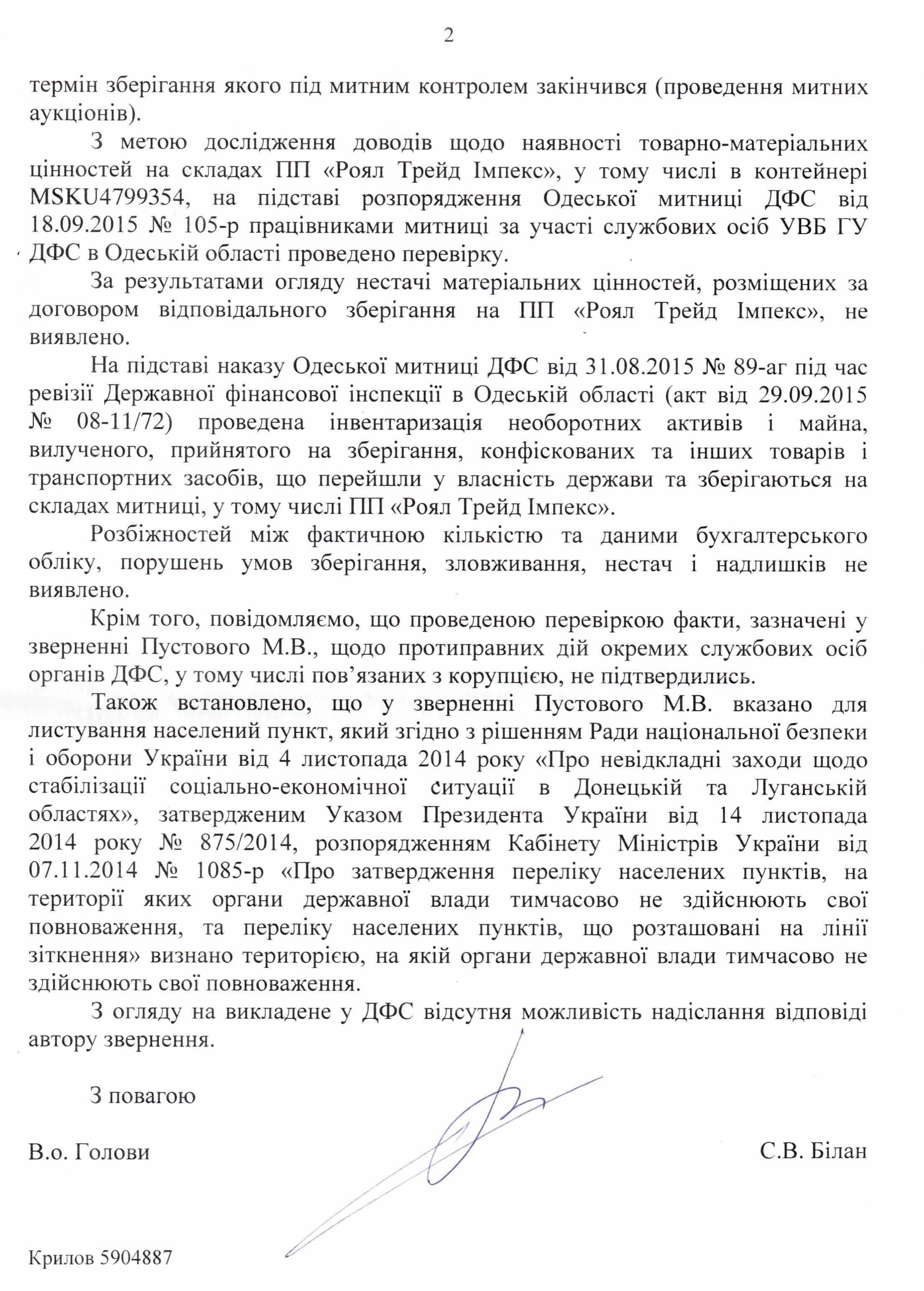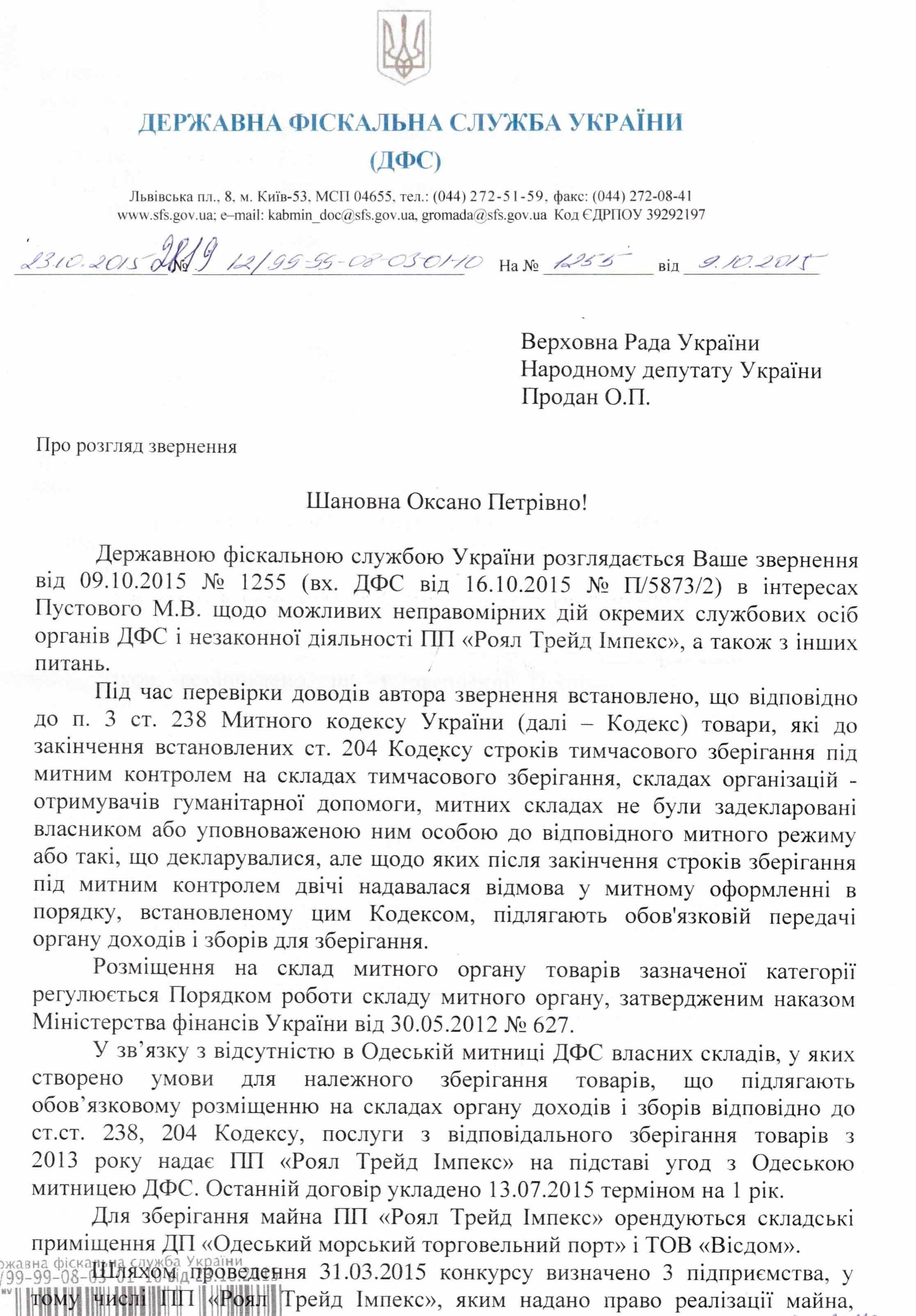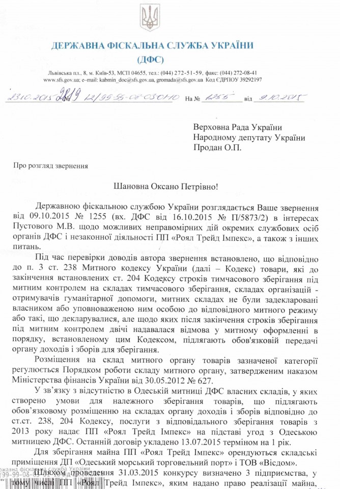 06Лис Коментування вимкнено Відповідь ДФС України на депутатське звернення щодо можливих зловживань службовими обов’язками посадовими особами ГУ ВБ ДФС України ДЕПУТАТСЬКЕ ЗВЕРНЕННЯ