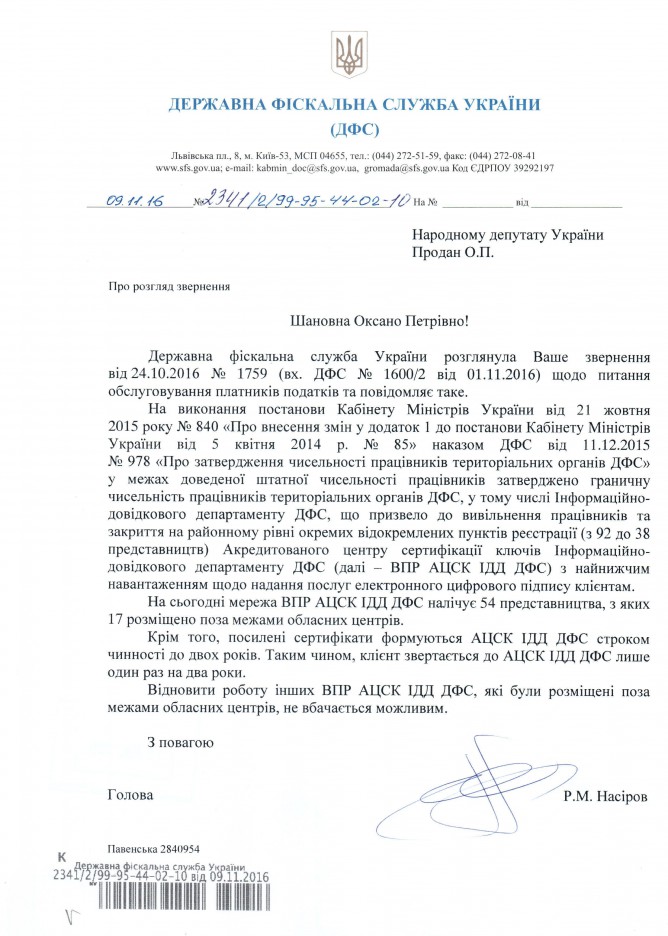 06Гру Коментування вимкнено Відповідь ДФС України на депутатське звернення щодо ускладнення доступу до послуг безкоштовного електронного цифрового підпису ДЕПУТАТСЬКЕ ЗВЕРНЕННЯ