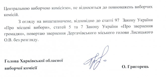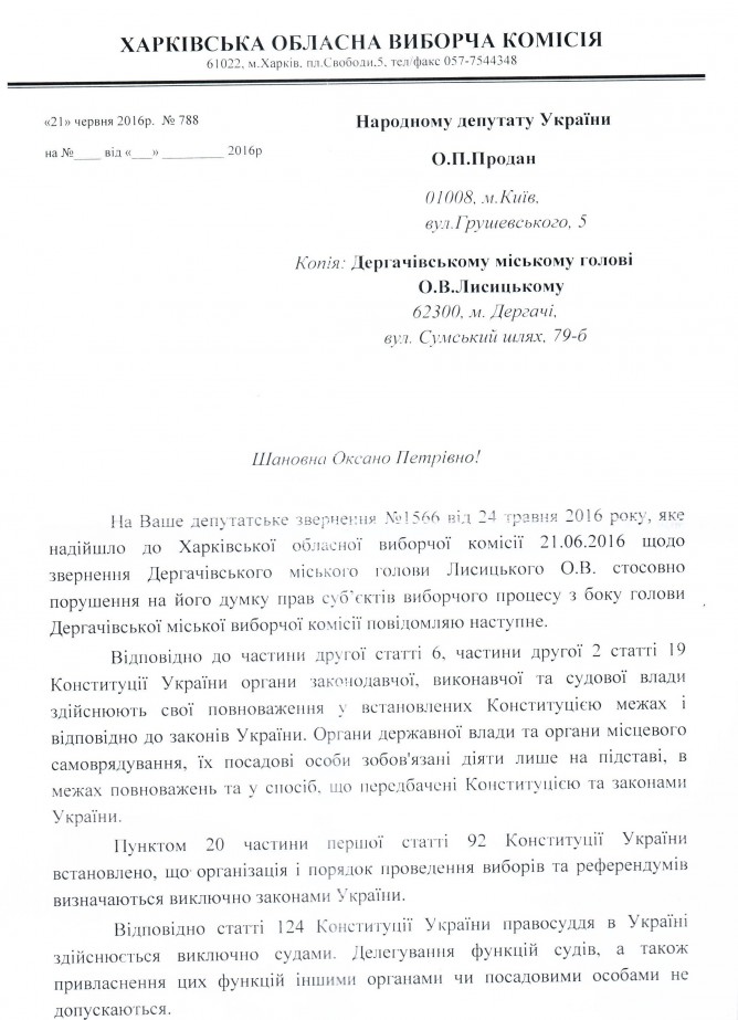 14Лип Коментування вимкнено Відповідь Харківської обласної виборчої комісії на депутатське звернення щодо порушення прав суб’єктів виборчого процесу ДЕПУТАТСЬКЕ ЗВЕРНЕННЯ