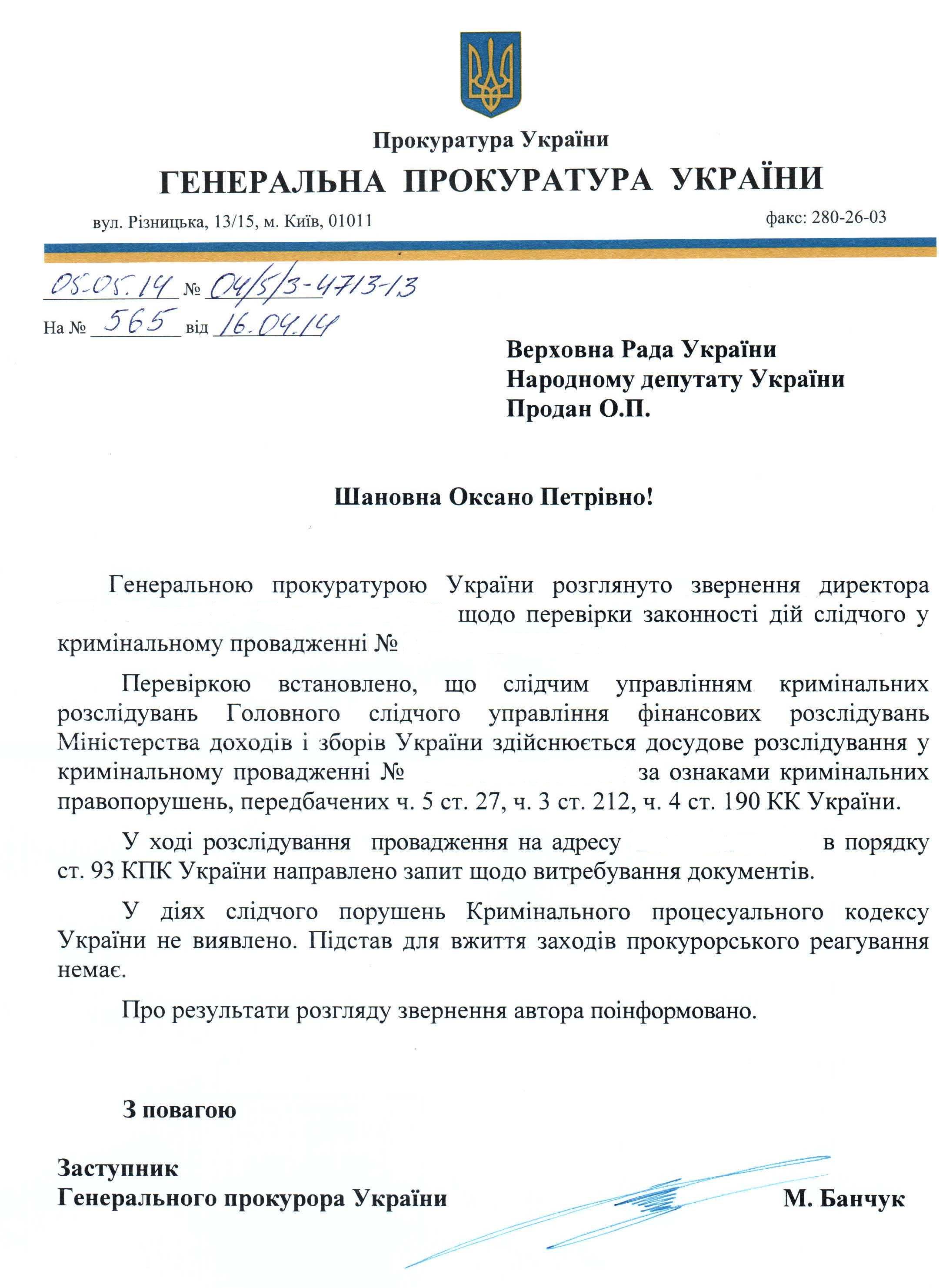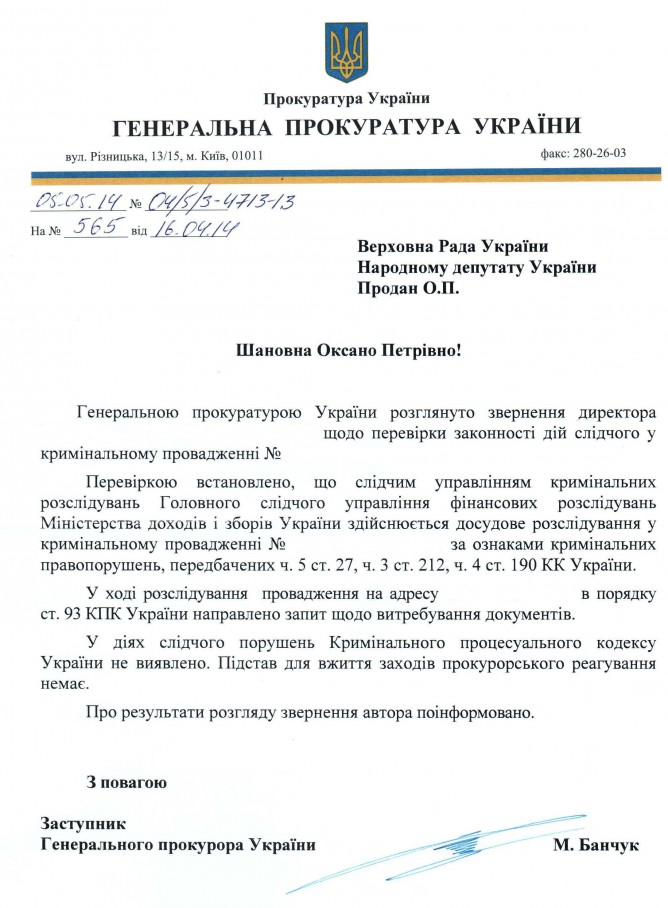 21Тра Коментування вимкнено Відповідь Генеральної прокуратури України на депутатське звернення щодо перевірки законності витребування документів