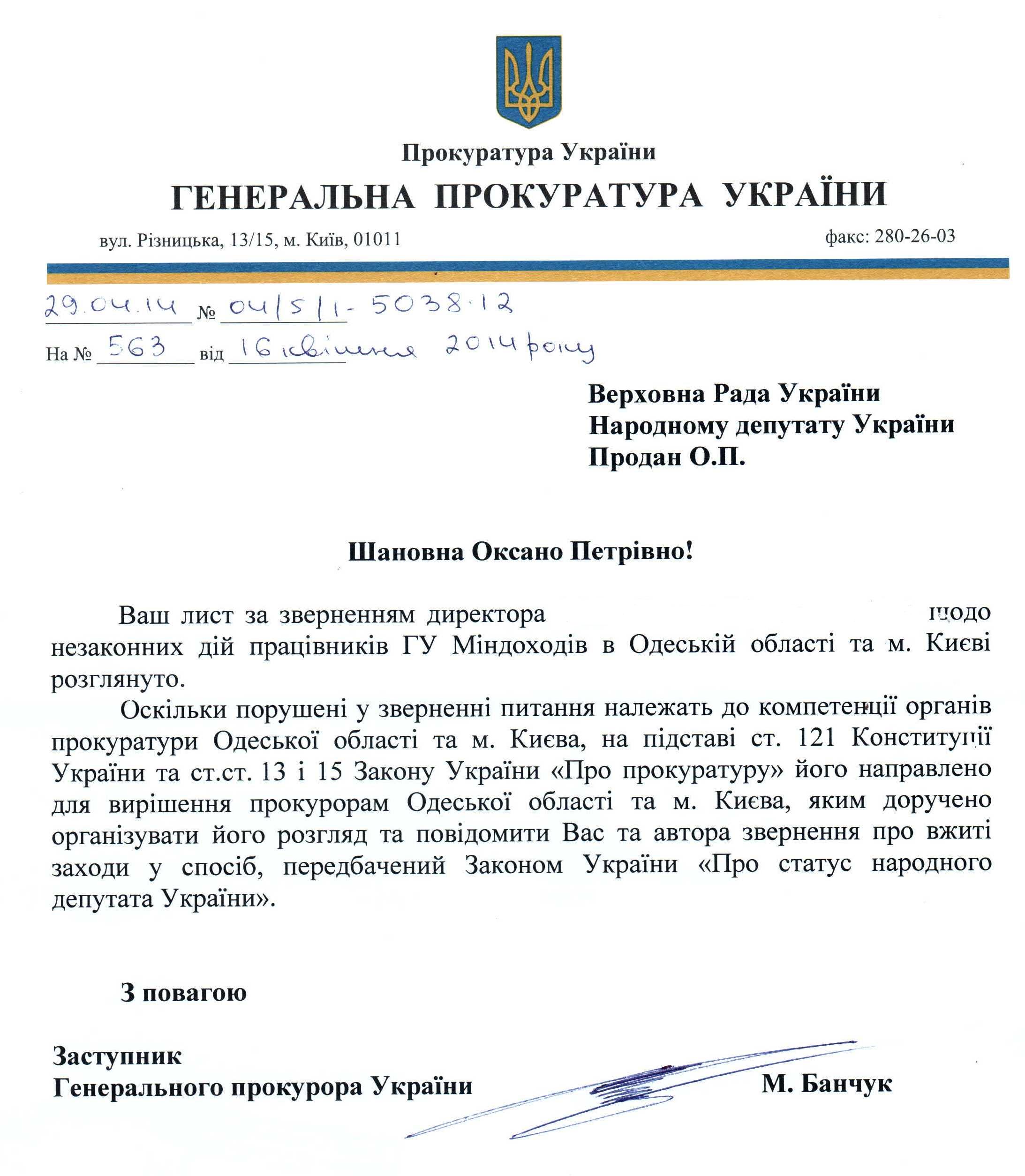 21Тра Коментування вимкнено Відповідь Генеральної прокуратури України про перенаправлення депутатського звернення щодо незаконних дій працівників ГУ Міндоходів в Одеській області та м. Києві
