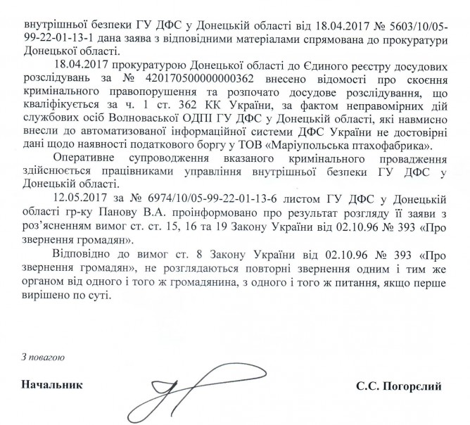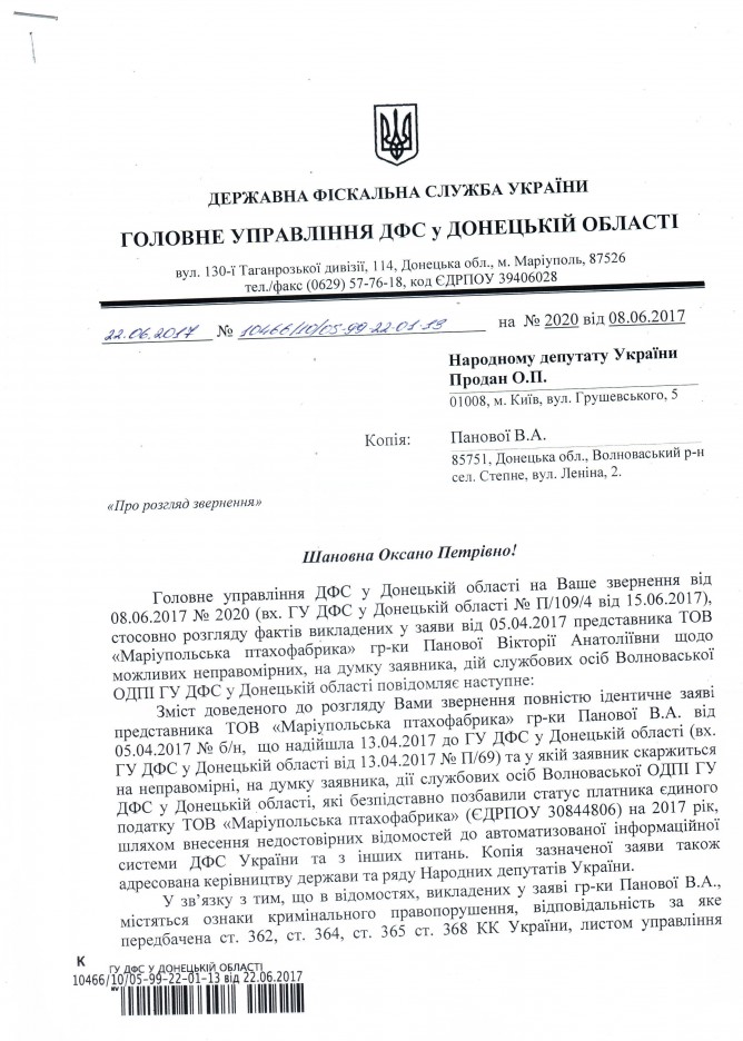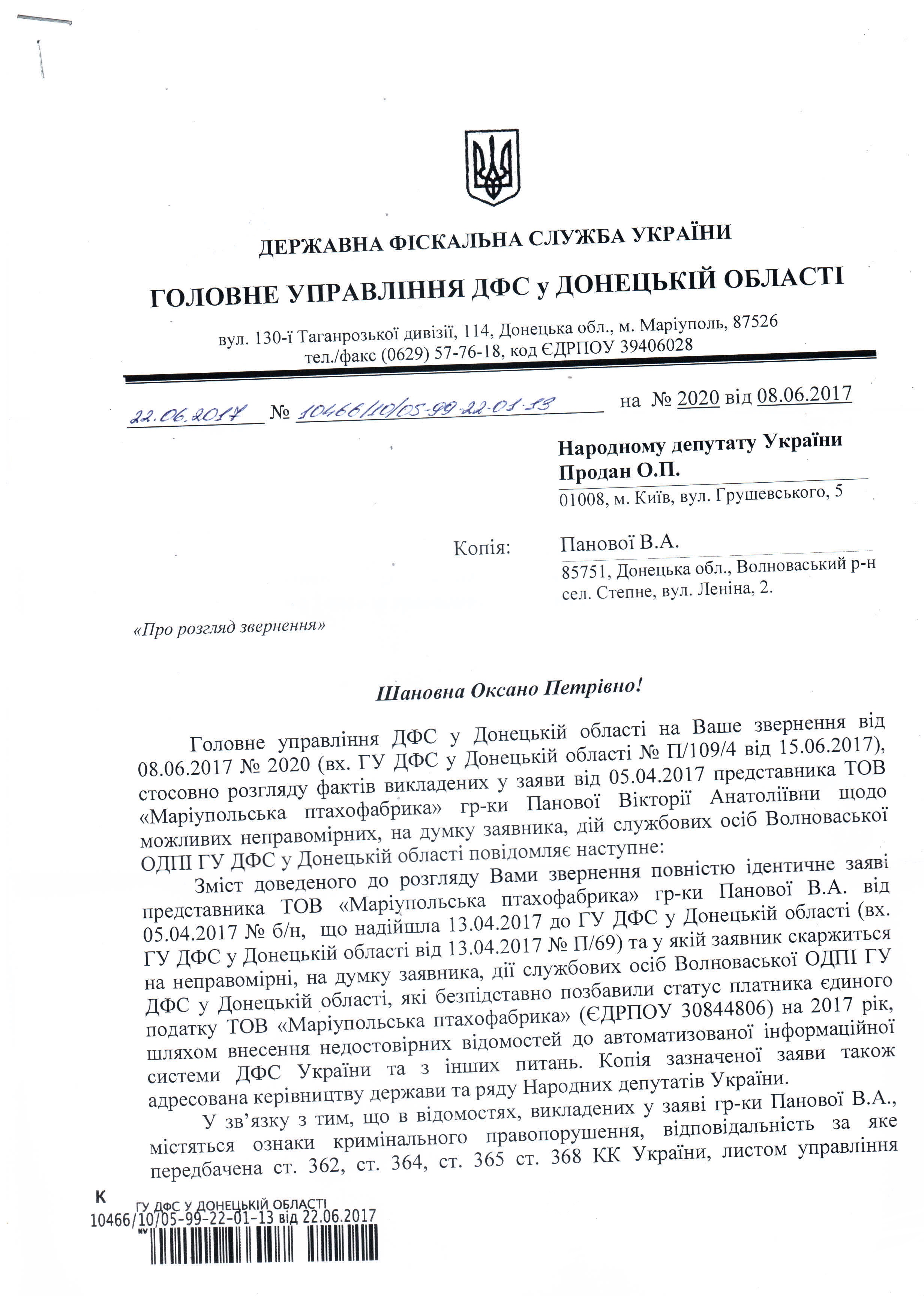 13Лип Коментування вимкнено Відповідь ГУ ДФС у Донецькій області на депутатське звернення щодо можливих порушень законодавства співробітниками Волноваської ОДПІ ГУ ДФС у Донецькій області ДЕПУТАТСЬКЕ ЗВЕРНЕННЯ