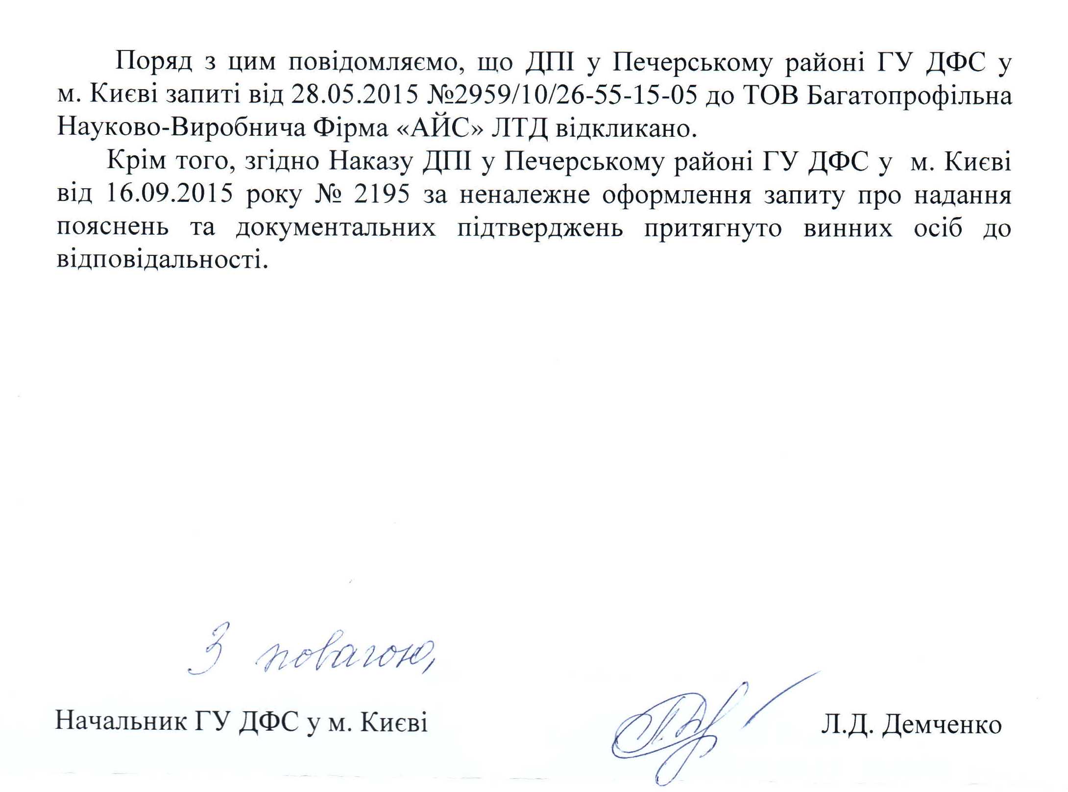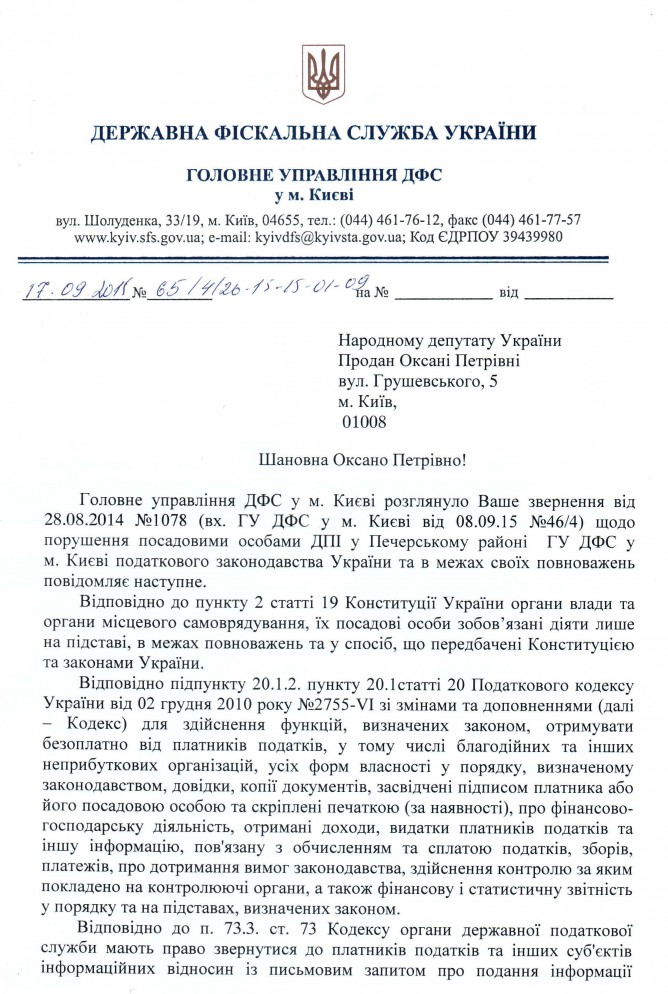 20Жов Коментування вимкнено Відповідь ГУ ДФС у м. Києві на депутатське зверненя щодо порушення посадовими особами ДПІ у Печерському районі ГУ ДФС у м. Києві податкового законодавства ДЕПУТАТСЬКЕ ЗВЕРНЕННЯ