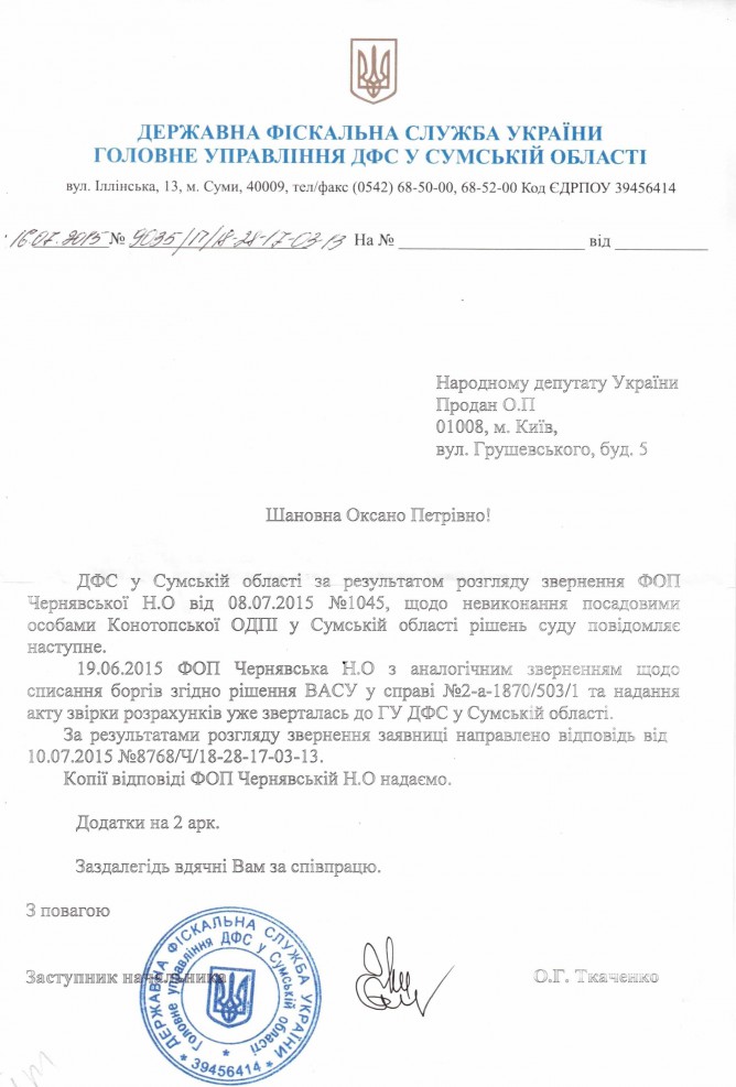 26Сер Коментування вимкнено Відповідь ГУ ДФС у Сумській області на депутатське звернення щодо невиконання рішення суду посадовими особами Конотопської МДПІ ГУ ДФС у Сумській області ДЕПУТАТСЬКЕ ЗВЕРНЕННЯ