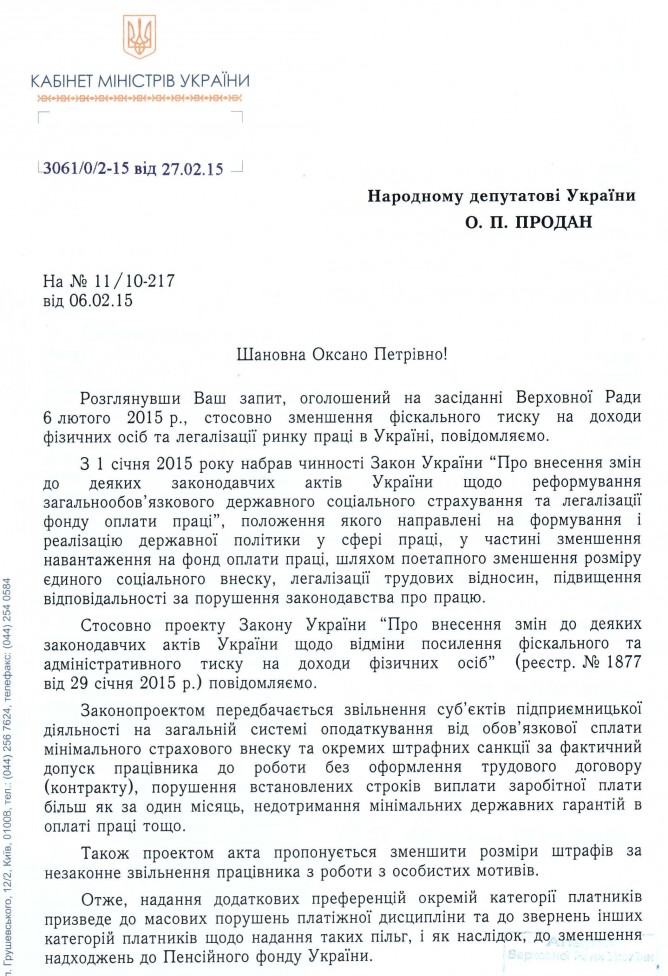 31Бер Коментування вимкнено Відповідь Кабінету Міністрів України на депутатський запит щодо необхідності зменшення фіскального тиску на доходи фізичних осіб та легалізації ринку праці в Україні ДЕПУТАТСЬКИЙ ЗАПИТ