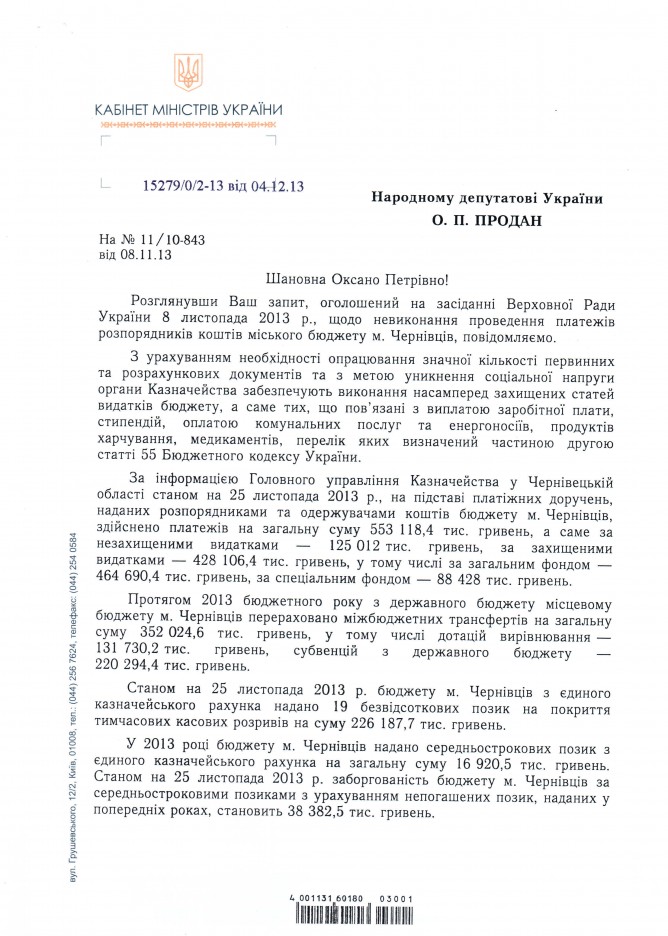 12Гру Коментування вимкнено Відповідь Кабінету Міністрів України на депутатський запит щодо невиконання проведення платежів розпорядників коштів міського бюджету м. Чернівці ДЕПУТАТСЬКИЙ ЗАПИТ