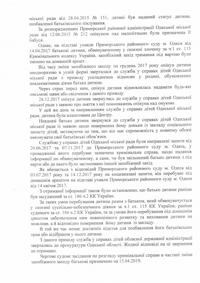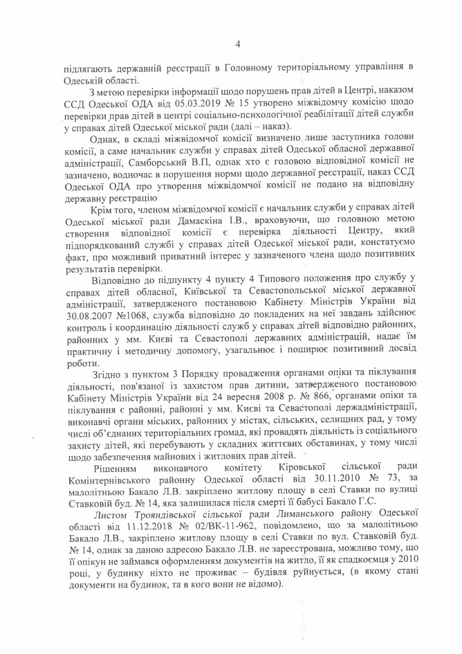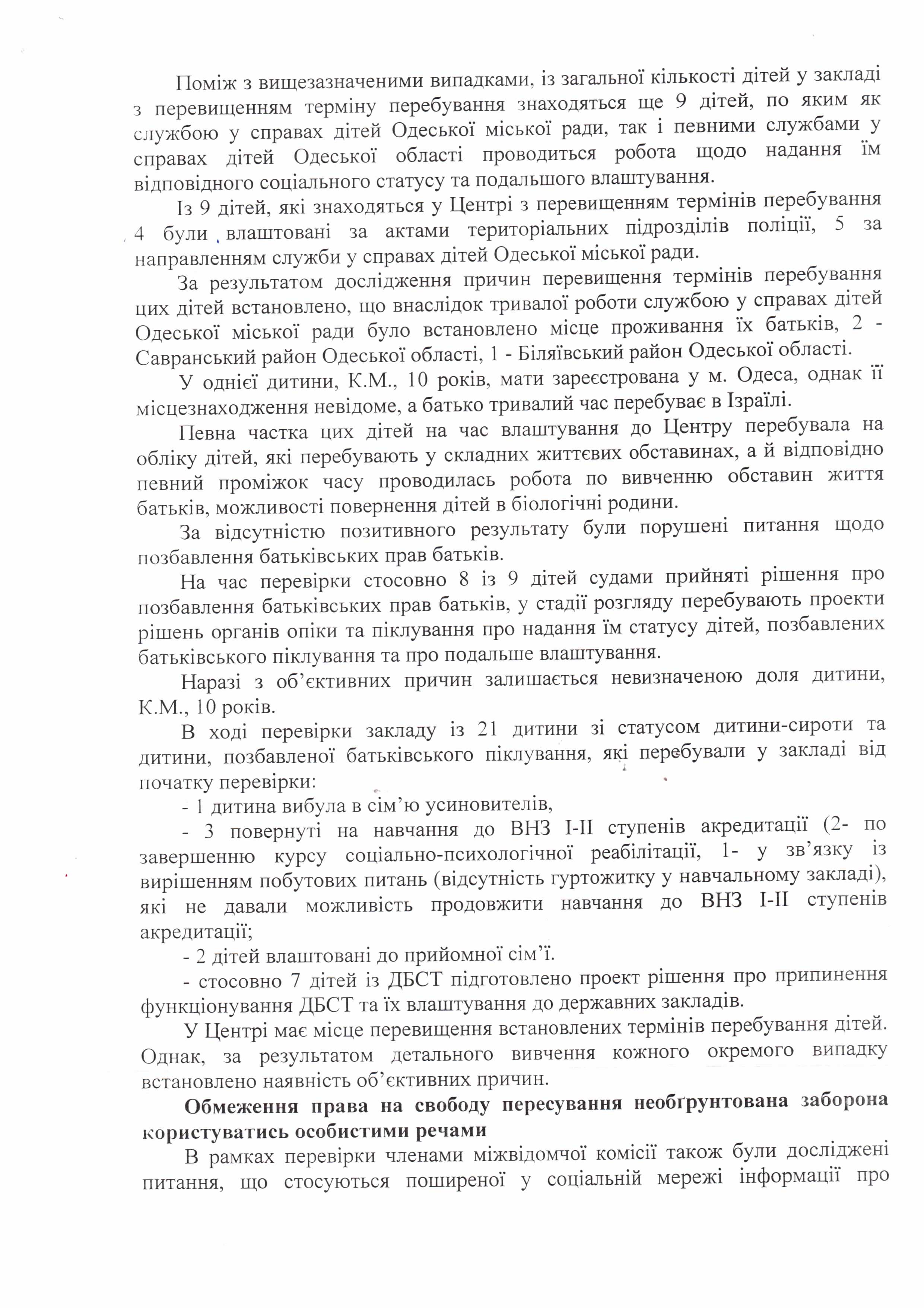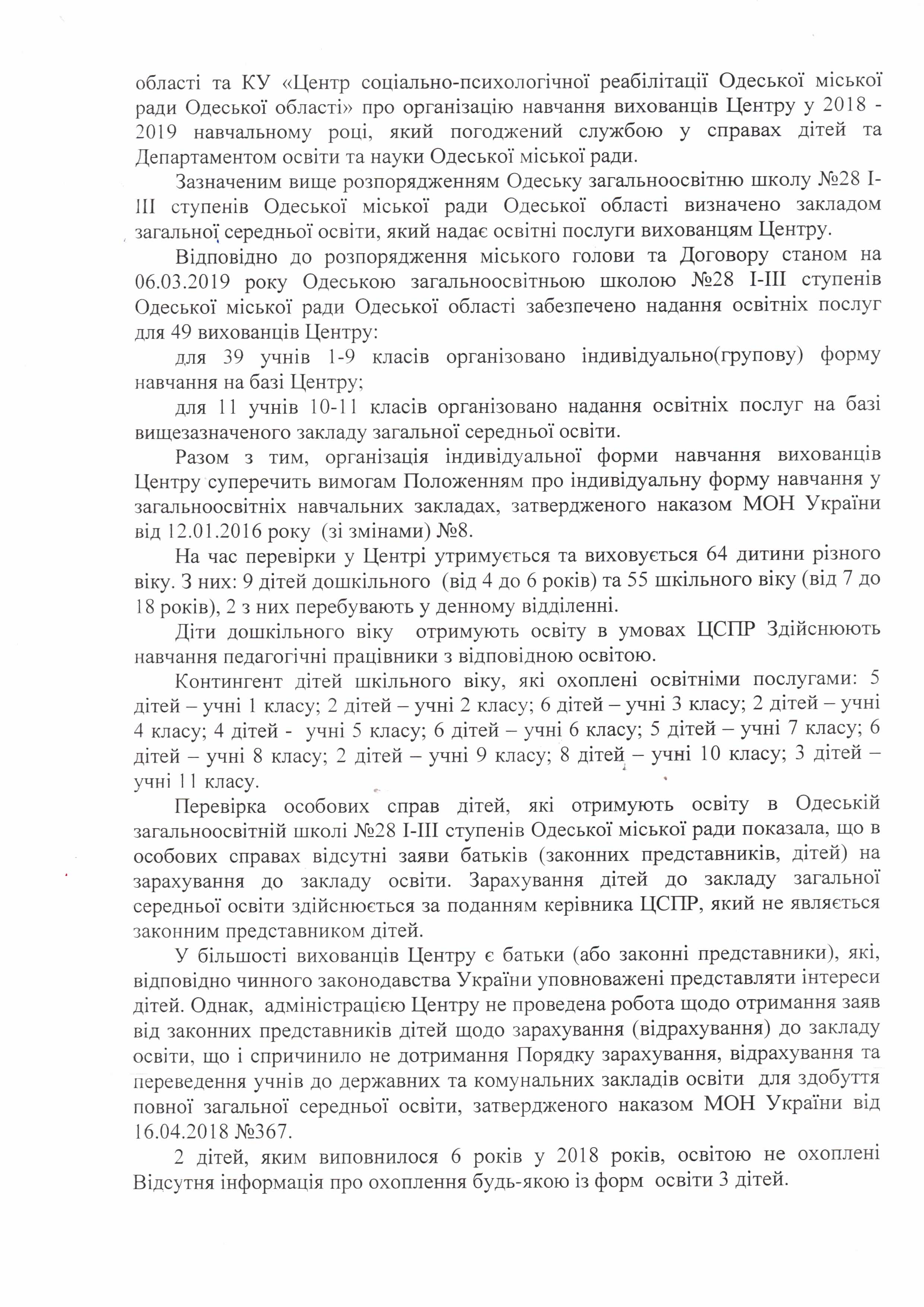 Відповідь Комітету ВРУ з питань сім’ї, молодіжної політики, спорту та туризму на депутатське звернення щодо порушення прав дітей дирекцією та вихователями Одеського центру соціально-психологічної реабілітації дітей