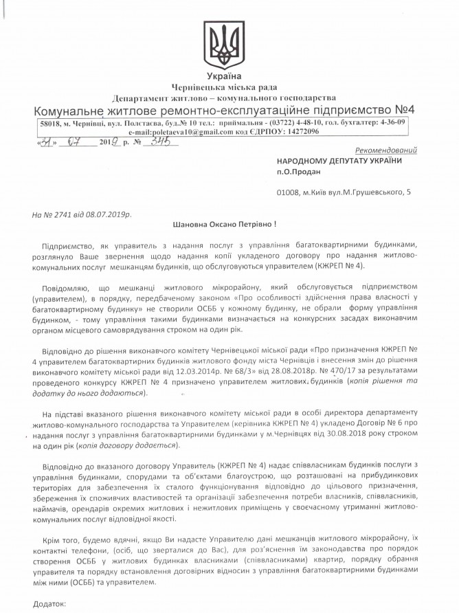 06Сер Коментування вимкнено Відповідь Комунального житлово-ремонтного підприємства №4 на депутатське звернення щодо формування тарифів на послуги ЖКГ ДЕПУТАТСЬКЕ ЗВЕРНЕННЯ