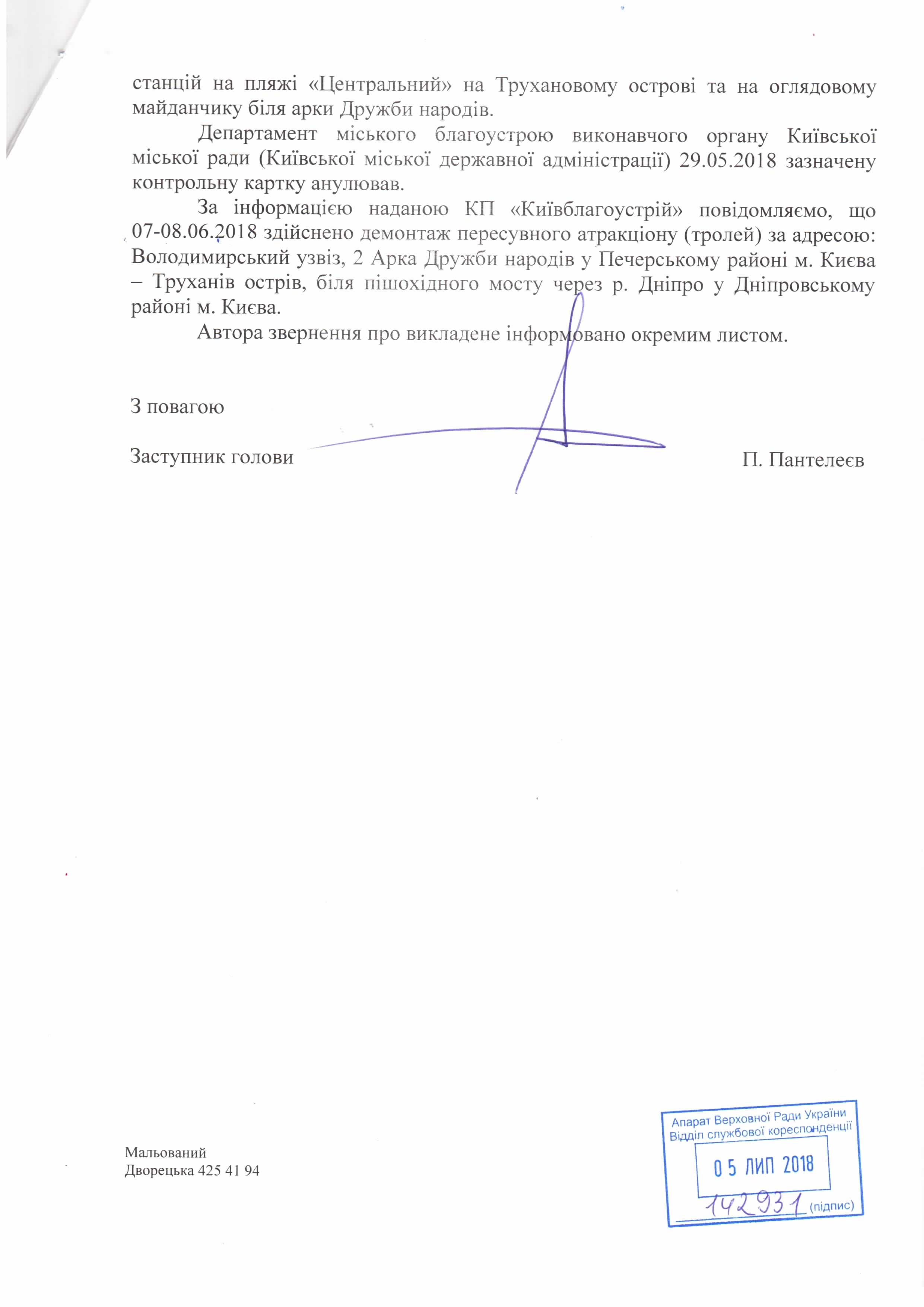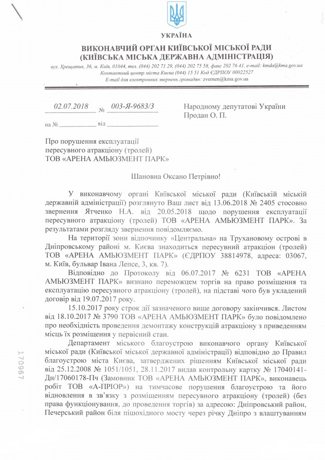 20Лип Коментування вимкнено Відповідь Київської міської державної адміністрації на депутатське звернення щодо питання розміщення пересувного атракціону (тролей) у місті Києві ДЕПУТАТСЬКЕ ЗВЕРНЕННЯ