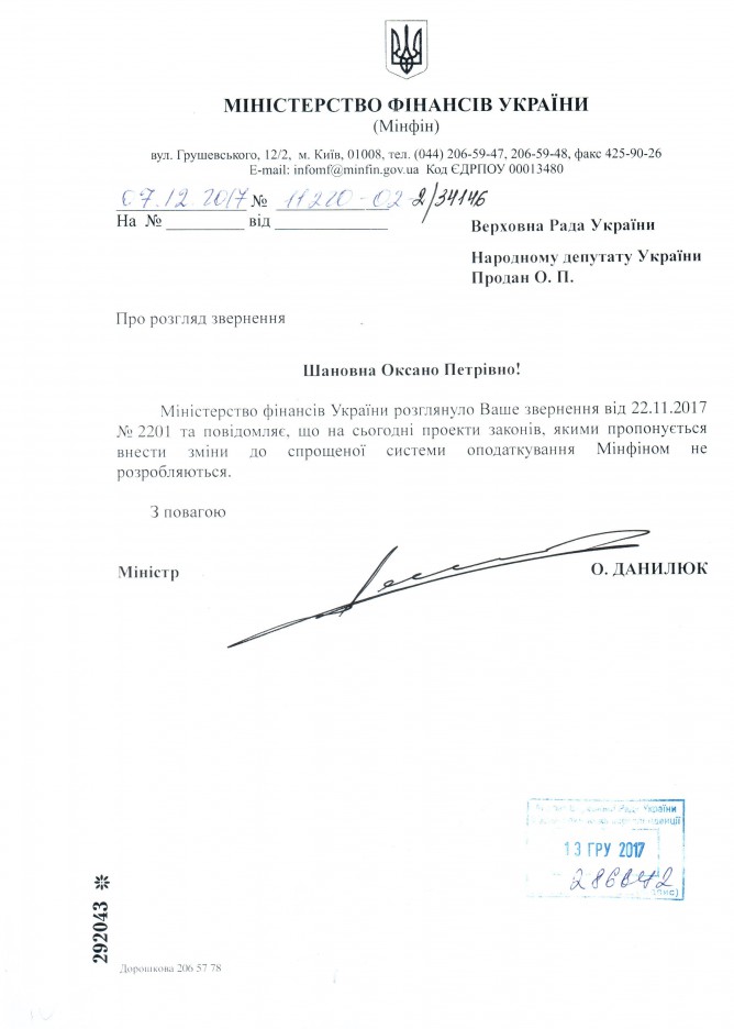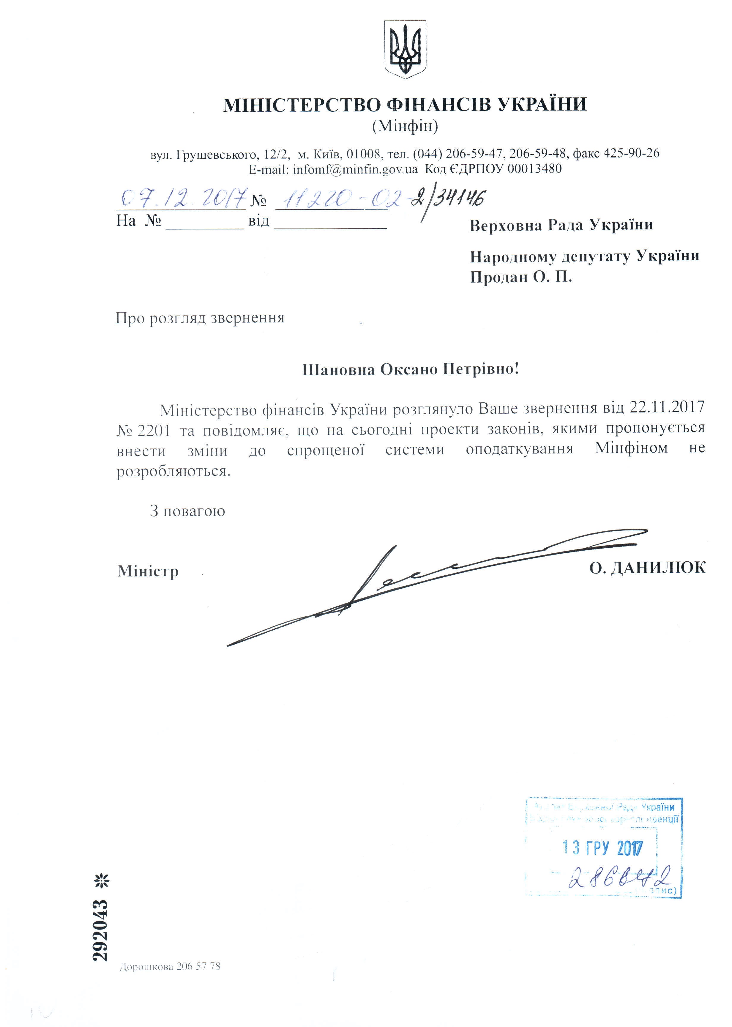 04Січ Коментування вимкнено Відповідь Міністерства фінансів України на депутатське звернення щодо надання інформації про підготовку змін до податкового законодавства ДЕПУТАТСЬКЕ ЗВЕРНЕННЯ
