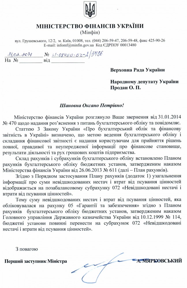 26Лют Коментування вимкнено Відповідь Міністерства фінансів України на депутатське звернення щодо надання роз’яснень із застосування Плану розрахунків бухгалтерського обліку бюджетних установ ДЕПУТАТСЬКЕ ЗВЕРНЕННЯ