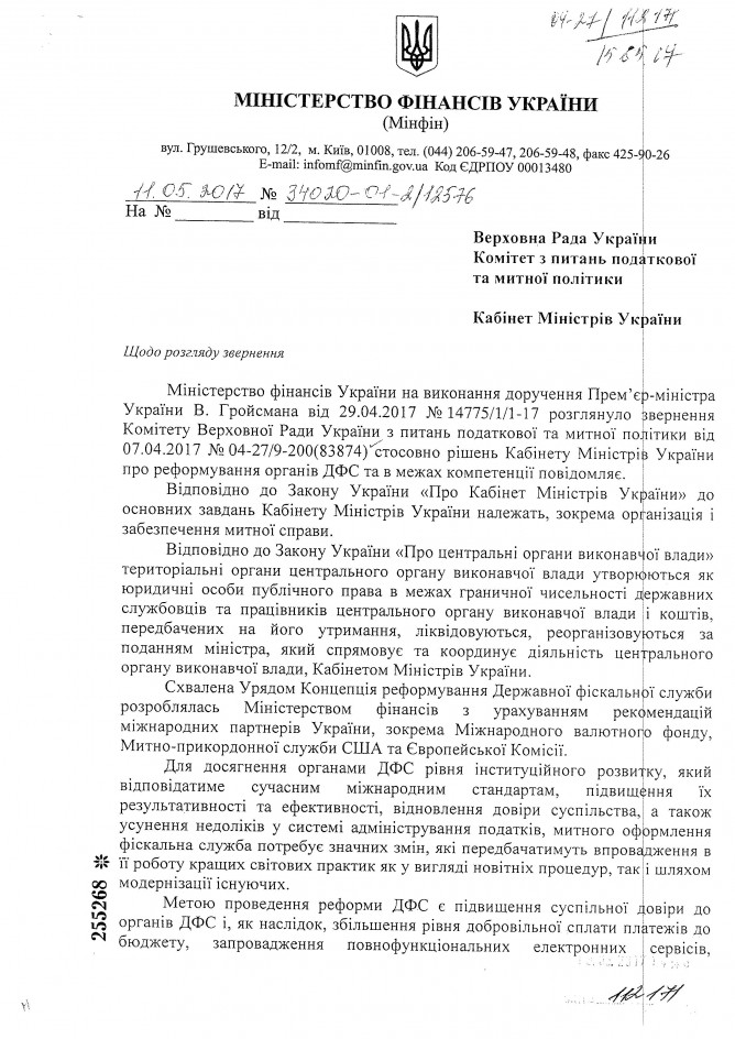 23Тра Коментування вимкнено Відповідь Міністерства фінансів України на звернення Комітету ВРУ з питань податкової та митної політики щодо реформування органів ДФС