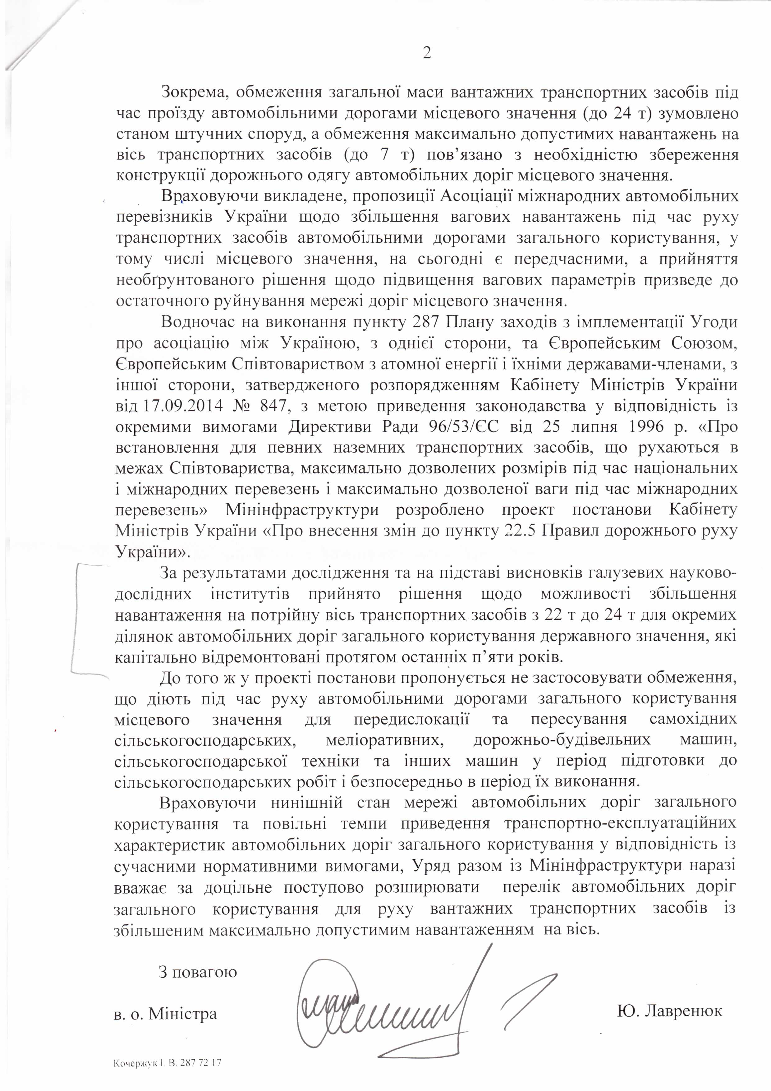 Вхідна документація > Відповідь Міністерства інфраструктури України на депутатський запит щодо зняття деяких обмежень для великовагових транспортних засобів під час здійснення перевезень дорогами загального користування місцевого значення