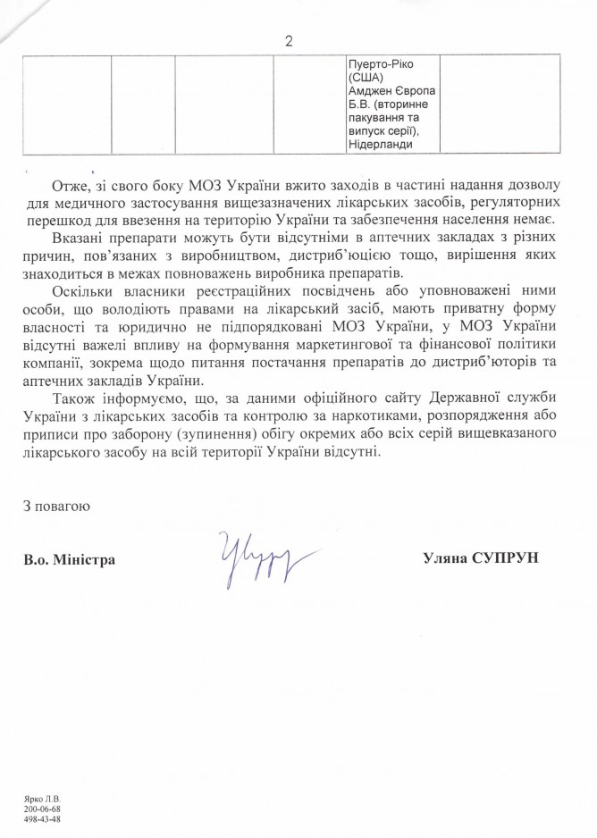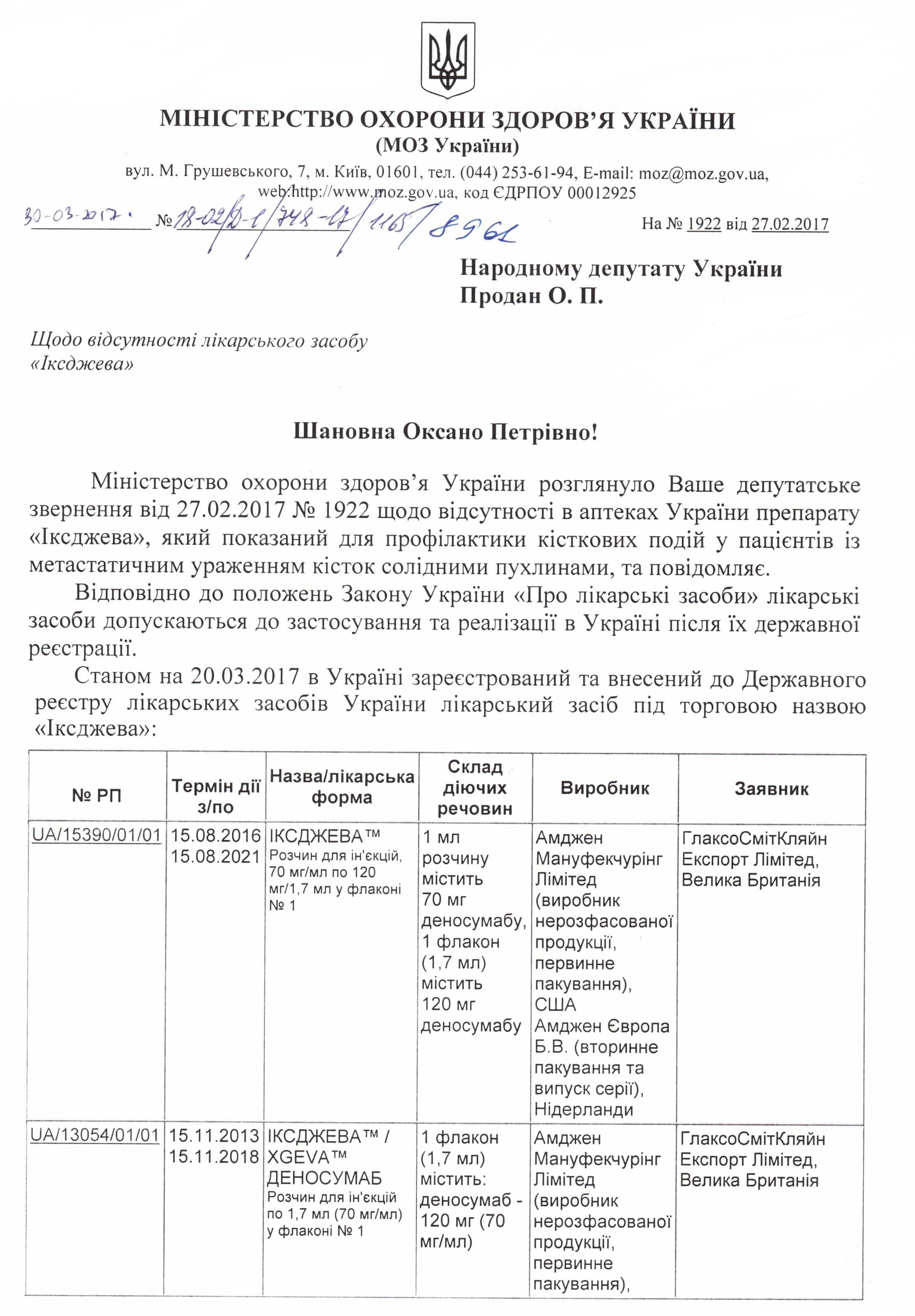 14Кві Коментування вимкнено Відповідь Міністерства охорони здоров’я України на депутатське звернення щодо зникнення з аптек життєво необхідних ліків ДЕПУТАТСЬКЕ ЗВЕРНЕННЯ