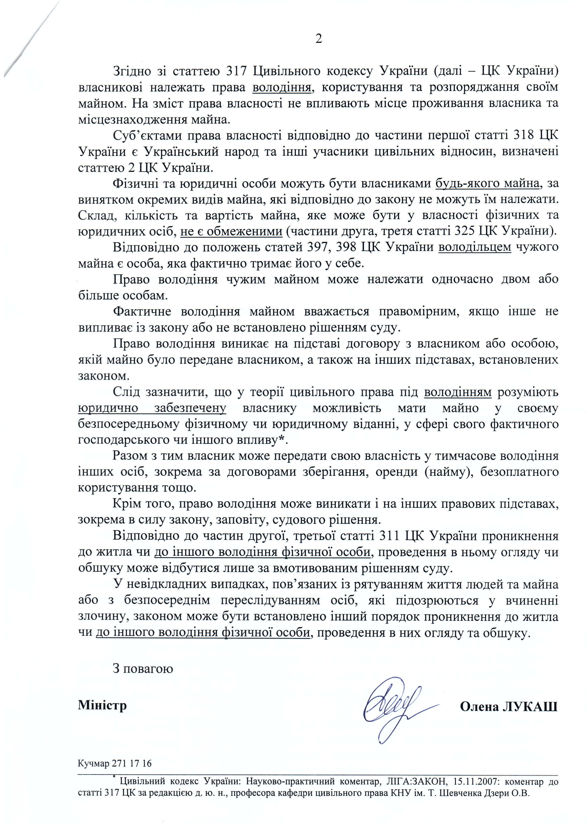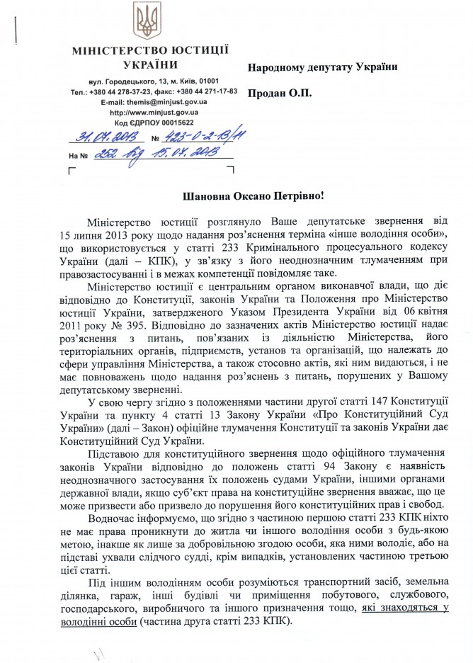 20Сер Коментування вимкнено Відповідь Міністерства юстиції України на депутатське звернення щодо надання роз’яснення терміну “інше володіння”, яке використовується у ст. 233 КПК України