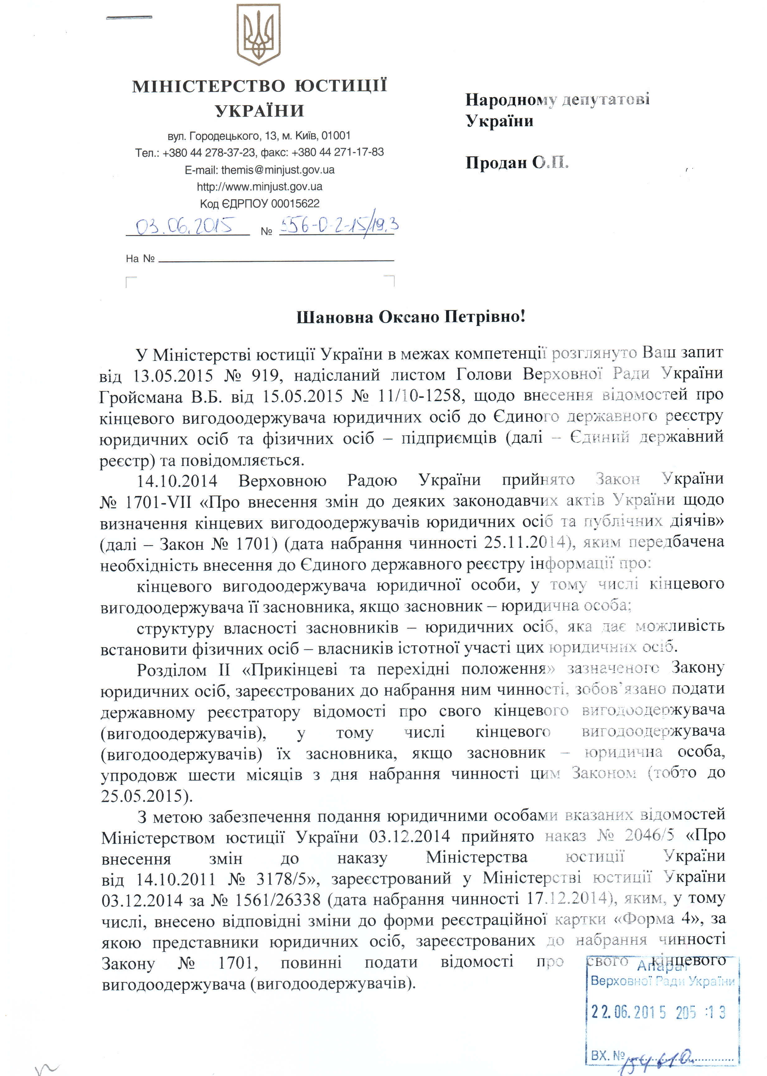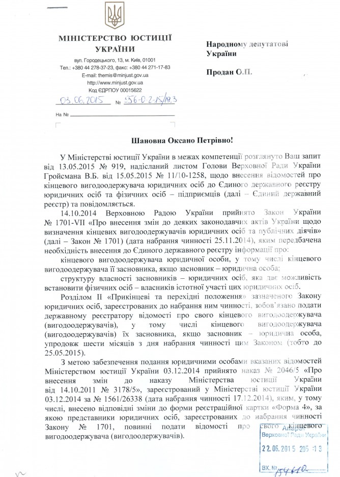 02Лип Коментування вимкнено Відповідь Міністерства юстиції України на депутатський запит щодо подання відомостей про кінцевого вигодоодержувача юридичних осіб та публічних діячів ДЕПУТАТСЬКИЙ ЗАПИТ