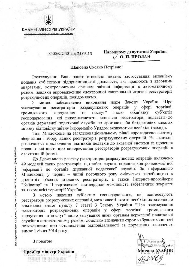 Відповідь на депутатський запит до Кабінету Міністрів України стосовно неможливості направлення електронних копій документів по дротових та бездротових каналах зв’язку