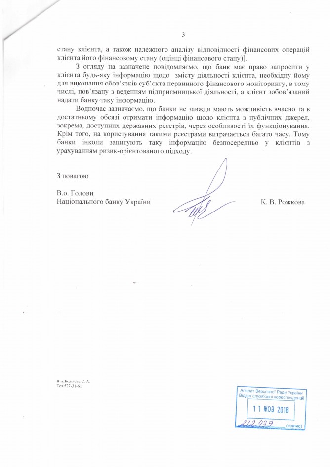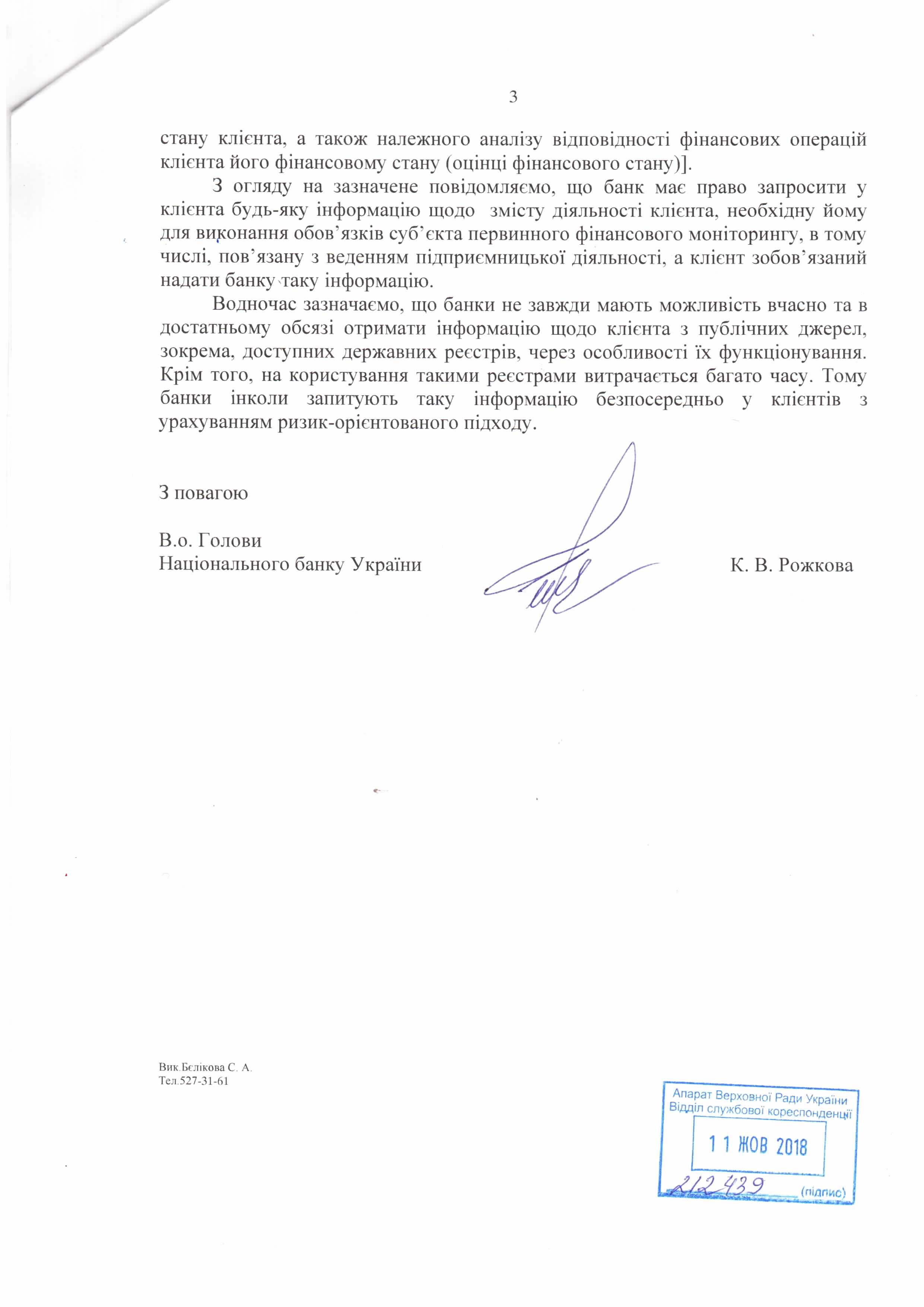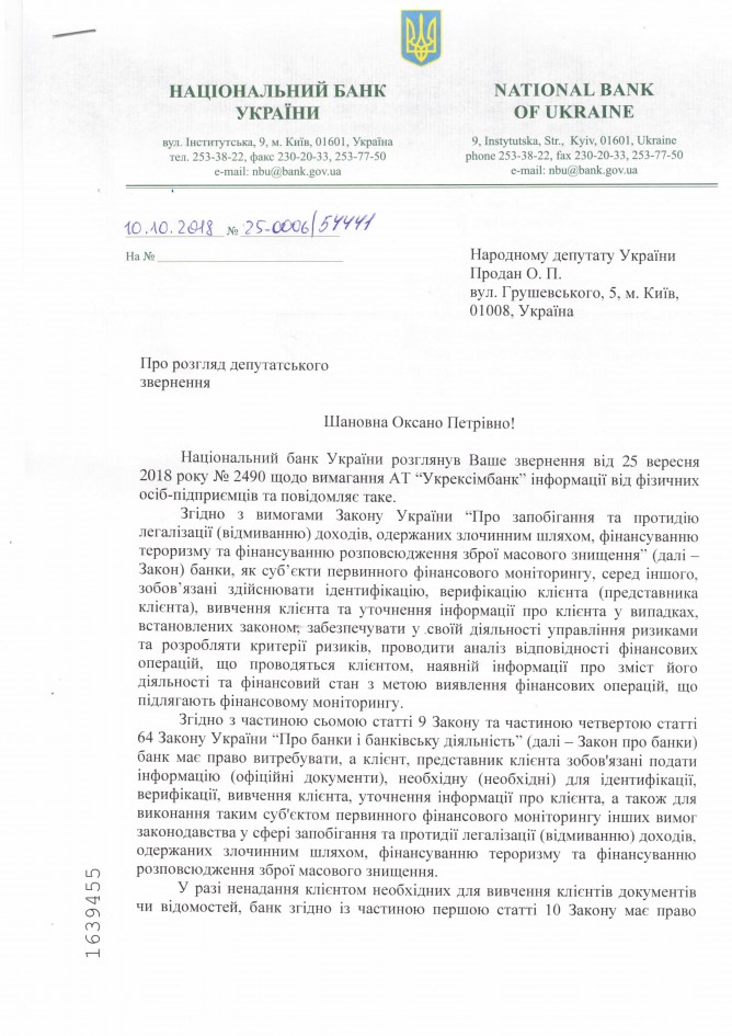 17Жов Коментування вимкнено Відповідь Національного банку України на депутатське звернення щодо вимагання банками інформації від фізичних осіб-підприємців ДЕПУТАТСЬКЕ ЗВЕРНЕННЯ