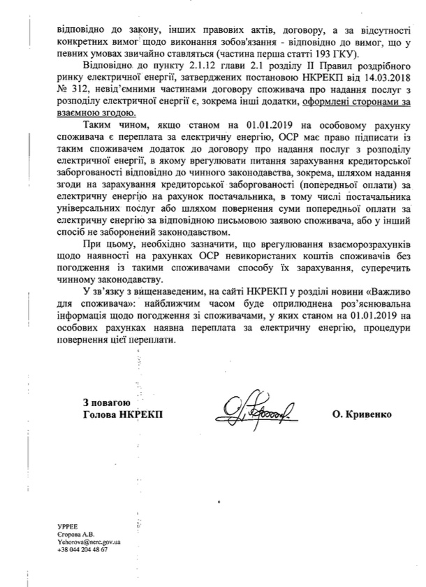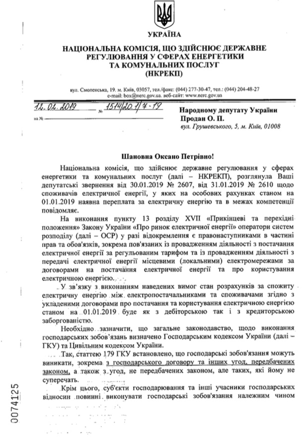 Вхідна документація > Відповідь Національної комісії, що здійснює державне регулювання у сферах енергетики та комунальних послуг на депутатське звернення щодо зловживання монопольним становищем постачальником електроенергії в Чернівецькій, Івано-Франківській, Київській, Луганській та Сумській областях