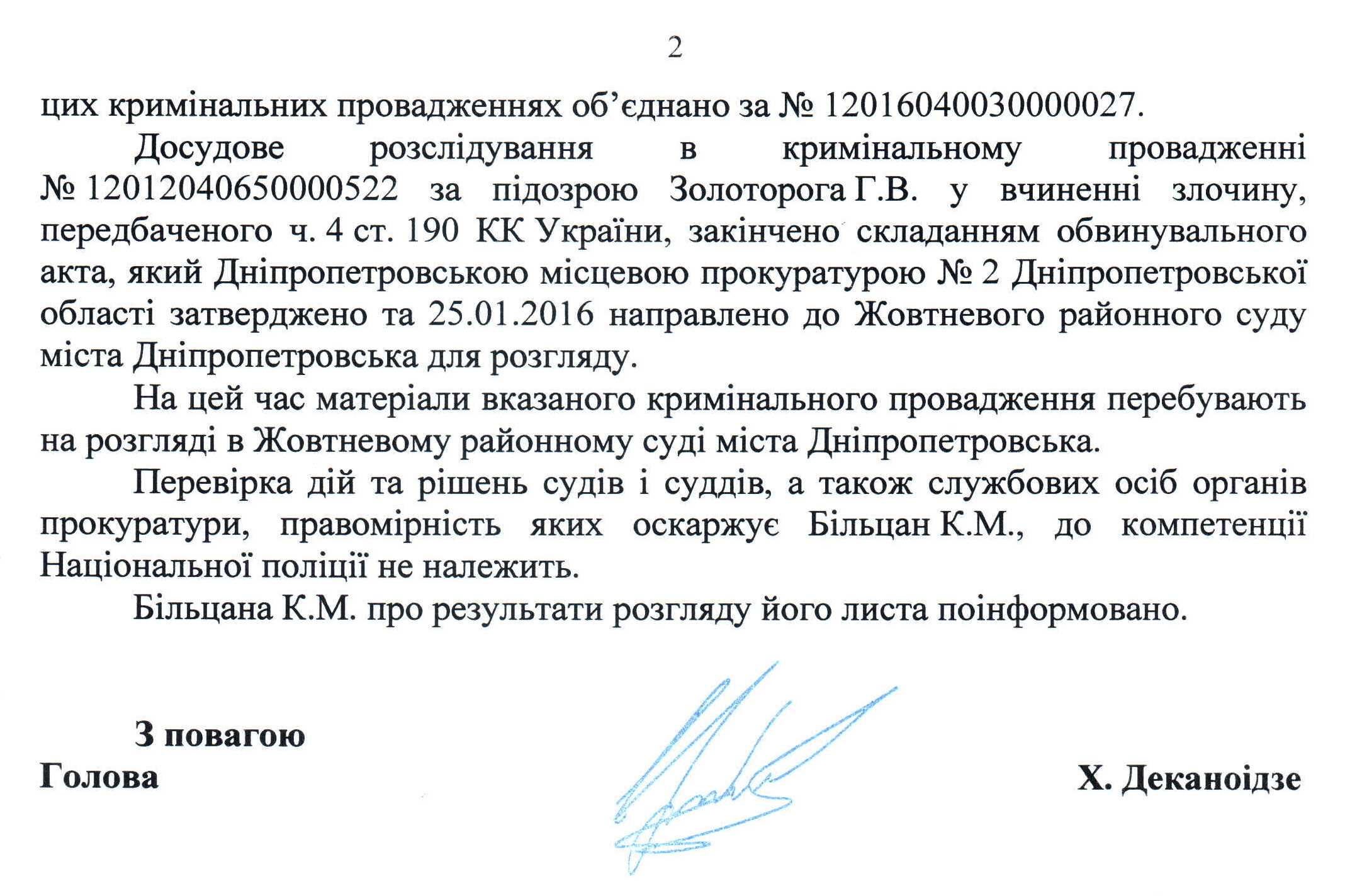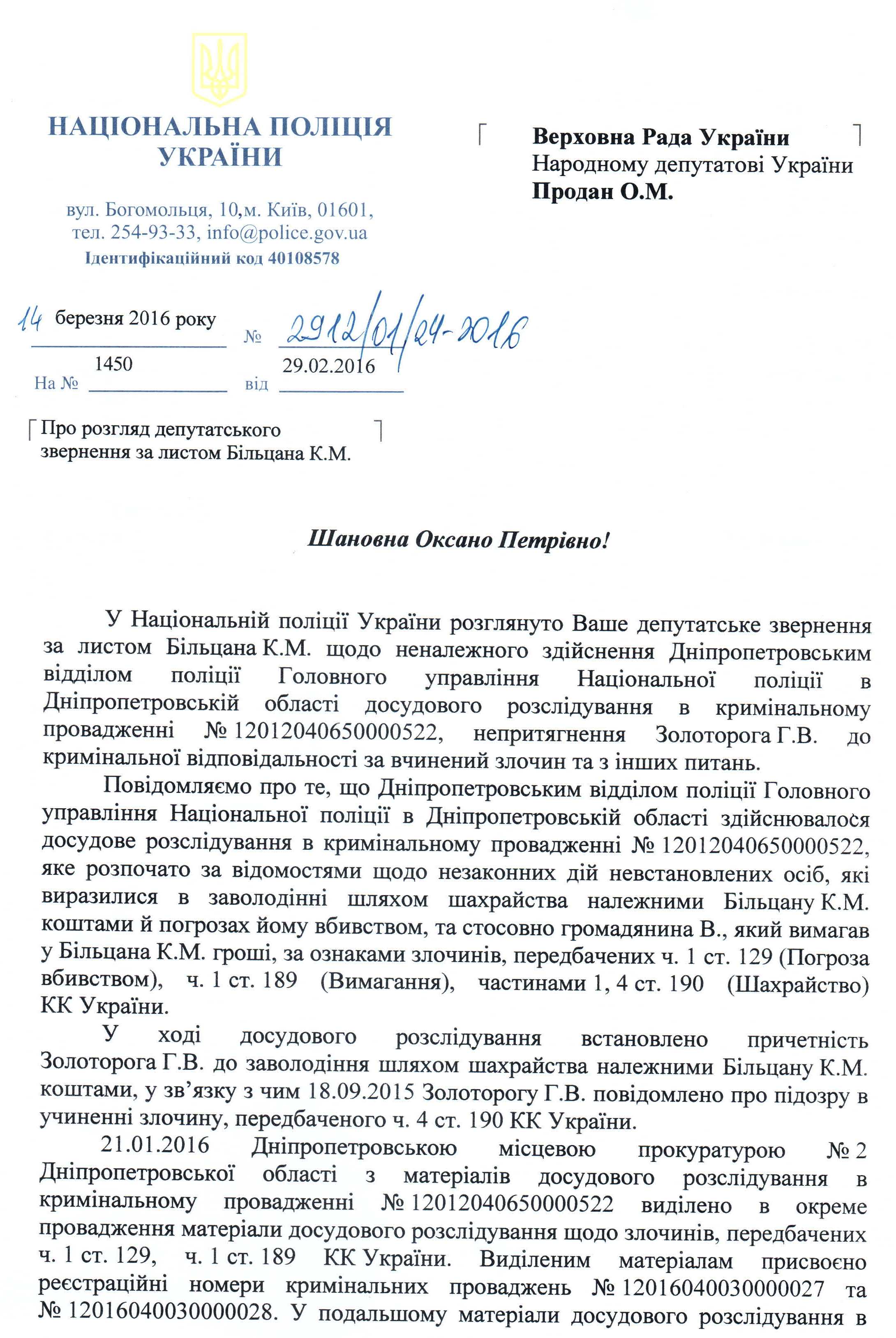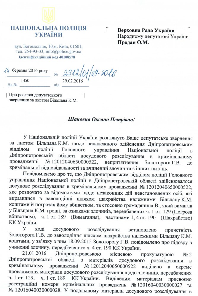 31Бер Коментування вимкнено Відповідь Національної поліції України на депутатське звернення щодо неналежного досудового розслідування кримінального провадження співробітниками поліції в Дніпропетровській області ДЕПУТАТСЬКЕ ЗВЕРНЕННЯ