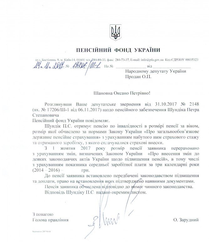 Вхідна документація > Відповідь Пенсійного фонду України на депутатське звернення щодо неналежного виконання співробітниками Фастівського об’єднаного управління Пенсійного фонду України Київської області своїх посадових обов’язків