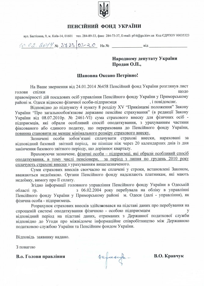 26Лют Коментування вимкнено Відповідь Пенсійного фонду України на депутатське звернення щодо незаконних вимог Управління ПФУ в Приморському районі м. Одеси по сплаті пенсійних внесків ДЕПУТАТСЬКЕ ЗВЕРНЕННЯ