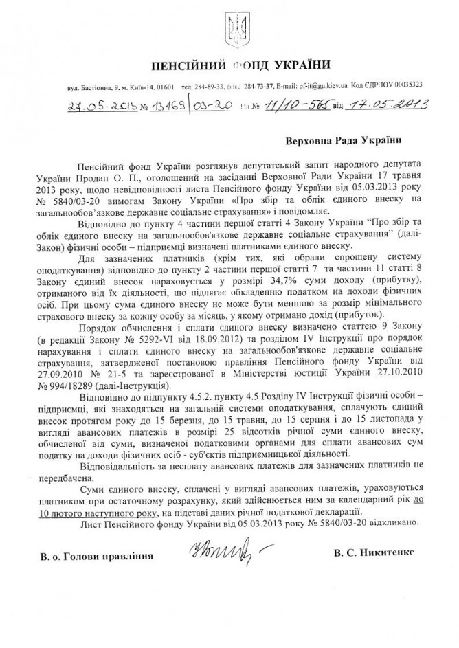 10Чер Коментування вимкнено Відповідь Пенсійного фонду України щодо відкликання Листа ПФУ від 05.03.2013 року №5840/03-20 Депутатський запит