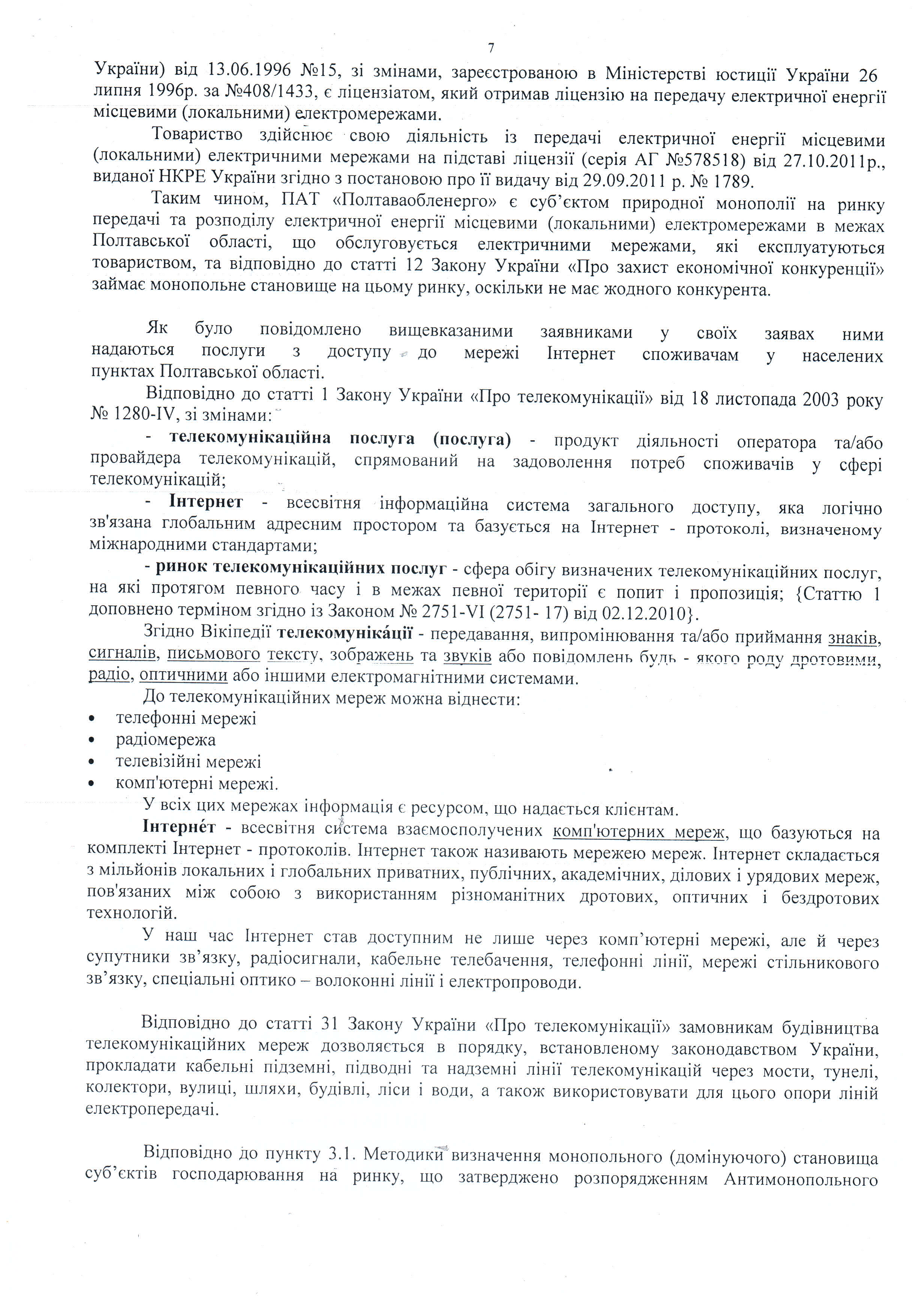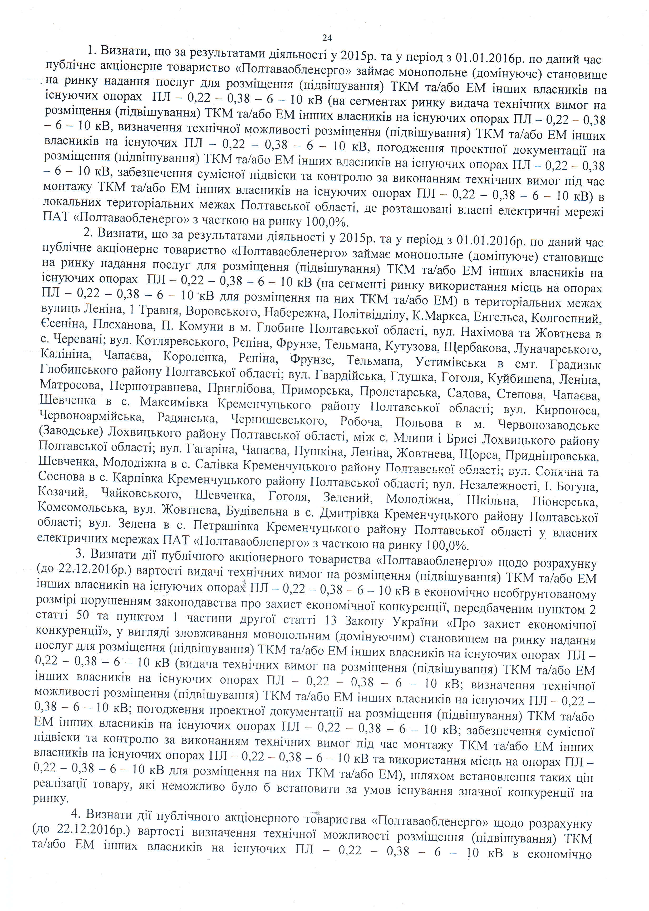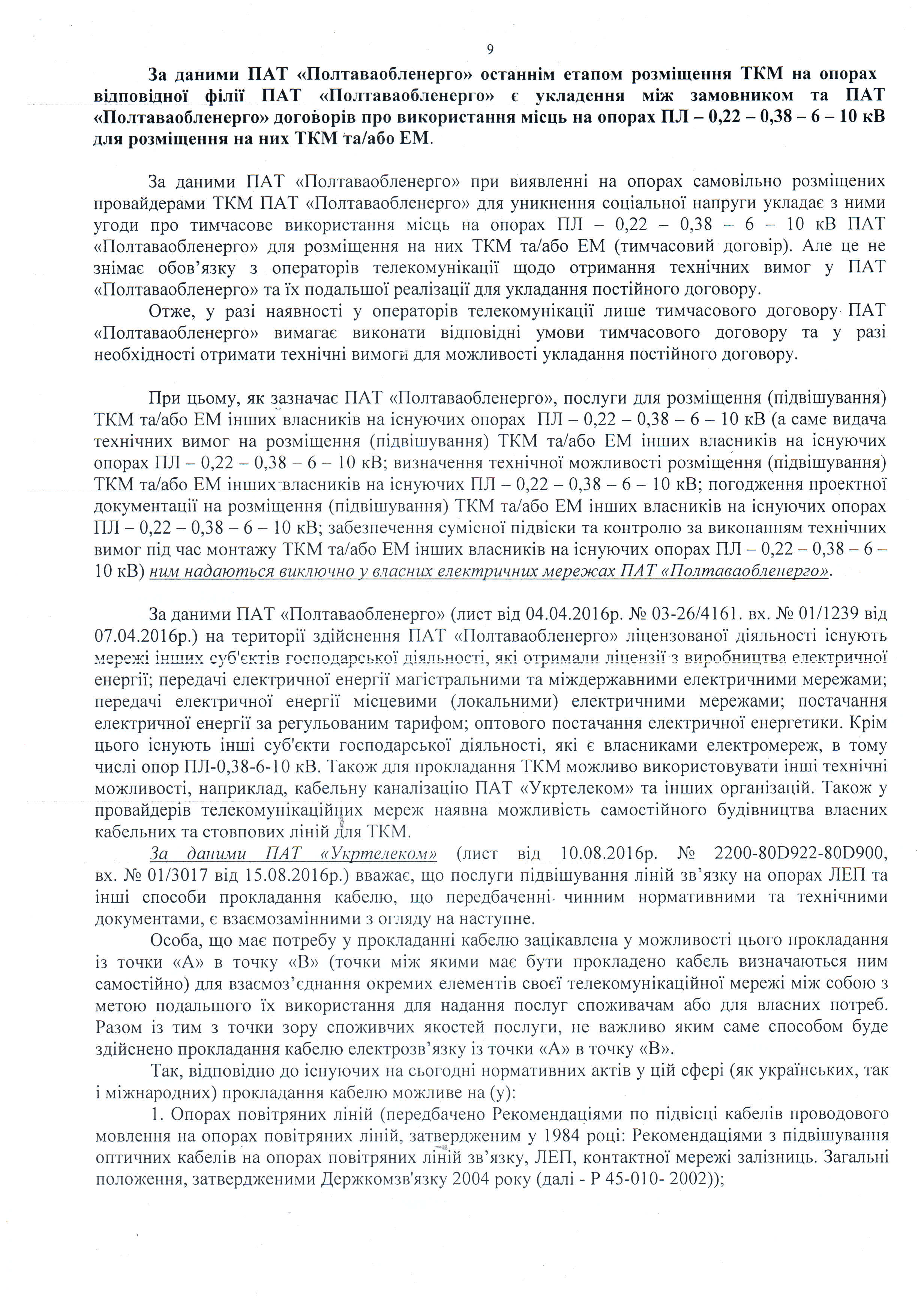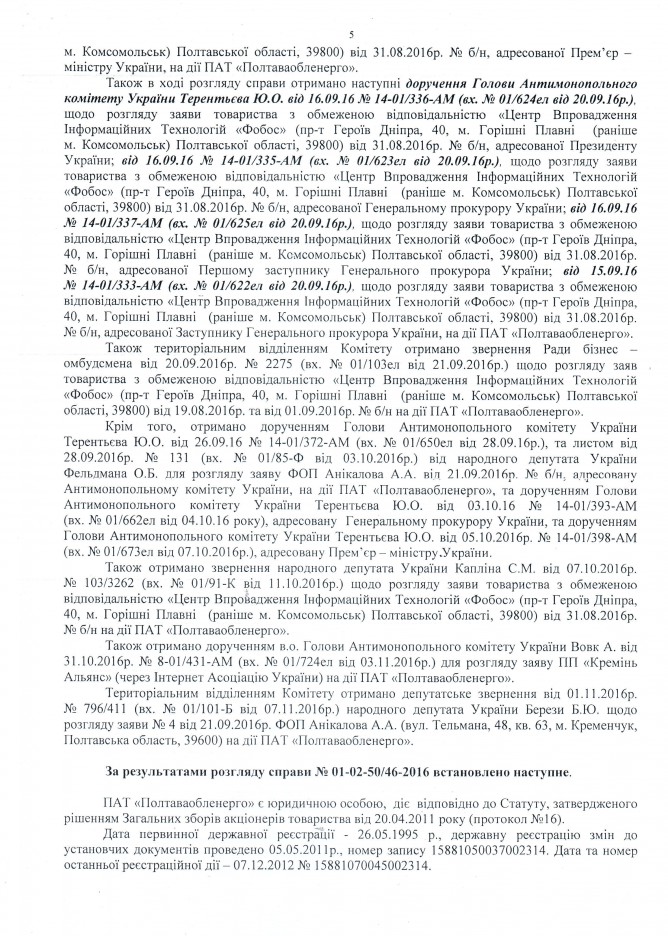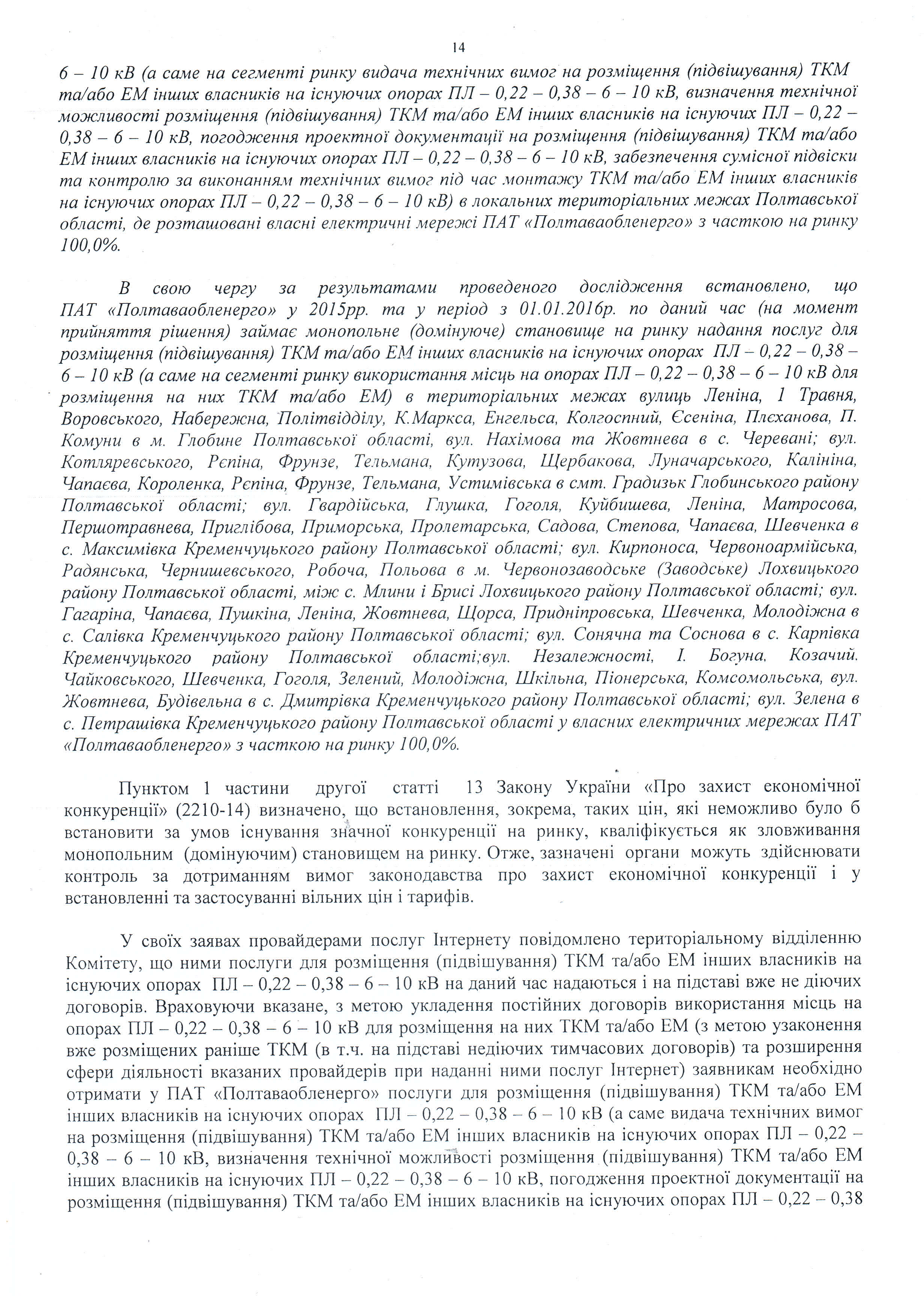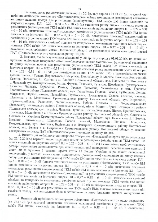 Вхідна документація > Відповідь Полтавського обласного територіального відділення Антимонопольного комітету України на депутатське звернення щодо порушень ПАТ «Полтаваобленерго» законодавства про захист економічної конкуренції