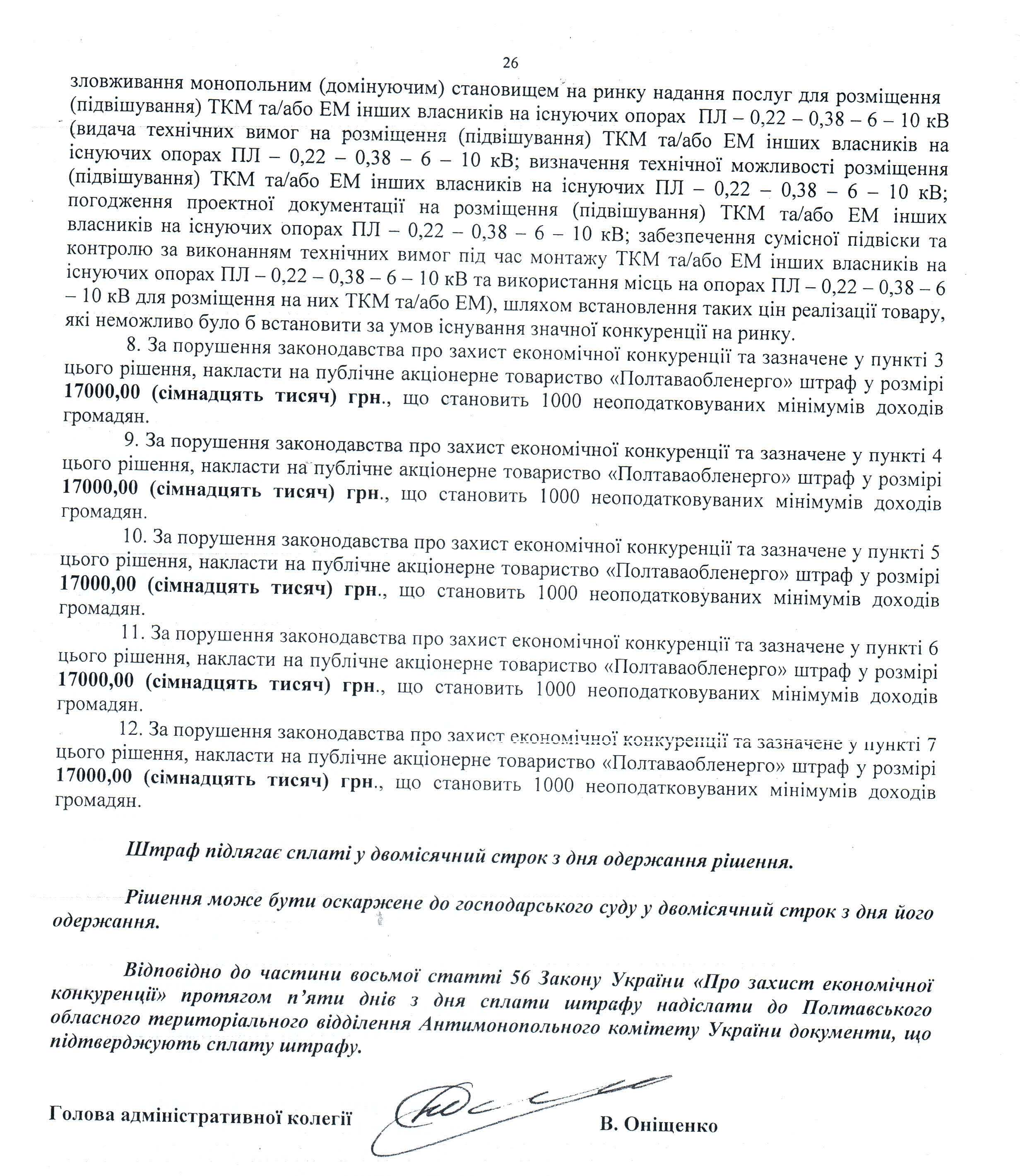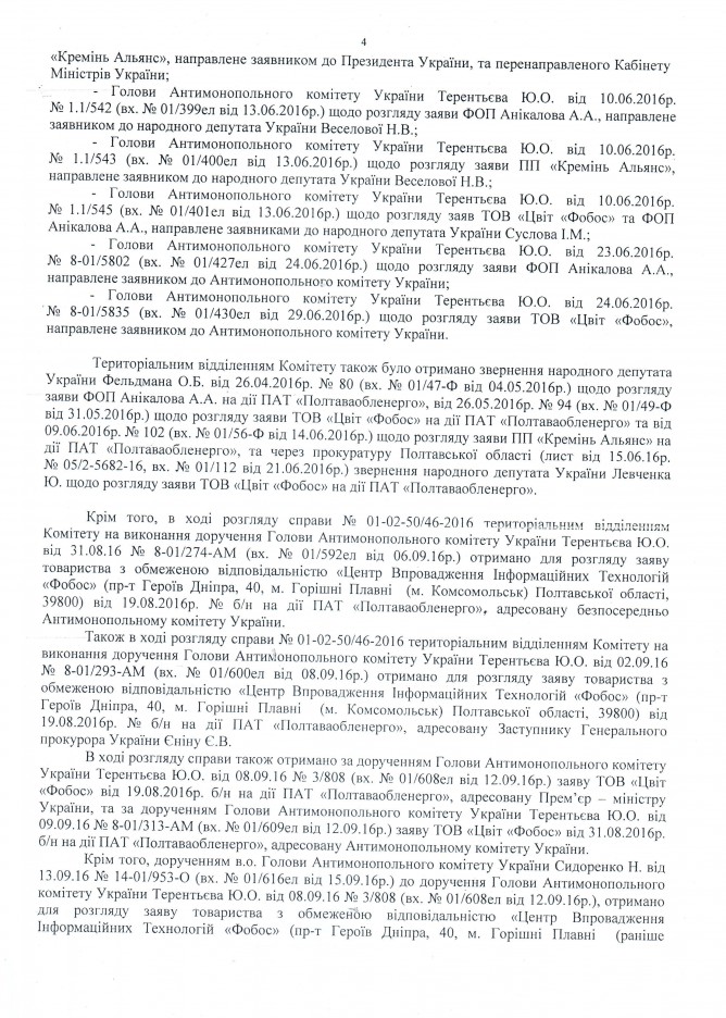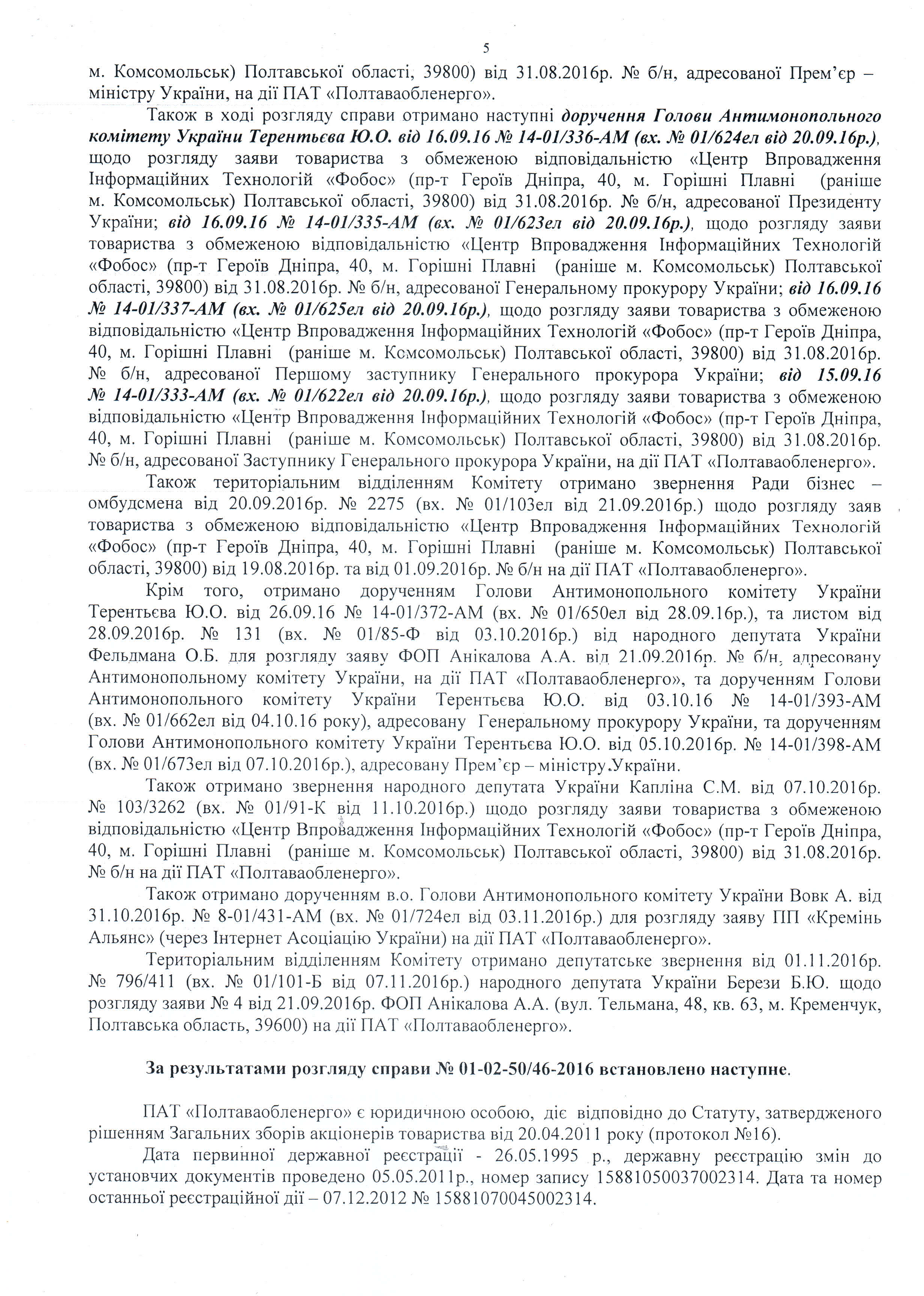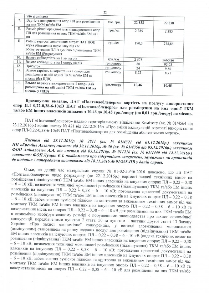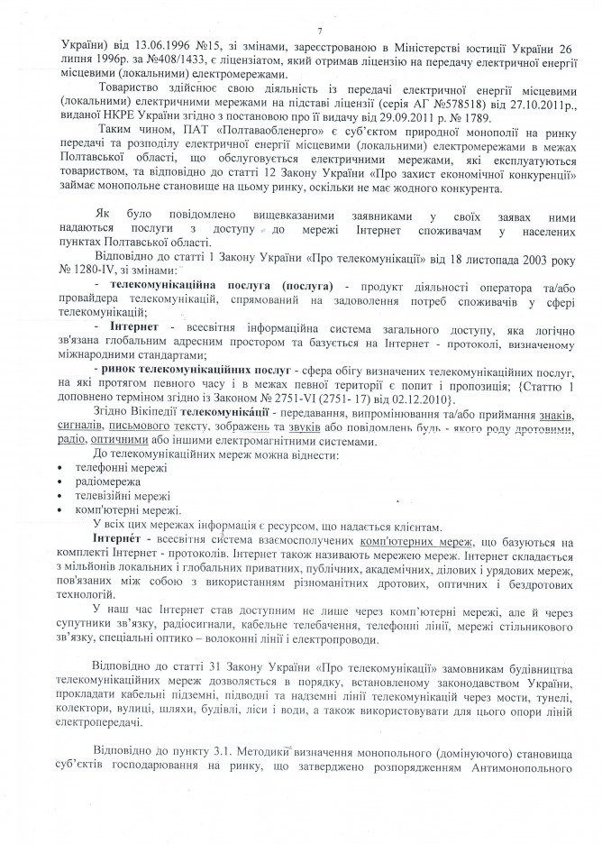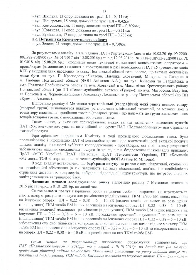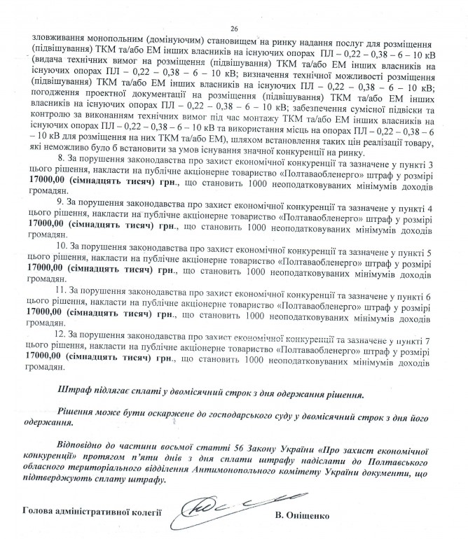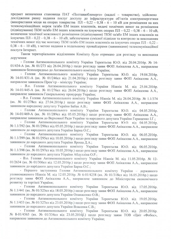 Вхідна документація > Відповідь Полтавського обласного територіального відділення Антимонопольного комітету України на депутатське звернення щодо порушень ПАТ «Полтаваобленерго» законодавства про захист економічної конкуренції