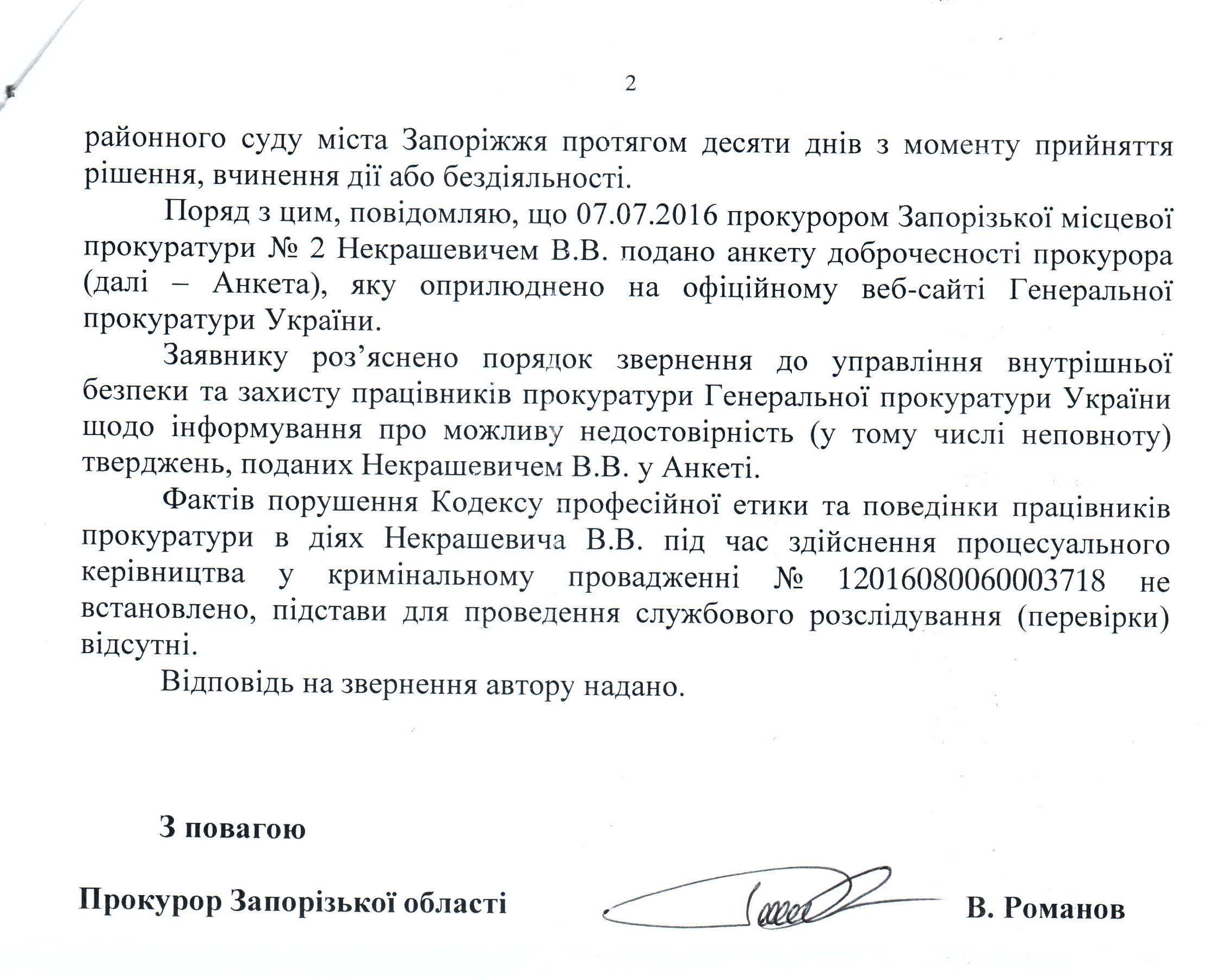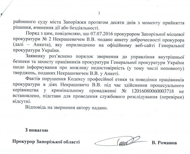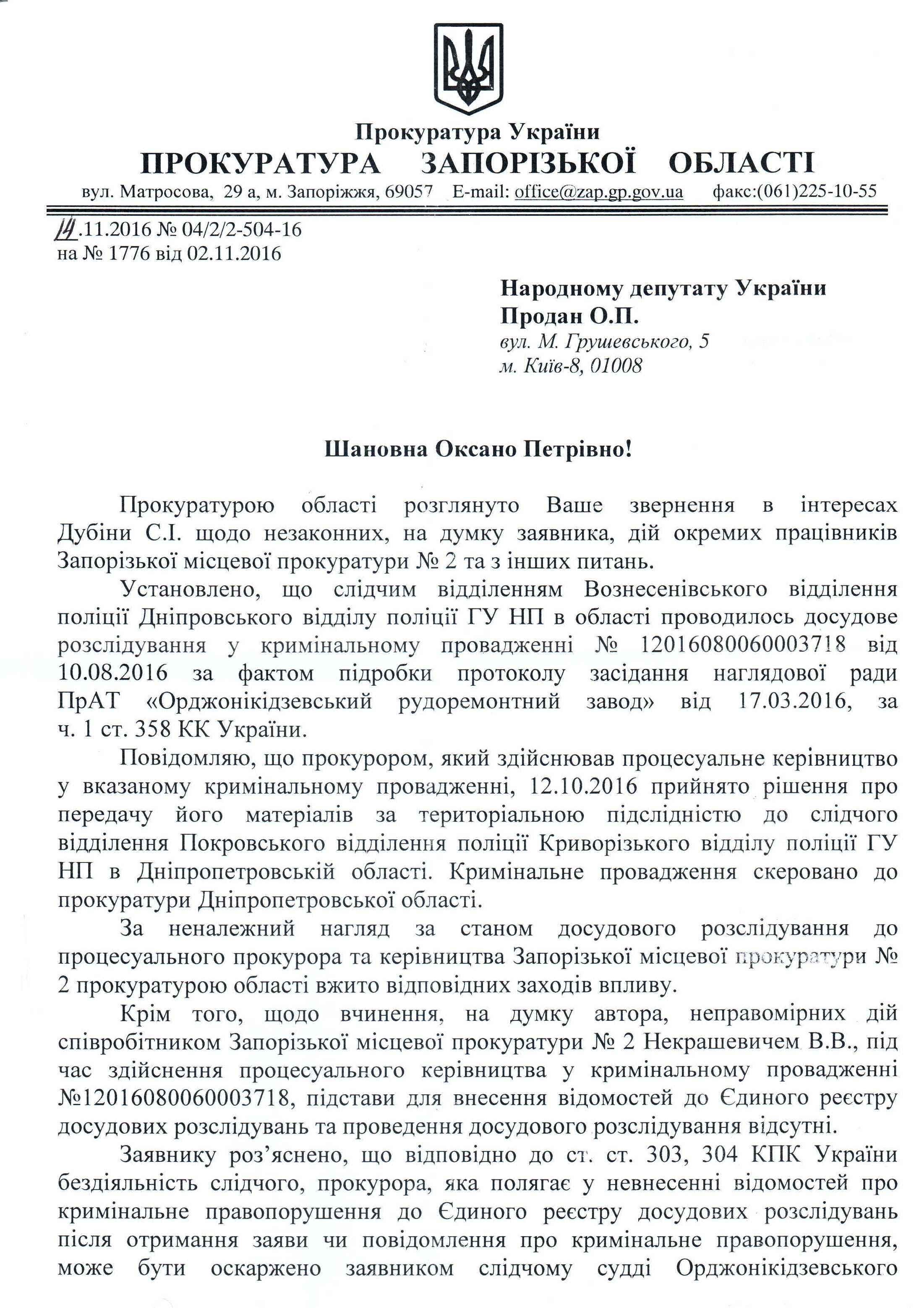 09Гру Коментування вимкнено Відповідь Прокуратури Запорізької області на депутатське звернення щодо можливих порушень кримінального процесуального законодавства співробітниками Запорізької місцевої прокуратури №2 ДЕПУТАТСЬКЕ ЗВЕРНЕННЯ