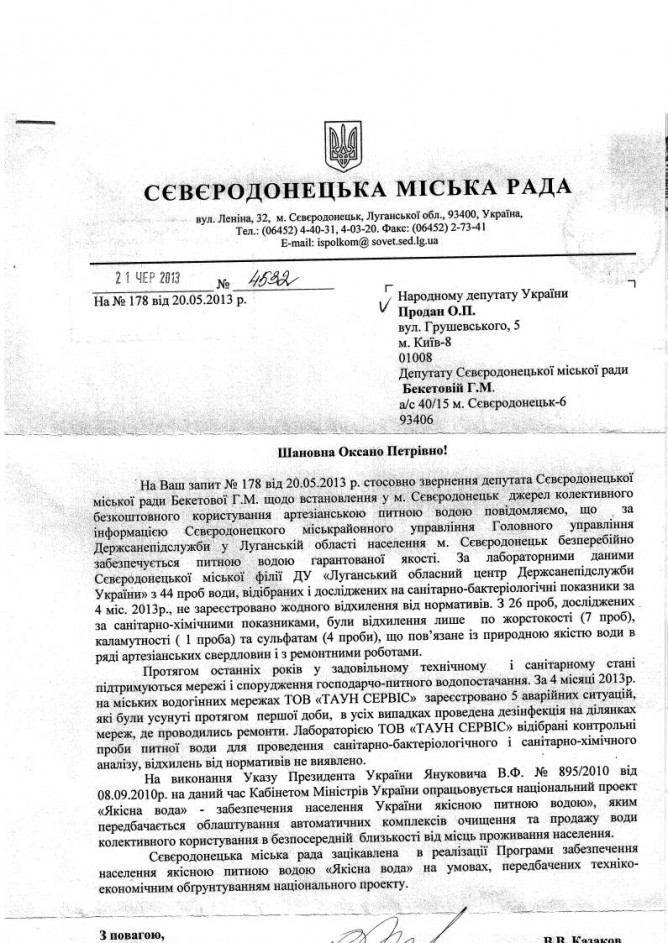 08Лип Коментування вимкнено Відповідь Сєвєродонецької міської ради стосовно встановлення у м. Сєвєродонецьку джерел колективного користування артезіанською водою