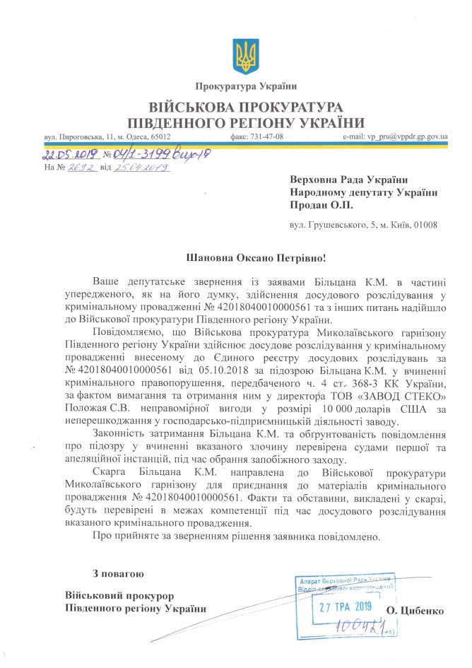 13Чер Коментування вимкнено Відповідь Військової прокуратури Південного регіону України на депутатське звернення щодо можливого порушення законодавства співробітниками Військової прокуратури Південного регіону України ДЕПУТАТСЬКЕ ЗВЕРНЕННЯ