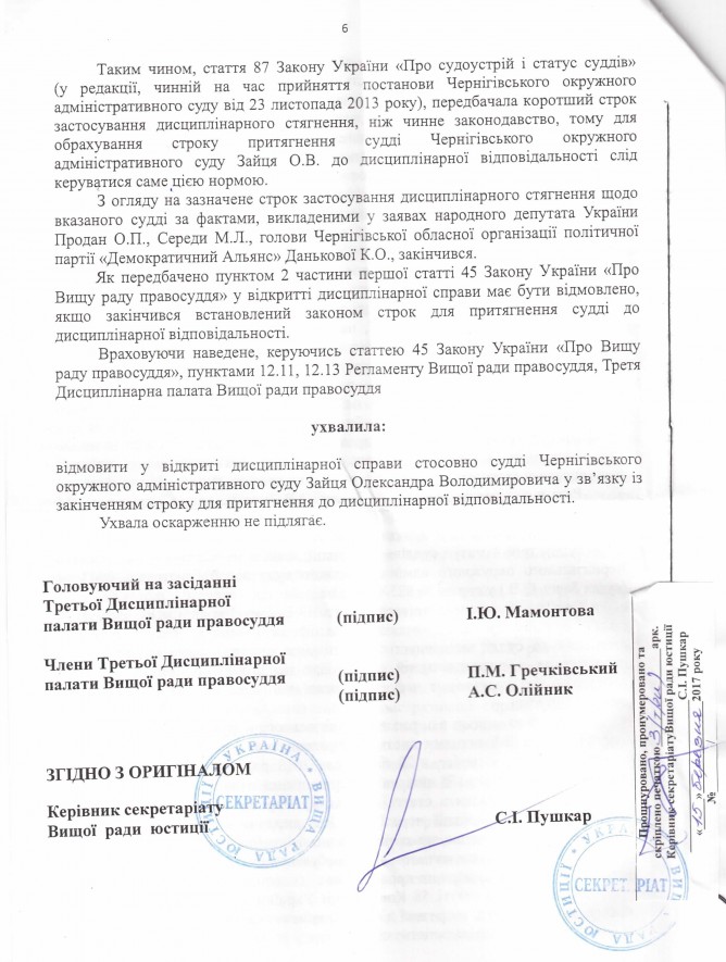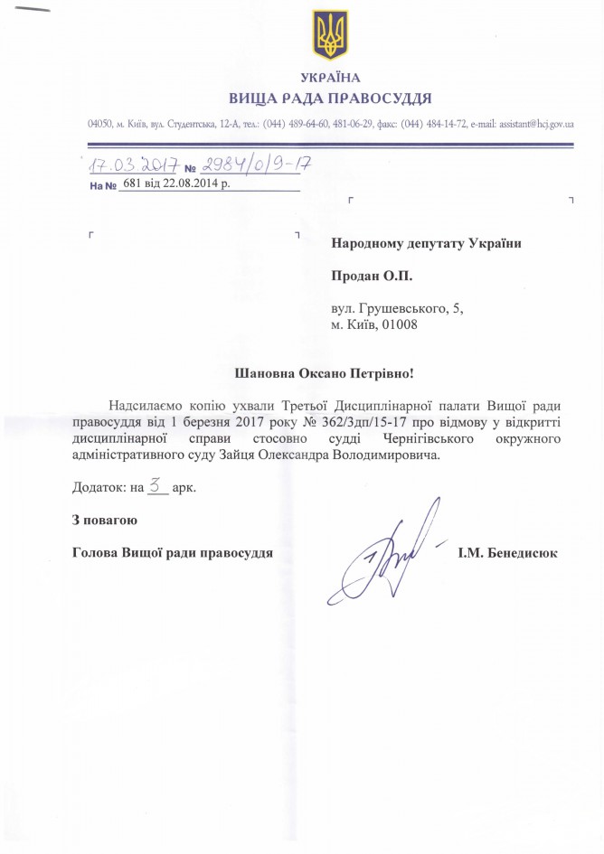 28Бер Коментування вимкнено Відповідь Вищої ради правосуддя на депутатське звернення щодо притягнення до відповідальності судді Чернігівського окружного адміністративного суду О.В. Зайця ДЕПУТАТСЬКЕ ЗВЕРНЕННЯ