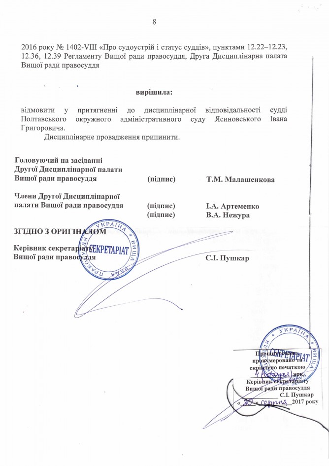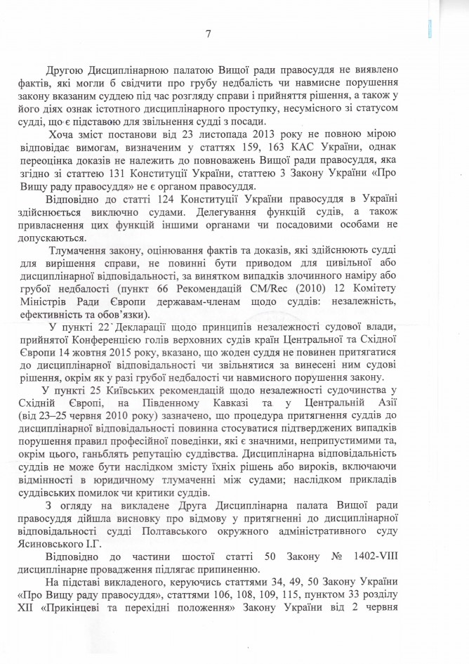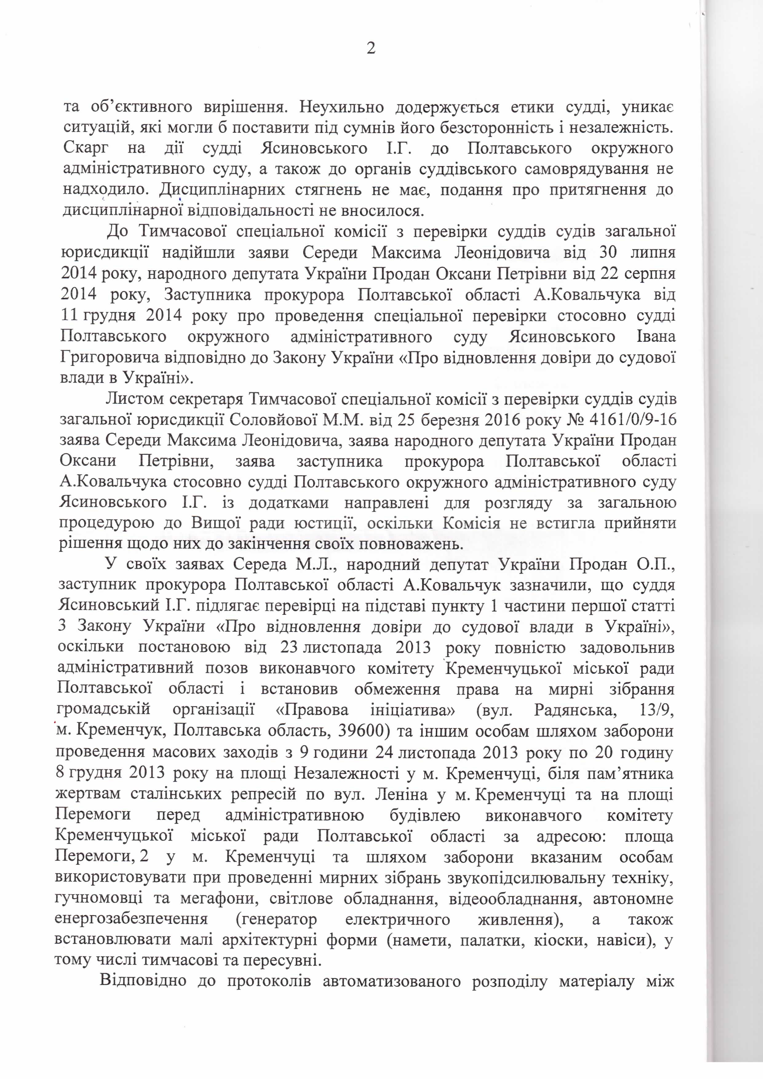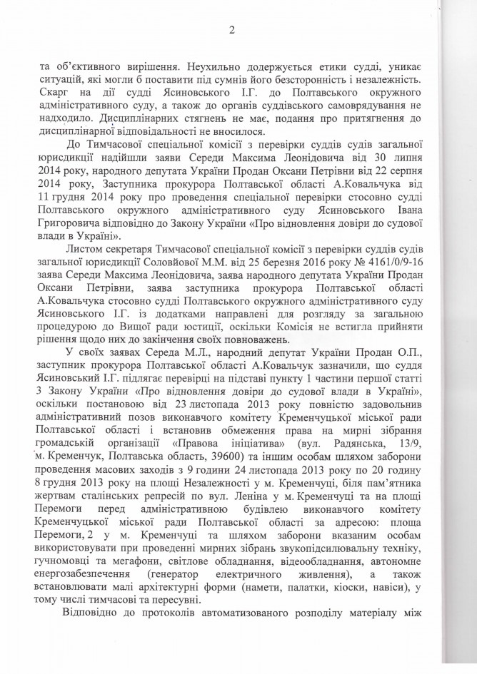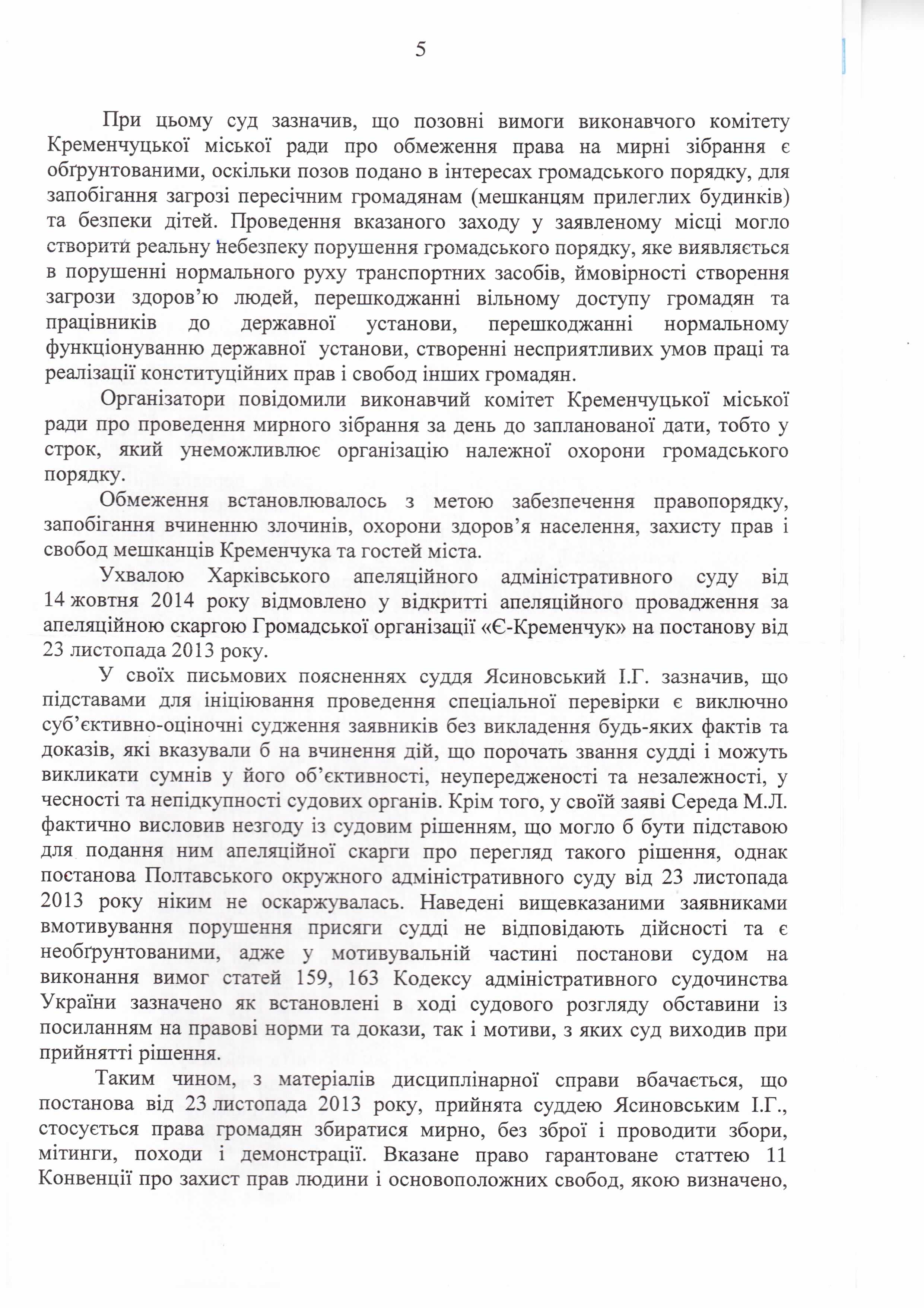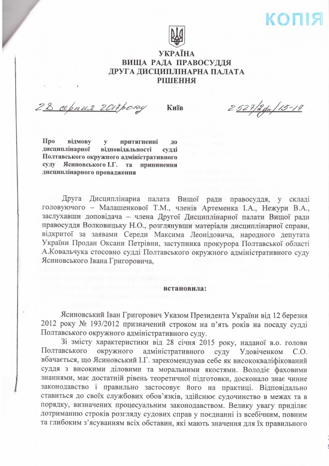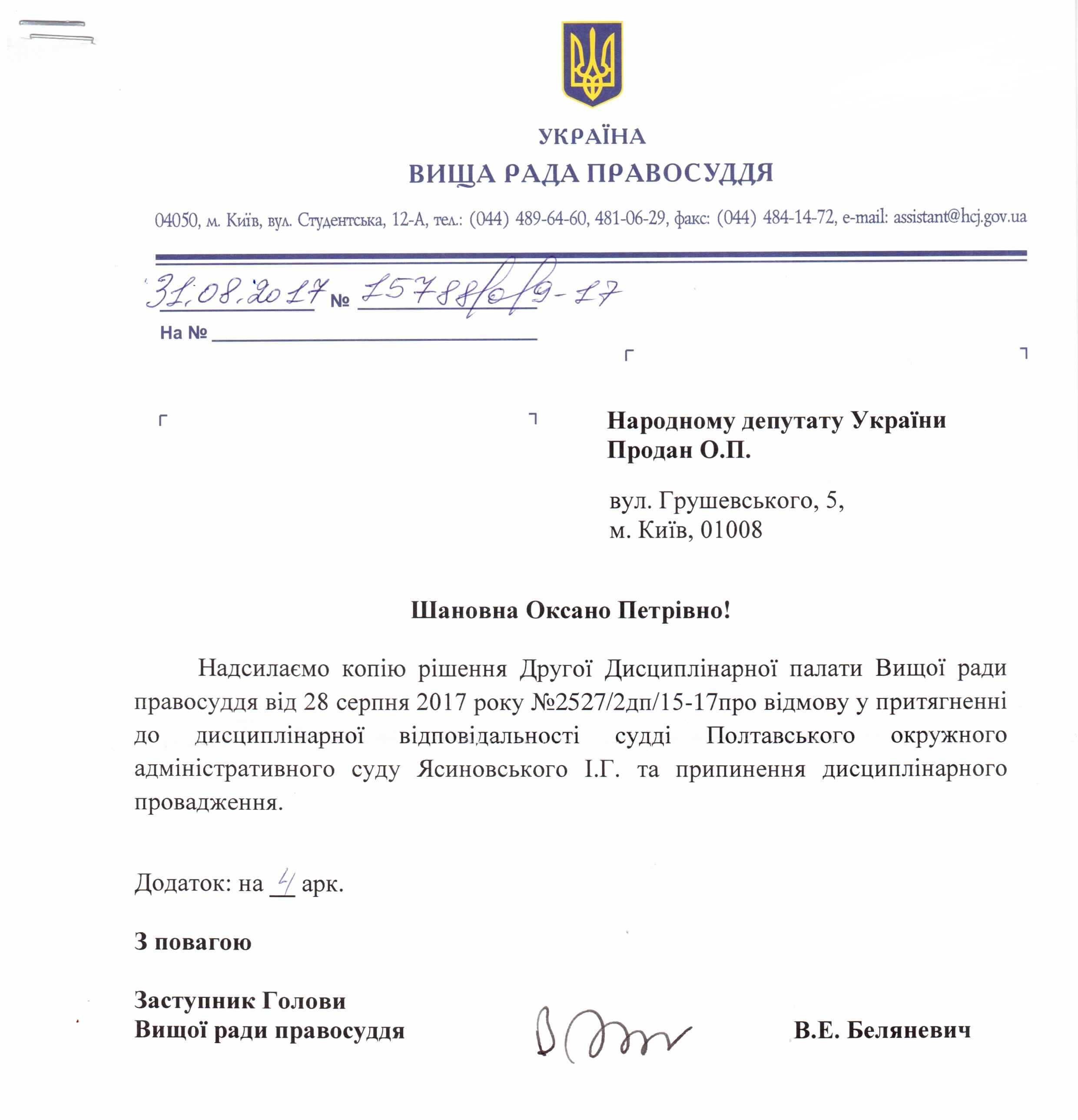 19Вер Коментування вимкнено Відповідь Вищої ради правосуддя на депутатське звернення щодо притягнення до відповідальності судді Полтавського окружного адміністративного суду Ясиновського І.Г. ДЕПУТАТСЬКЕ ЗВЕРНЕННЯ
