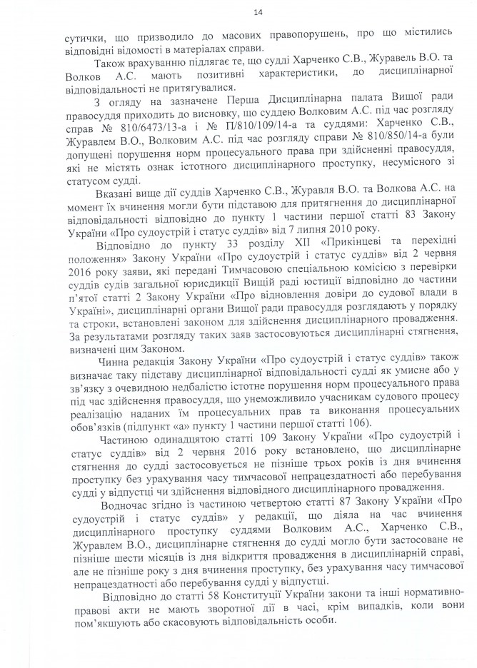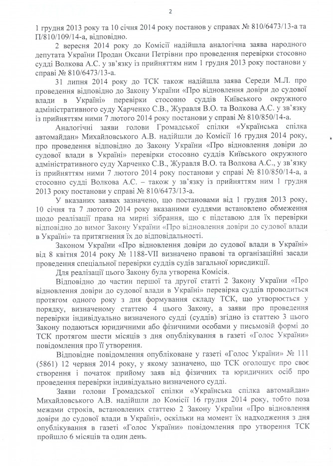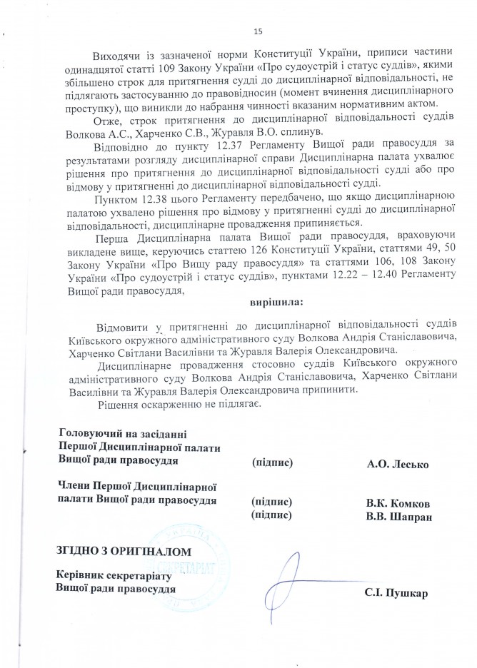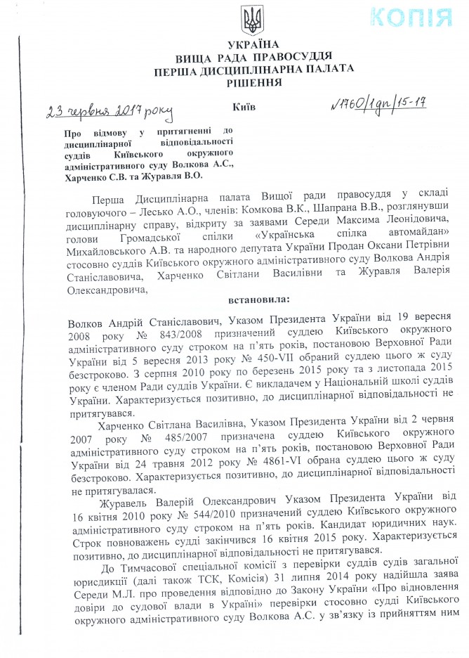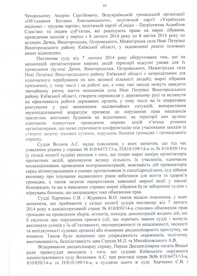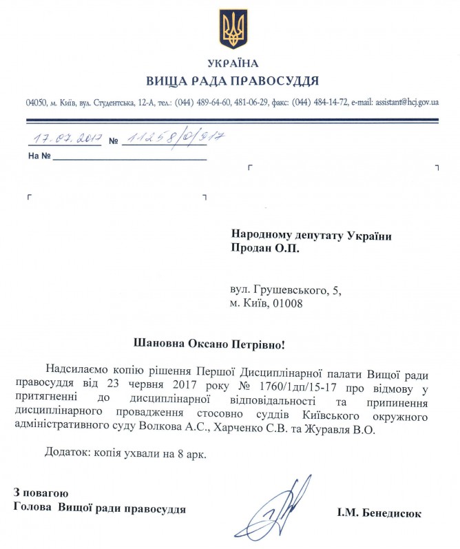 22Сер Коментування вимкнено Відповідь Вищої ради правосуддя на депутатське звернення щодо притягнення до відповідальності суддів Київського окружного адміністративного суду А.С. Волкова, С.В. Харченка та В.О. Журавля ДЕПУТАТСЬКЕ ЗВЕРНЕННЯ