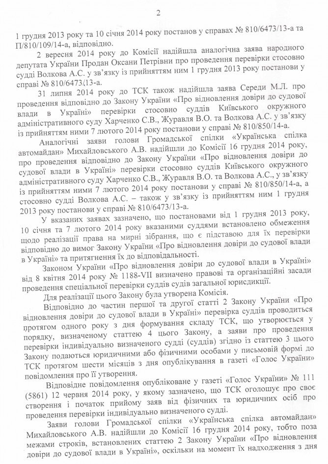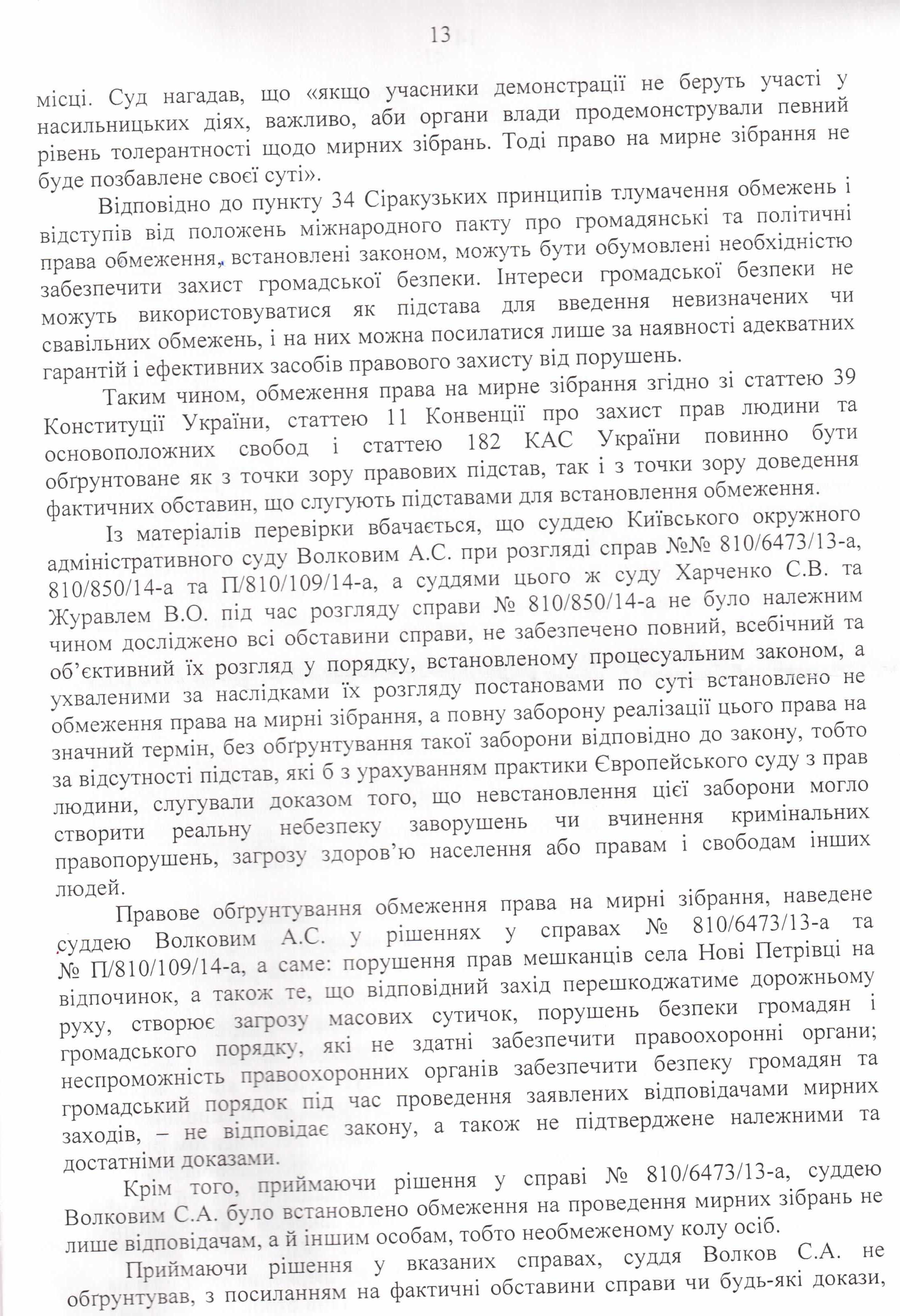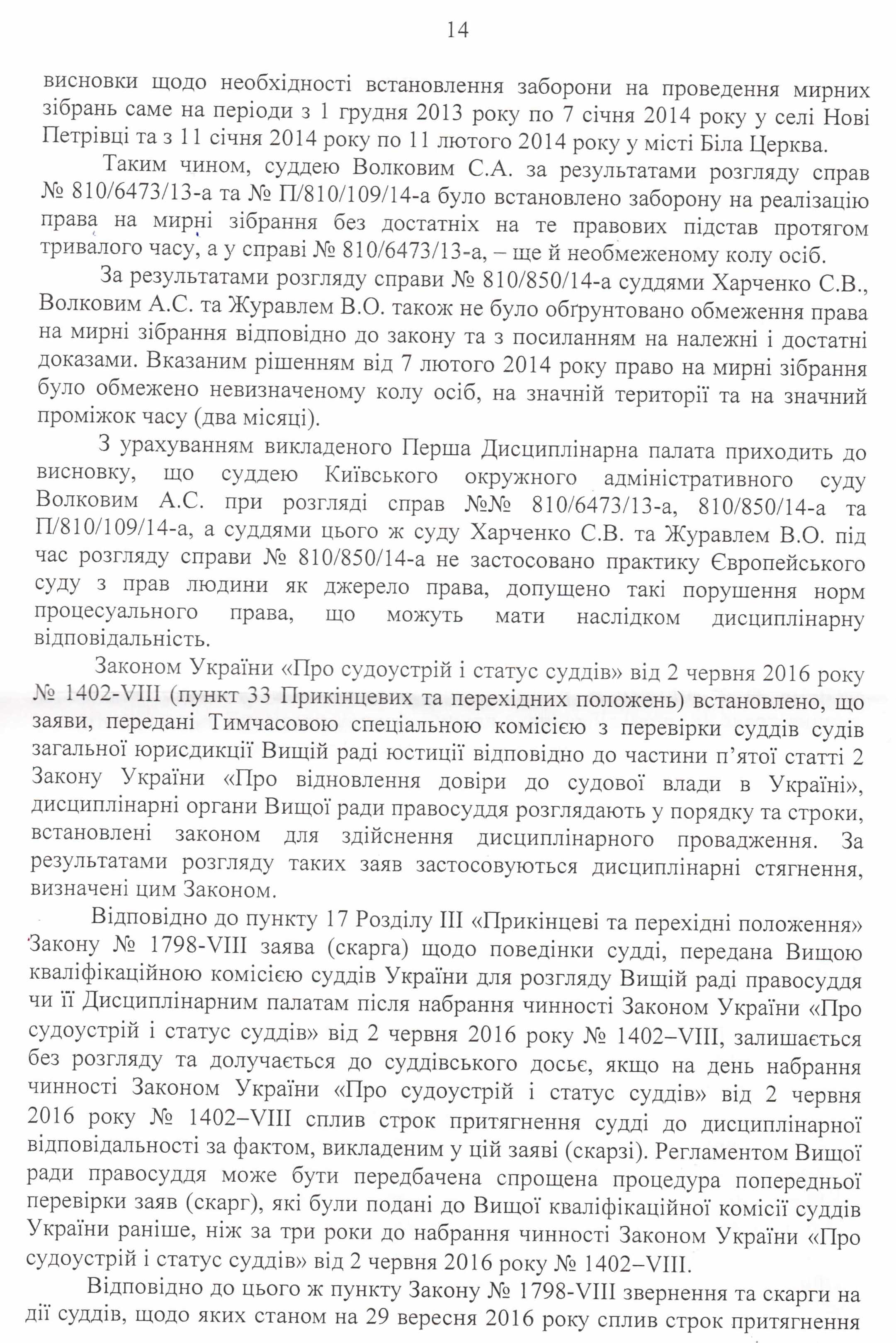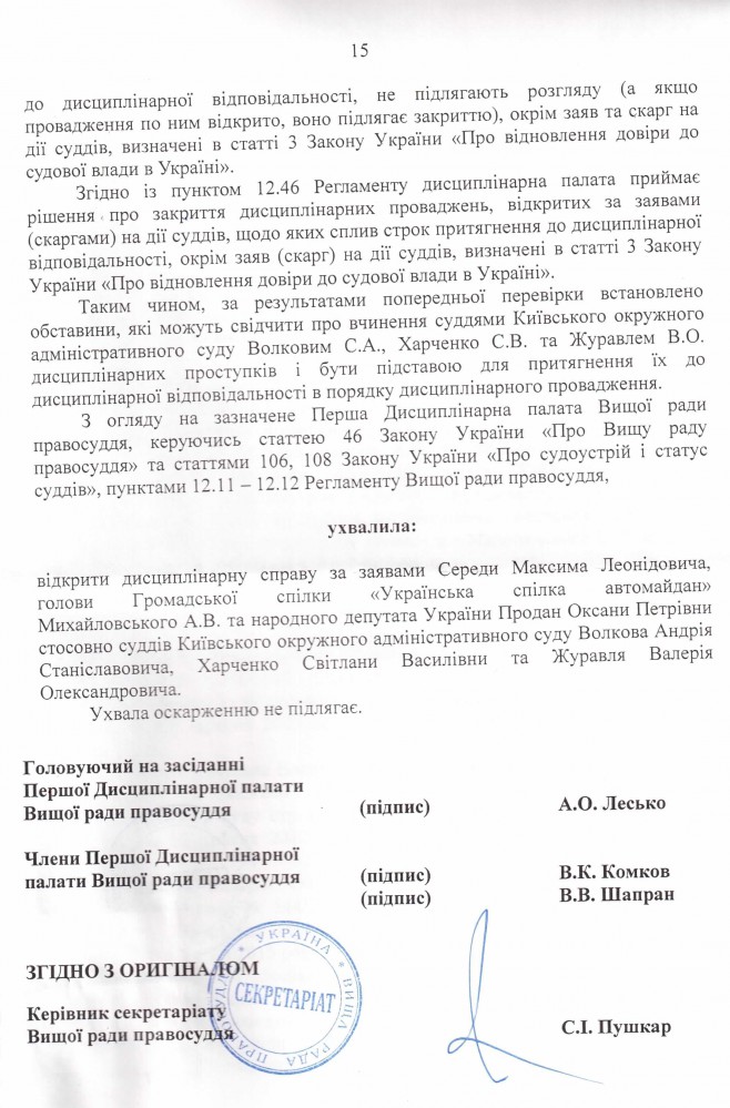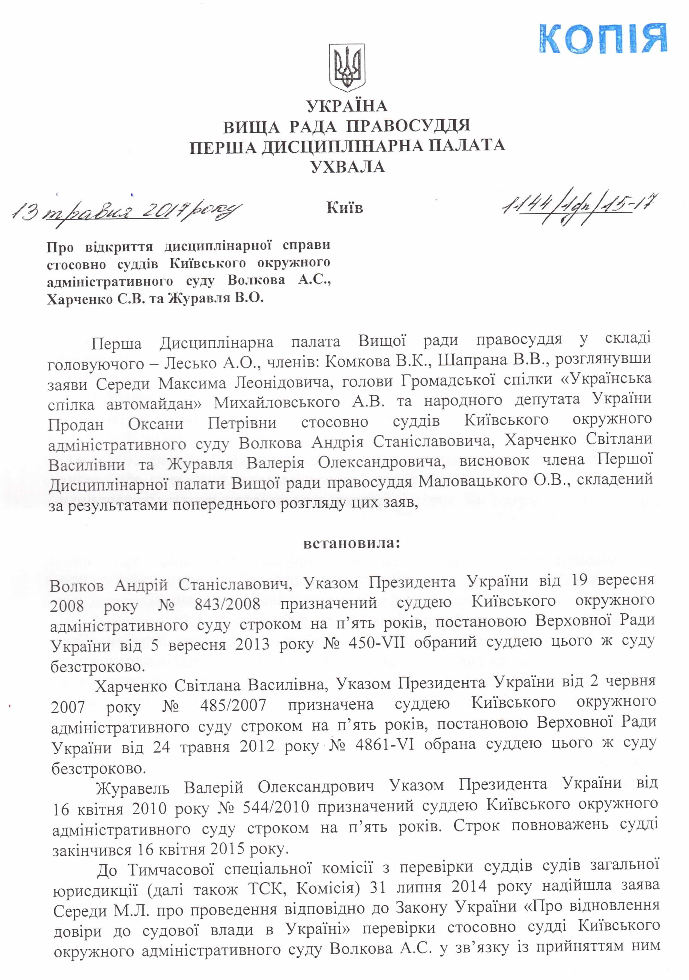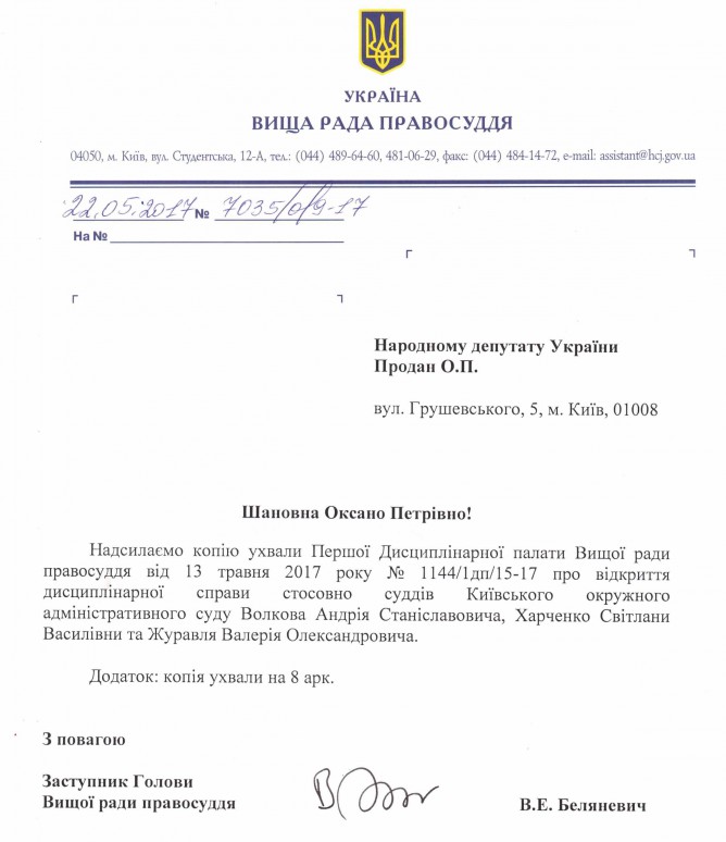 01Чер Коментування вимкнено Відповідь Вищої ради правосуддя на депутатське звернення щодо притягнення до відповідальності суддів Київського окружного адміністративного суду А.С. Волкова, С.В. Харченка та В.О. Журавля ДЕПУТАТСЬКЕ ЗВЕРНЕННЯ