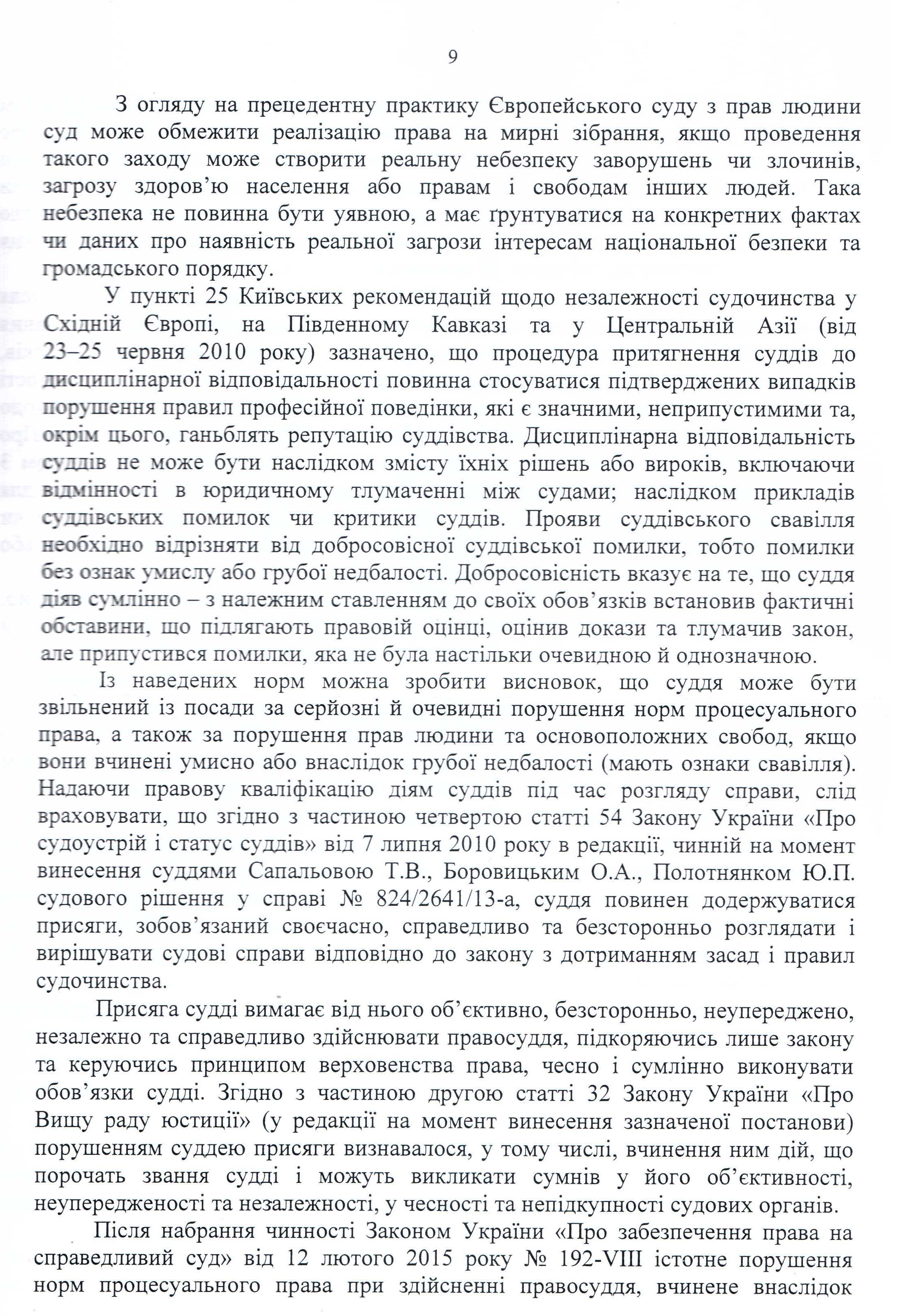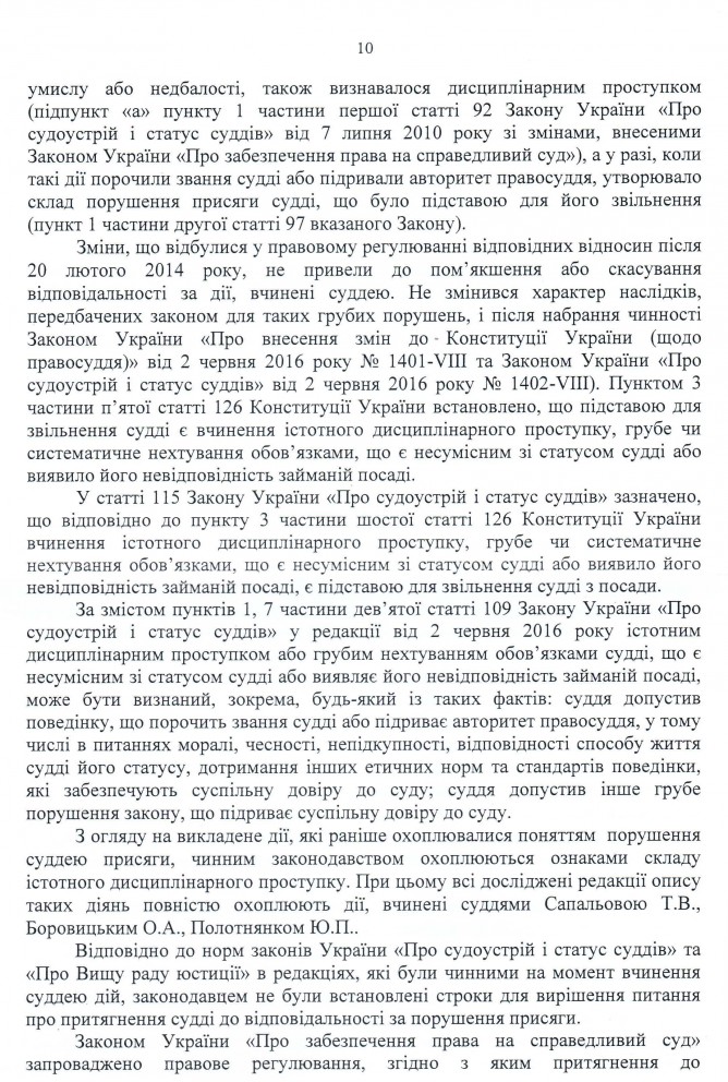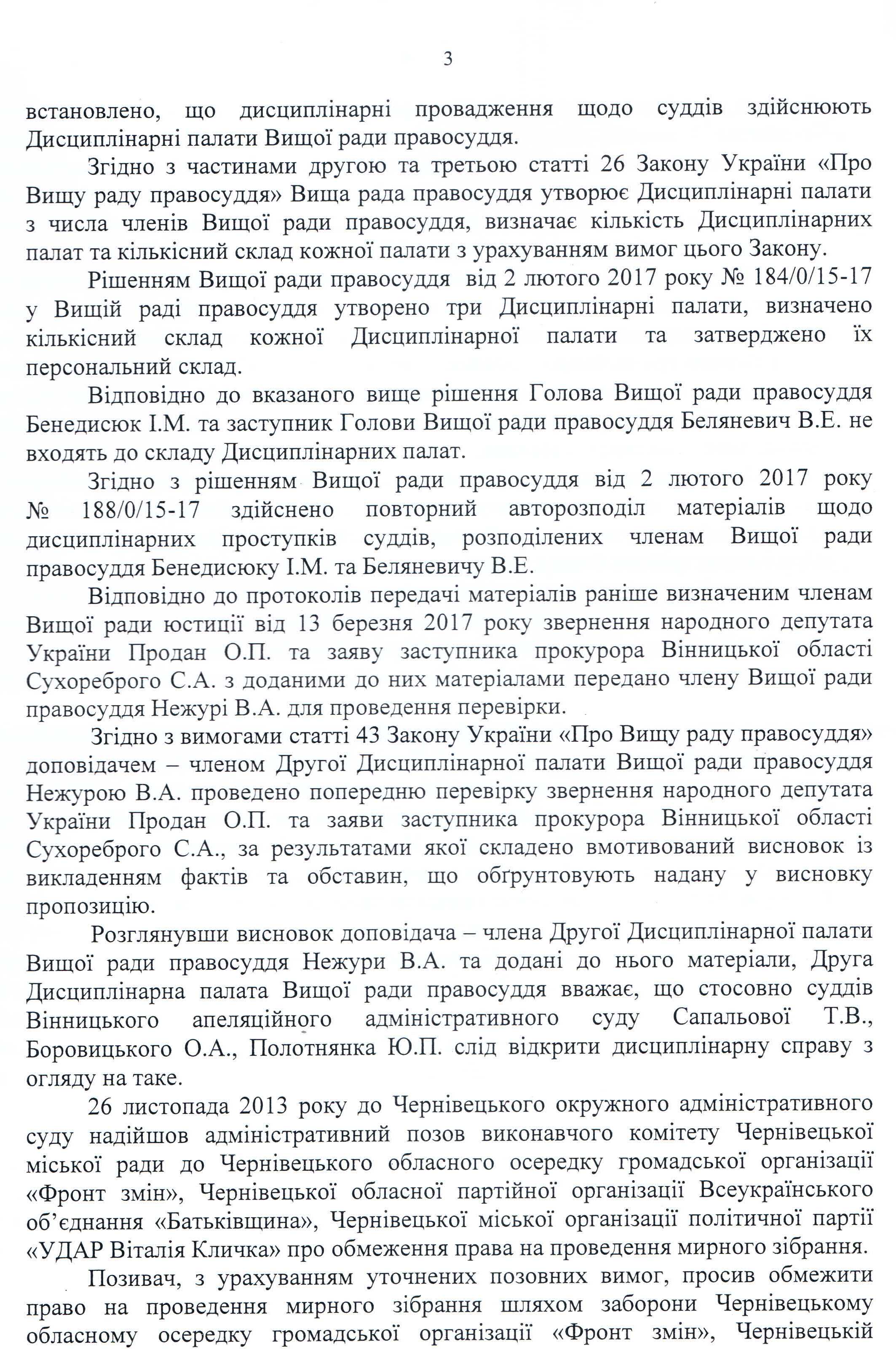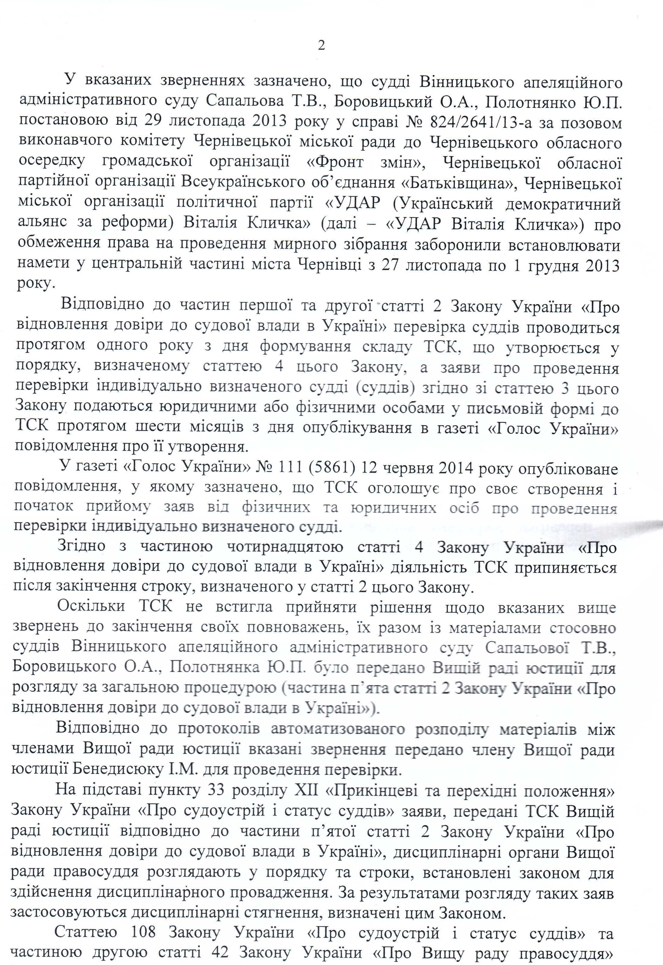 Вхідна документація > Відповідь Вищої ради правосуддя на депутатське звернення щодо притягнення до відповідальності суддів Вінницького апеляційного адміністративного суду Т.В. Сапальової, О.А. Боровицького та Ю.П. Полотнянка