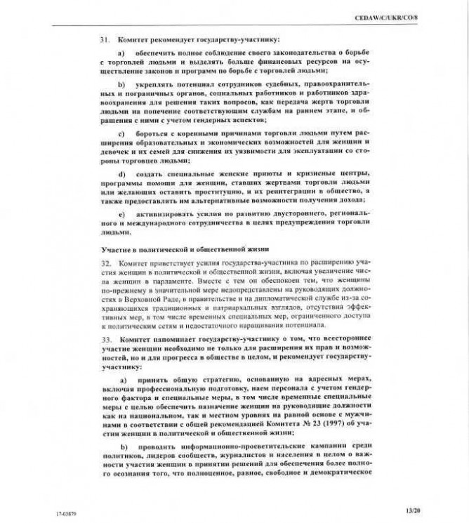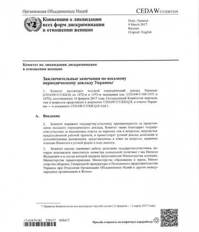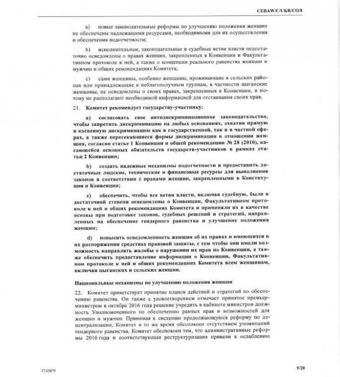 10Сер Коментування вимкнено Заключні зауваження Комітету ООН з ліквідації всіх форм дискримінації жінок
