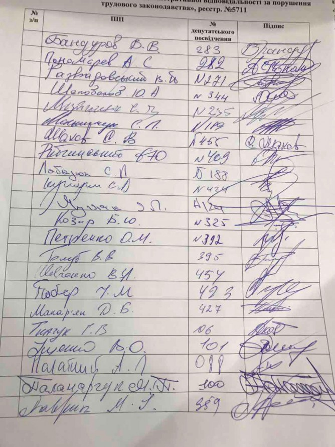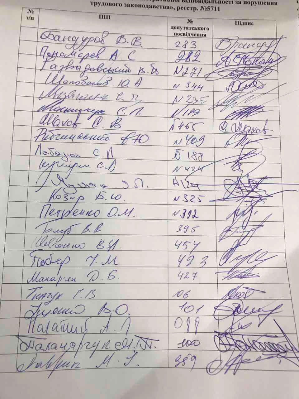 Свої підписи під законопроектом 5711 поставили наступні народні депутати України: