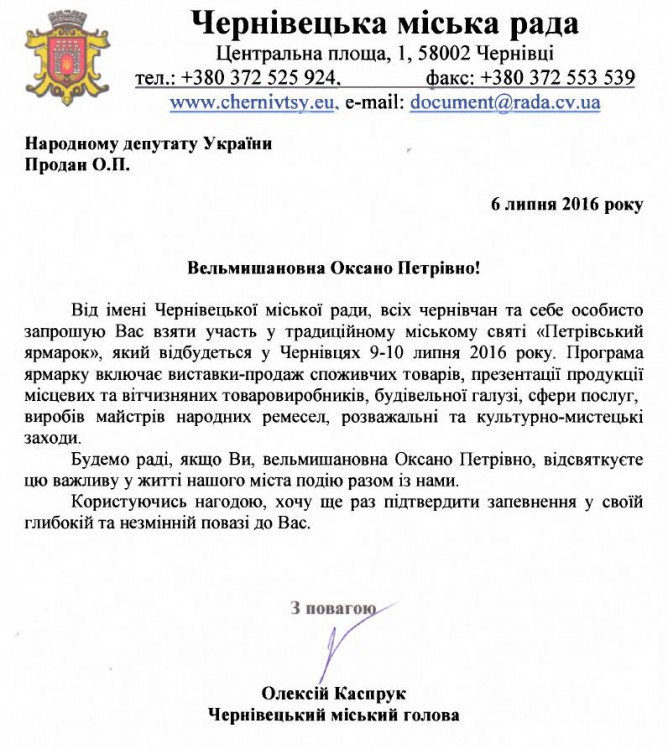 > Запрошення Чернівецької міської ради на Петрівський ярмарок