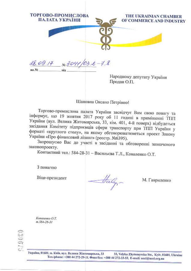 29Вер Коментування вимкнено Запрошення Торгово-промислової палати на обговорення проекту Закону України “Про фінансовий лізинг”, реєстр.6395