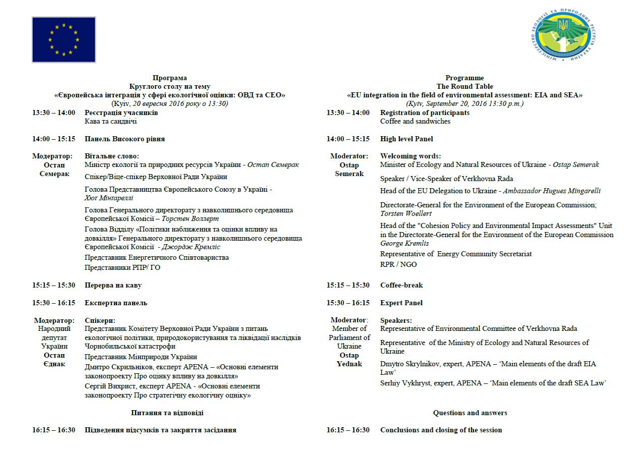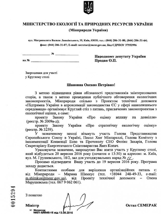 19Вер Коментування вимкнено Запрошення від Міністерства екології та природних ресурсів України на круглий стіл з питань, присвячених законопроектам з екологічної оцінки реєстр. №2009а та №3259