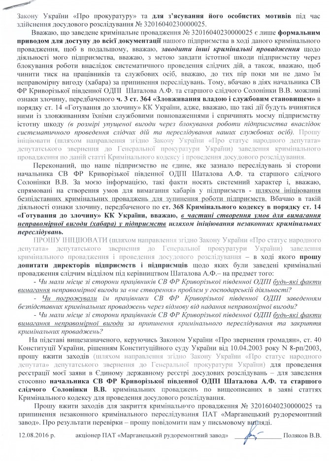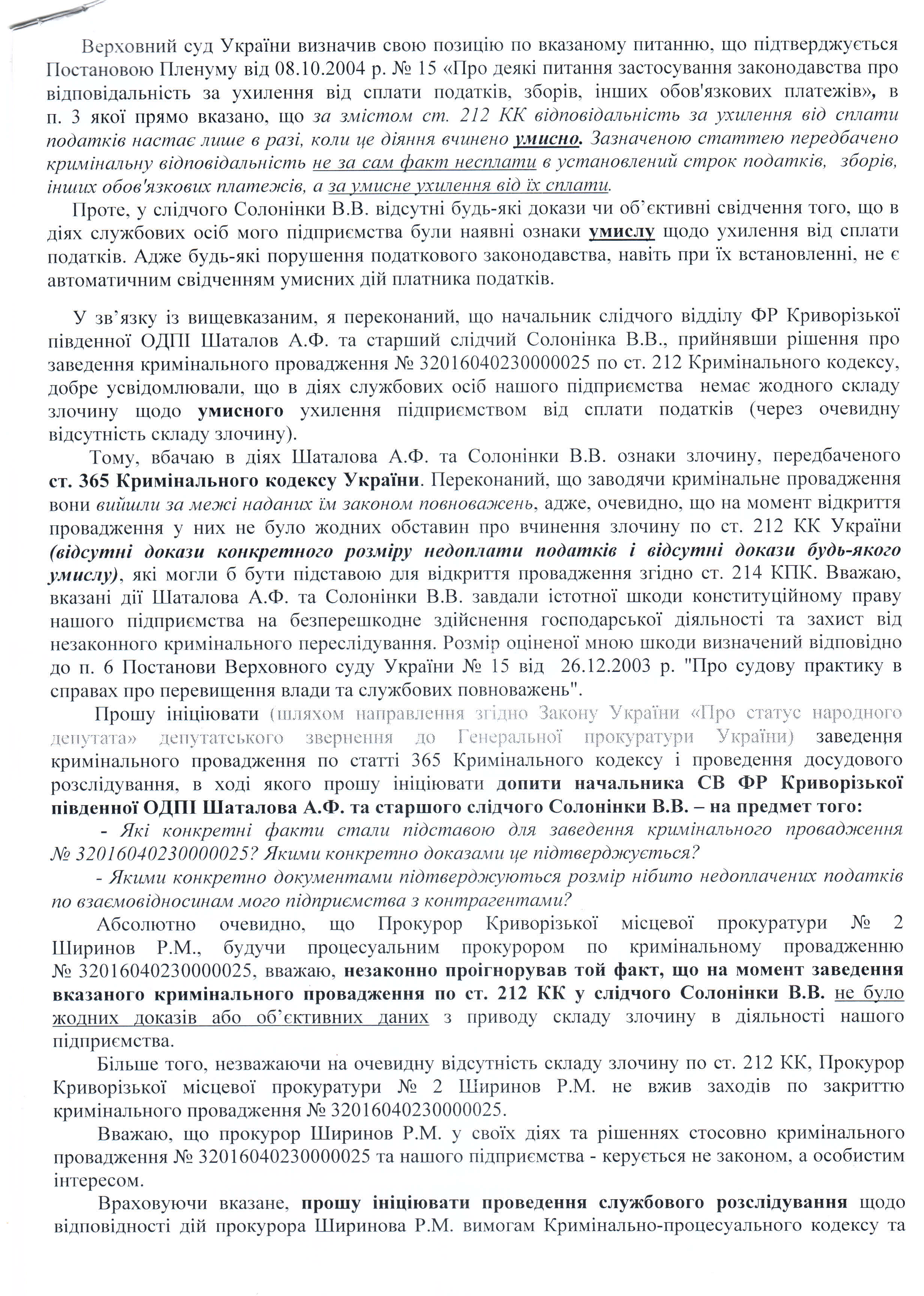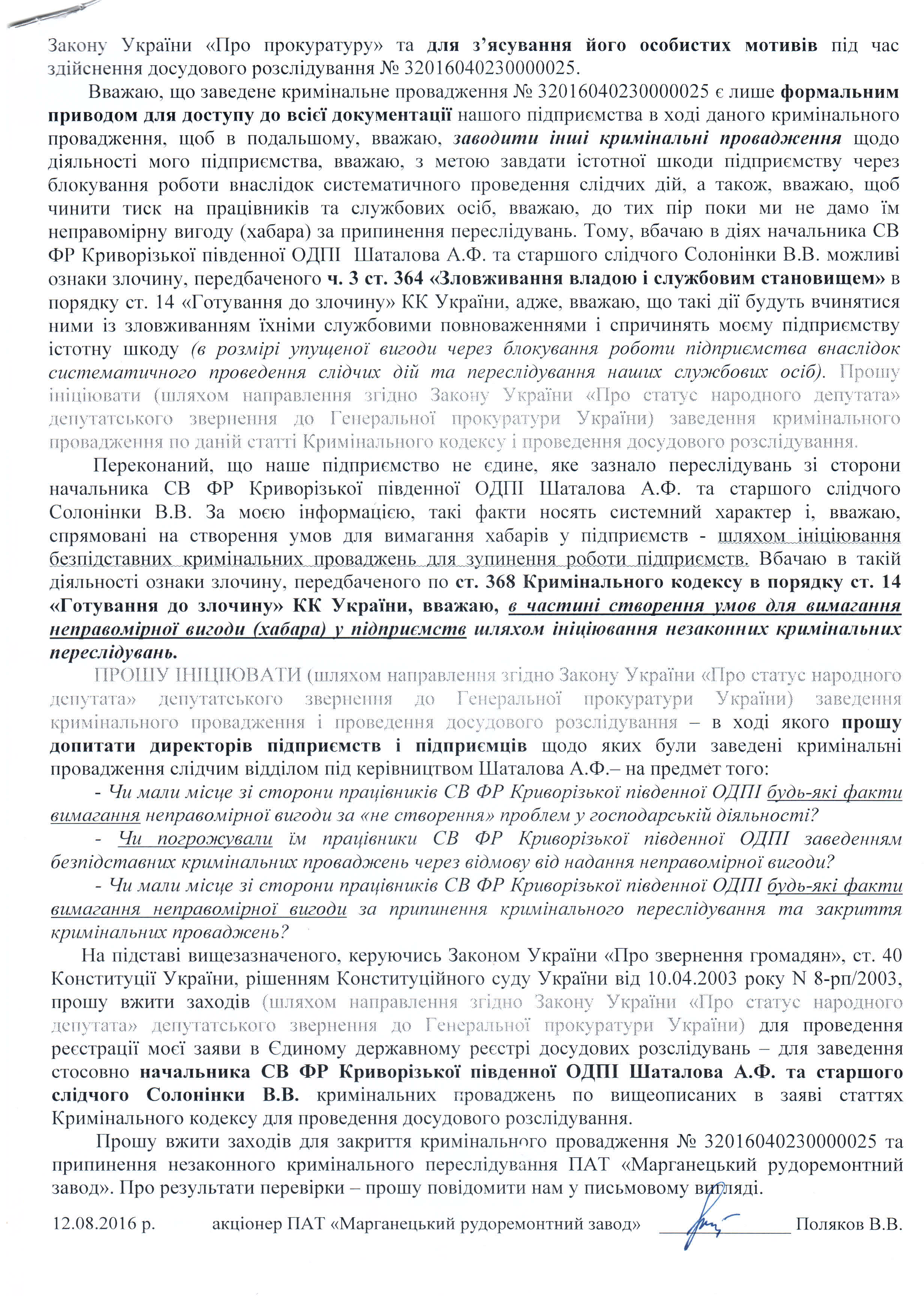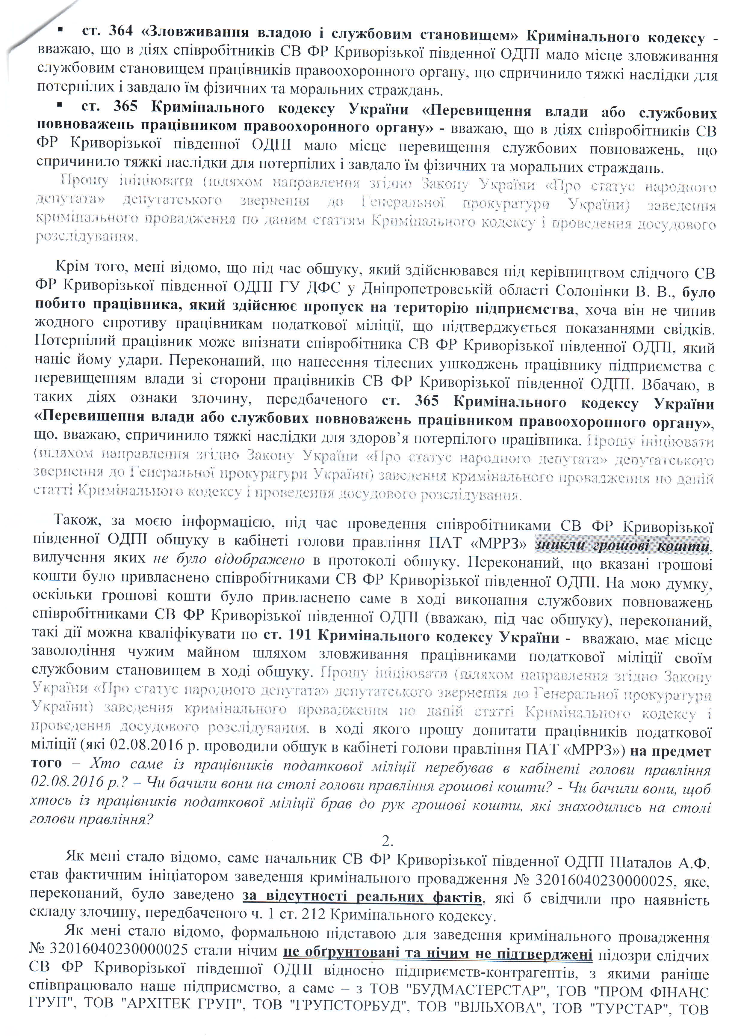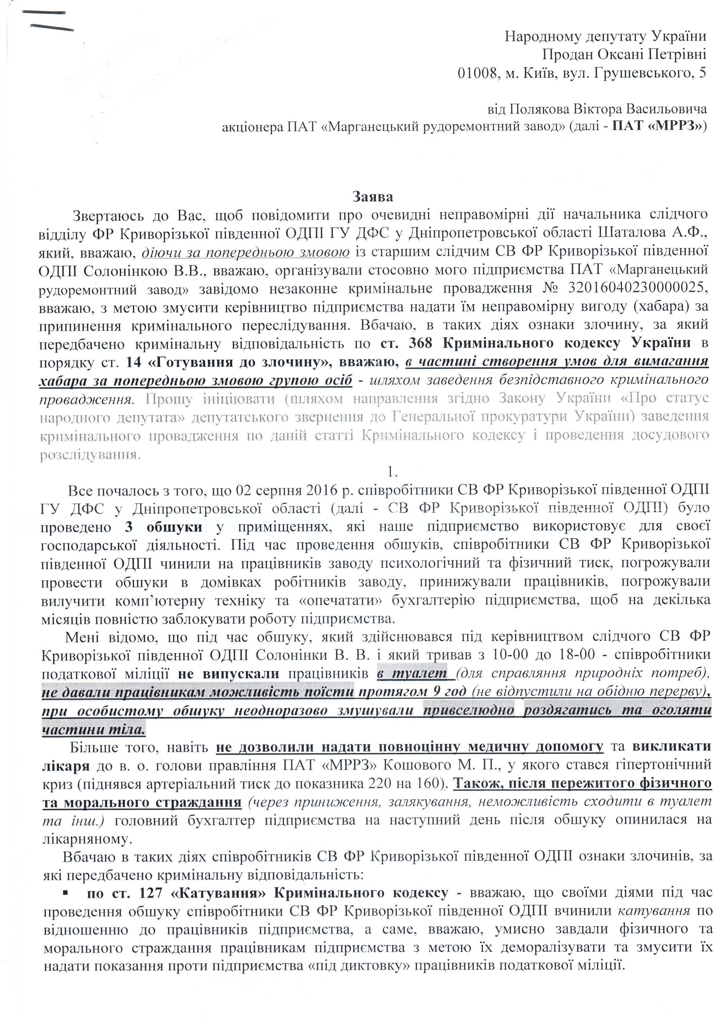02Вер Коментування вимкнено Звернення акціонера ПАТ “Марганецький рудоремонтний заков” Полякова В.В. щодо неправомірних дій співробітників Криворізької південної ОДПІ ГУ ДФС у Дніпропетровській області ДЕПУТАТСЬКЕ ЗВЕРНЕННЯ ЗА ЗВЕРНЕННЯМ ЗАЯВНИКА ВІДПОВІДЬ ПРОКУРАТУРИ ДНІПРОПЕТРОВСЬКОЇ ОБЛАСТІ