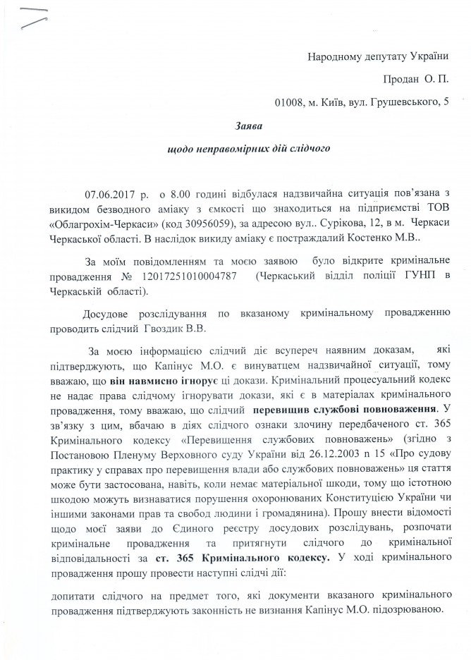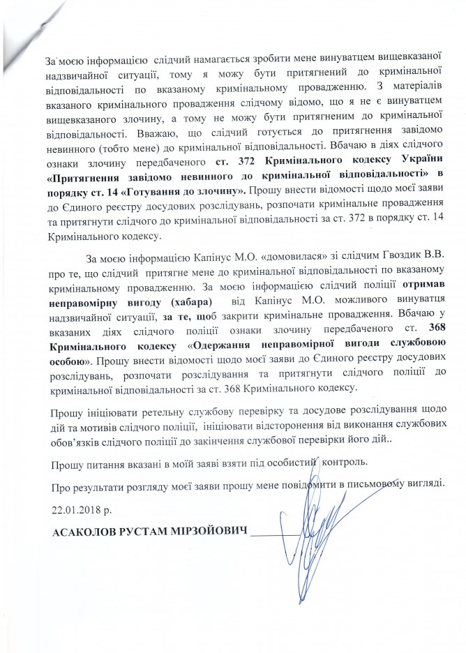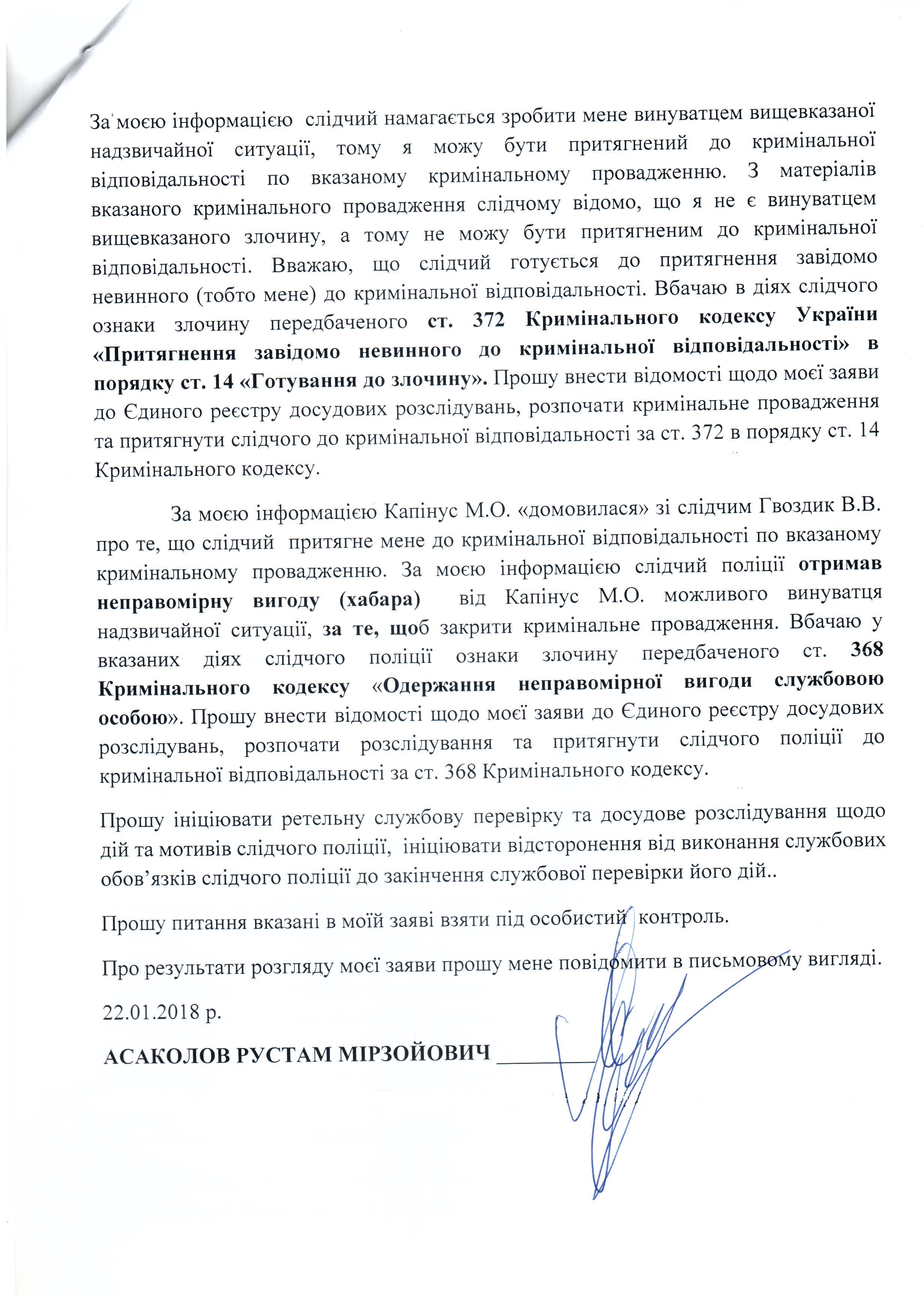 14Лют Коментування вимкнено Звернення Асаколова Р.М. щодо неналежного здійснення досудового розслідування співробітниками Черкаського відділу поліції ГУ НП в Черкаській області