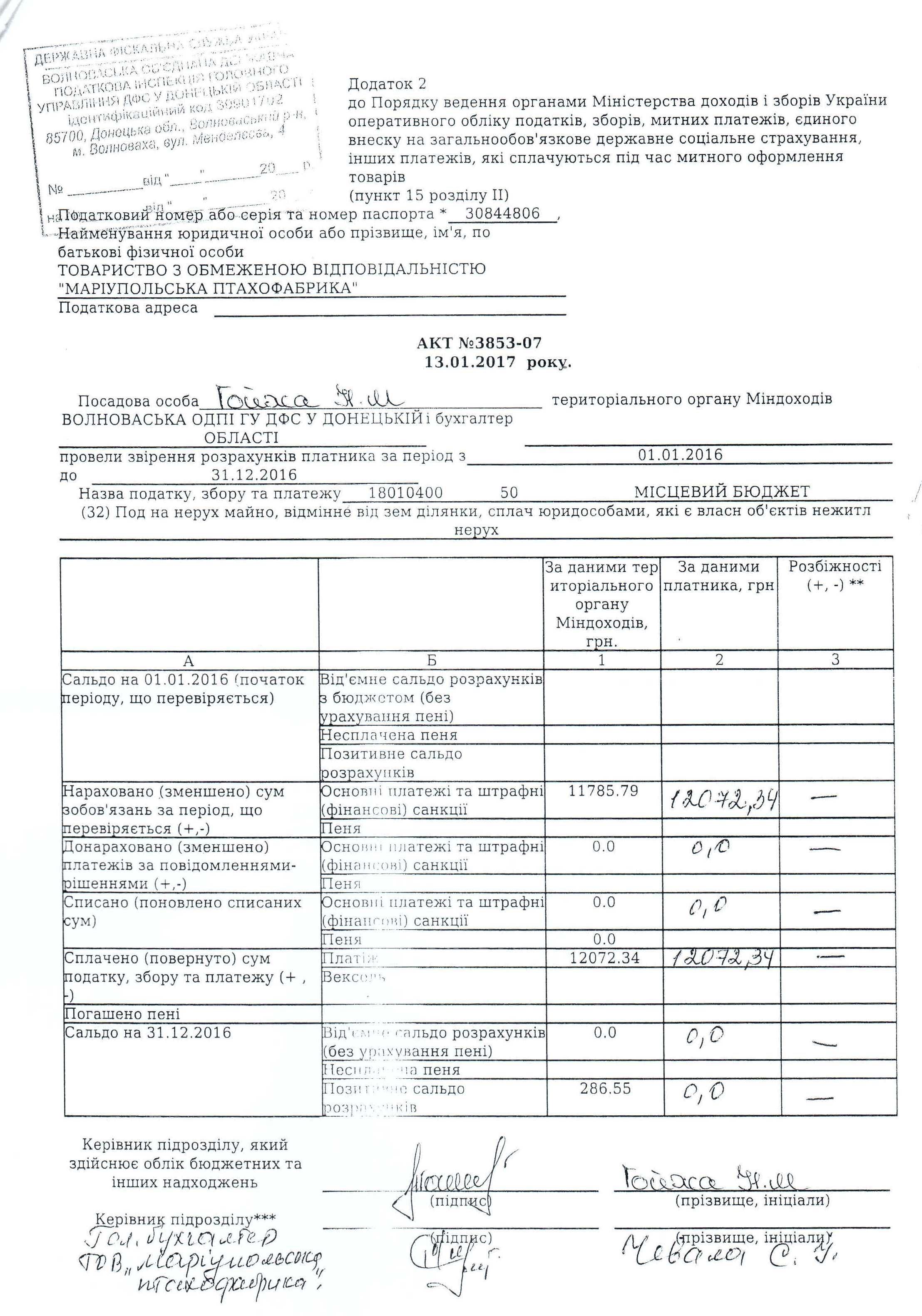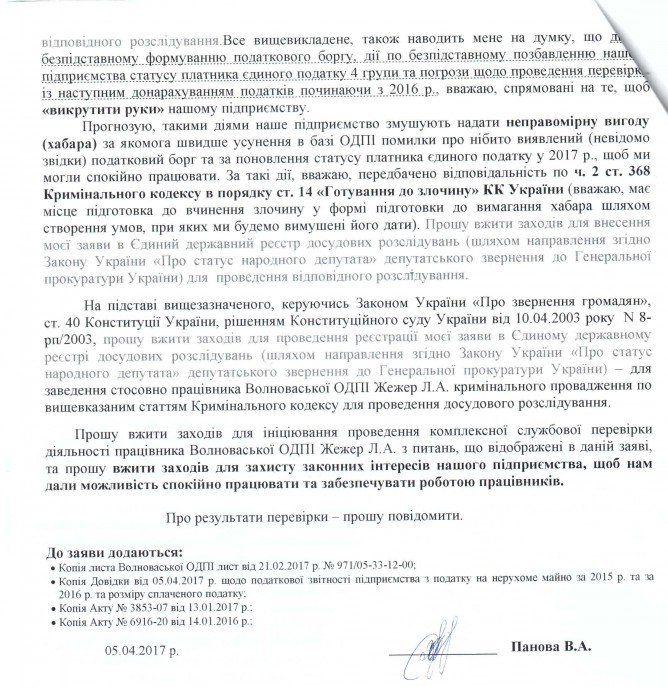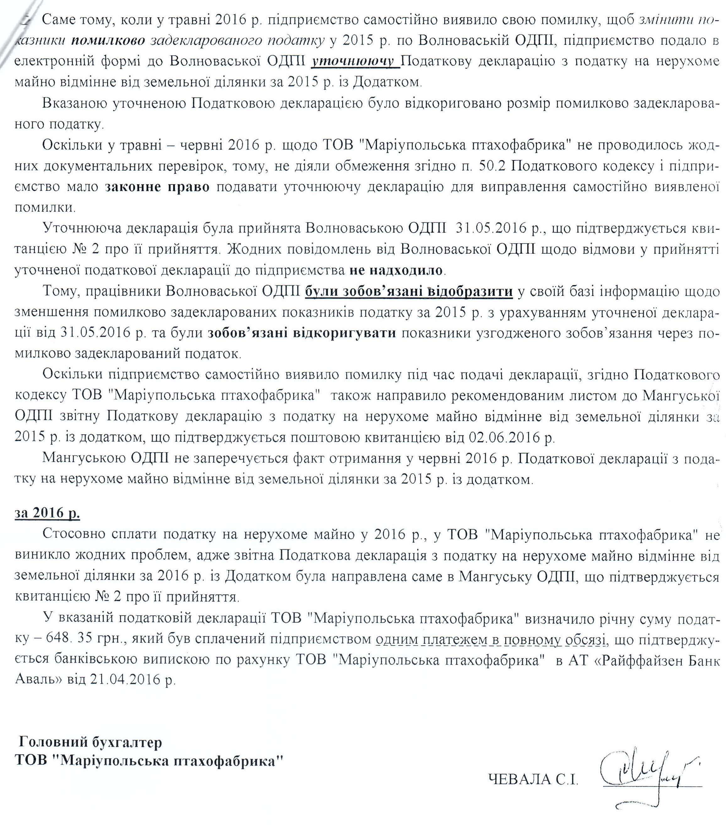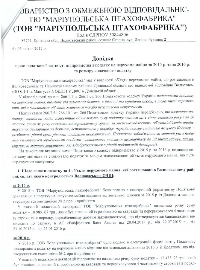 18Тра Коментування вимкнено Звернення бухгалтера ТОВ “Маріупольська птахофабрика” В.А. Панової щодо протиправних дій співробітників Волноваської ОДПІ ГУ ДФС у Донецькій області