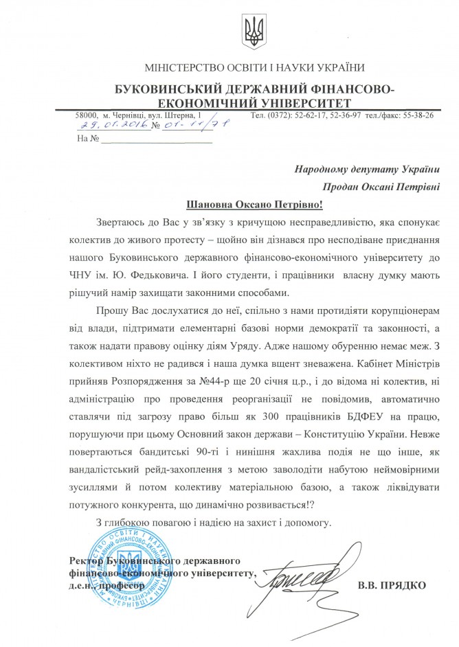 29Січ Коментування вимкнено Звернення Буковинського державного фінансово-економічного університету щодо реорганізації ВНЗ