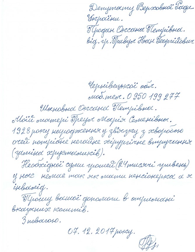 04Січ Коментування вимкнено Звернення Греула І.Г. щодо надання фіансової допомоги на лікування його матері