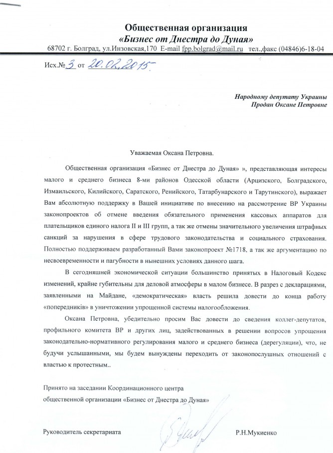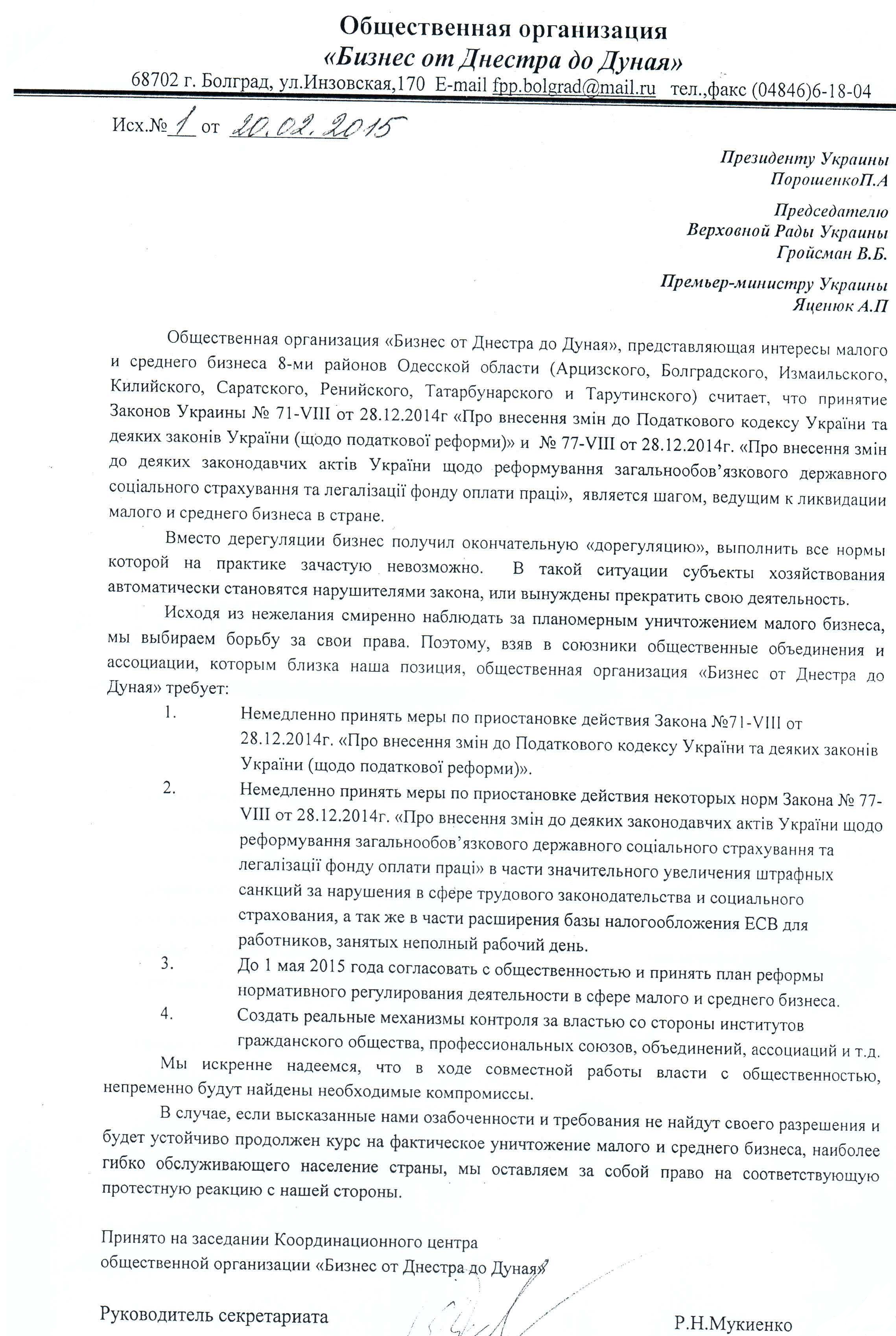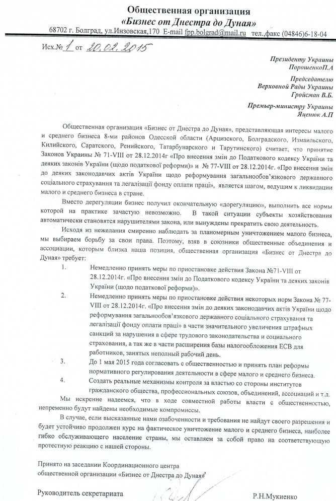 12Бер Коментування вимкнено Звернення Громадської організації “Бізнес від Дністра до Дунаю” щодо підтримки законодавчих ініціатив, направлених на підтримку МСБ
