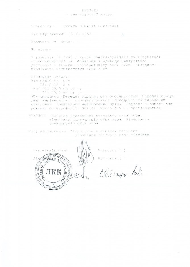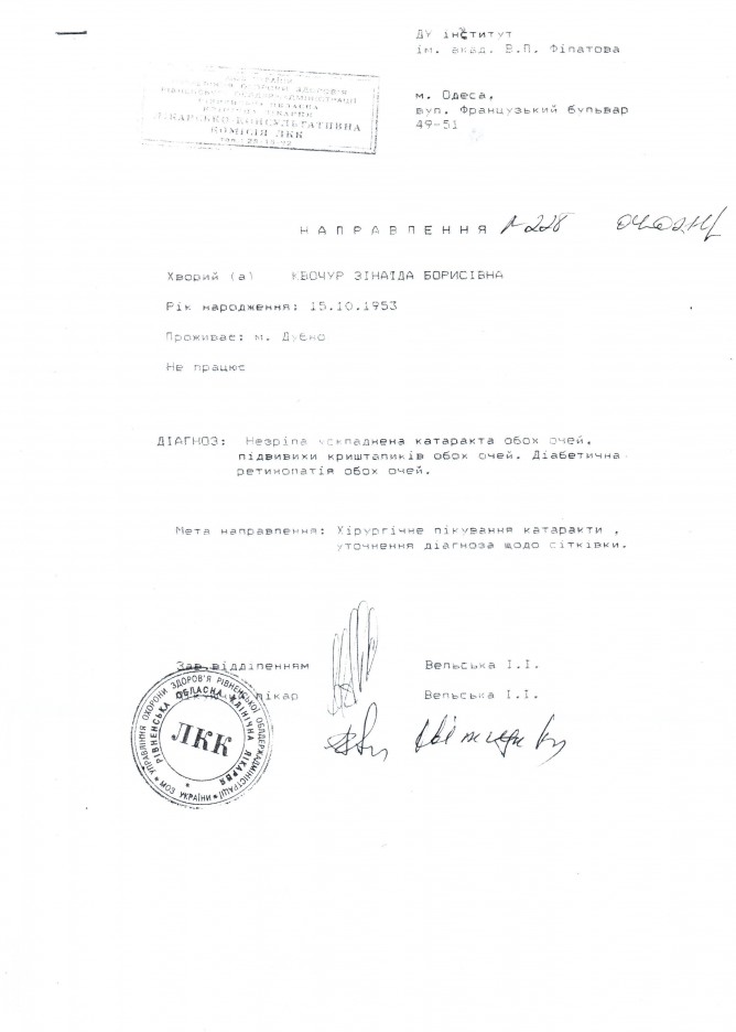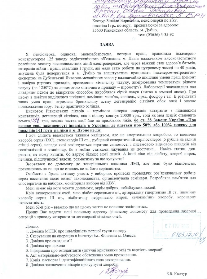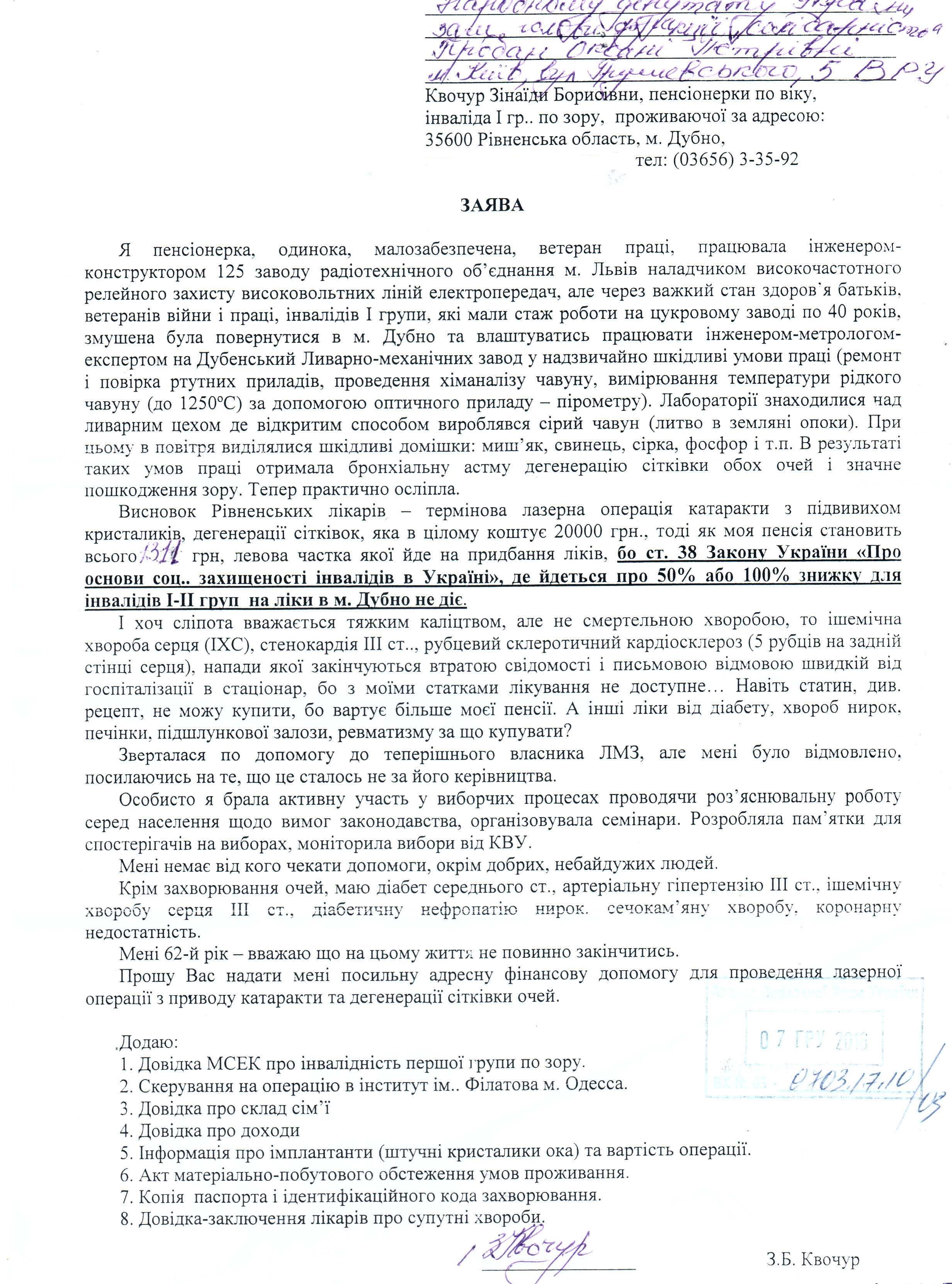 20Гру Коментування вимкнено Звернення Квочур З.Б. щодо надання допомоги для проведення операції по відновленню зору