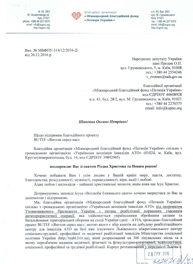 25Січ Коментування вимкнено Звернення Міжнародного благодійного фонду “Петиція України” щодо підтримки благодійного проекту “Янголи серед нас”